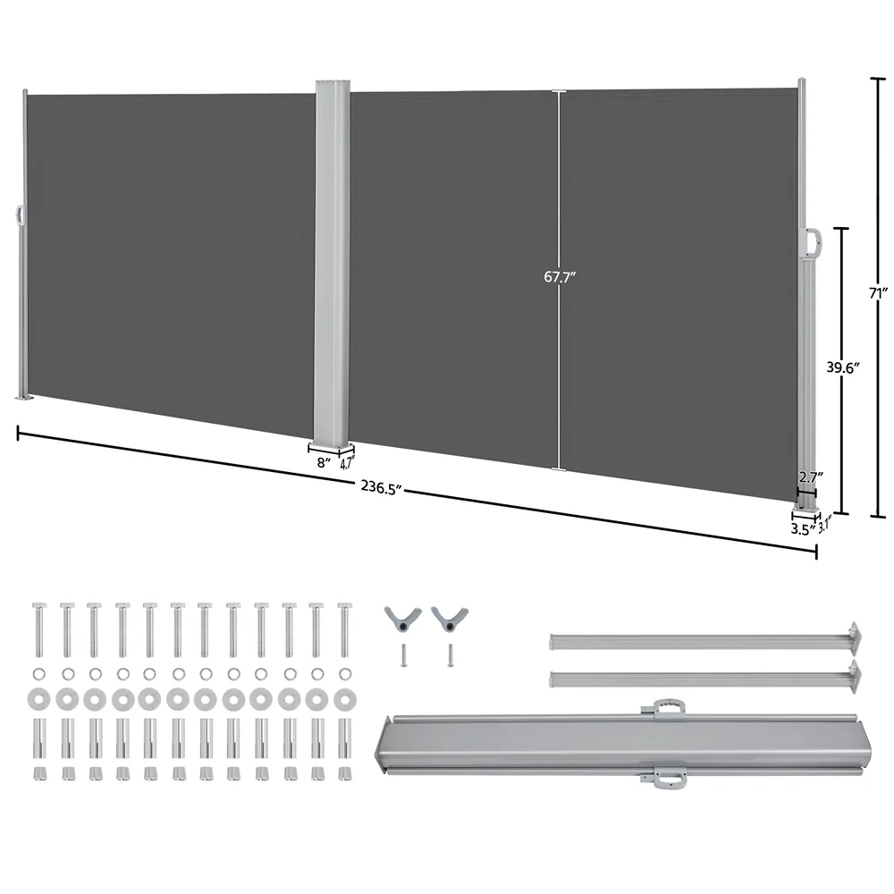 Yaheetech 19.7'L x 6' H Side Awning Double Retractable Screen for Privacy Patio Garden,Dark Gray