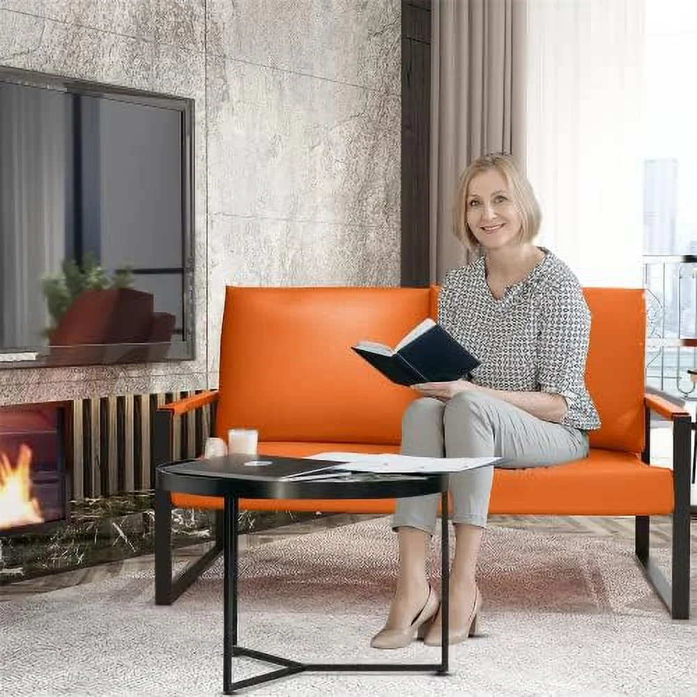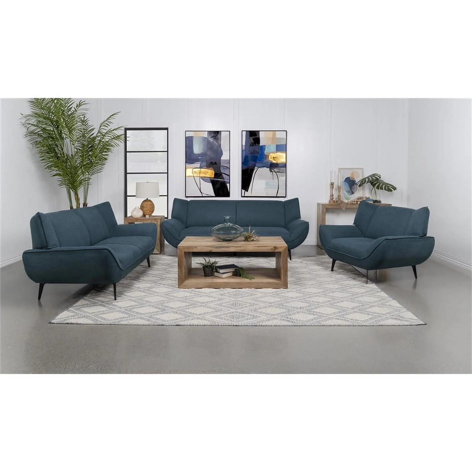 Pemberly Row Mid-Century Fabric Upholstered Wing Back Loveseat in Teal