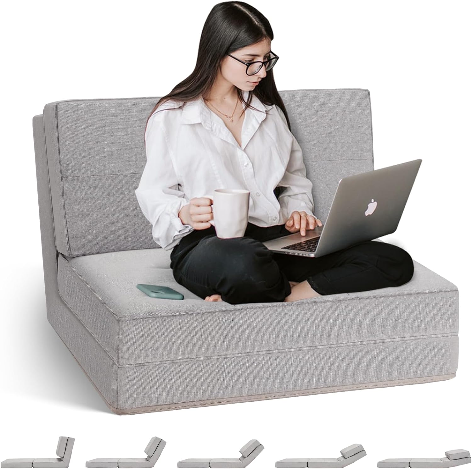 Lazy Sofa Adjustable Folding Futon Sofa Video Gaming Sofa with Two Pillows (Beige)
