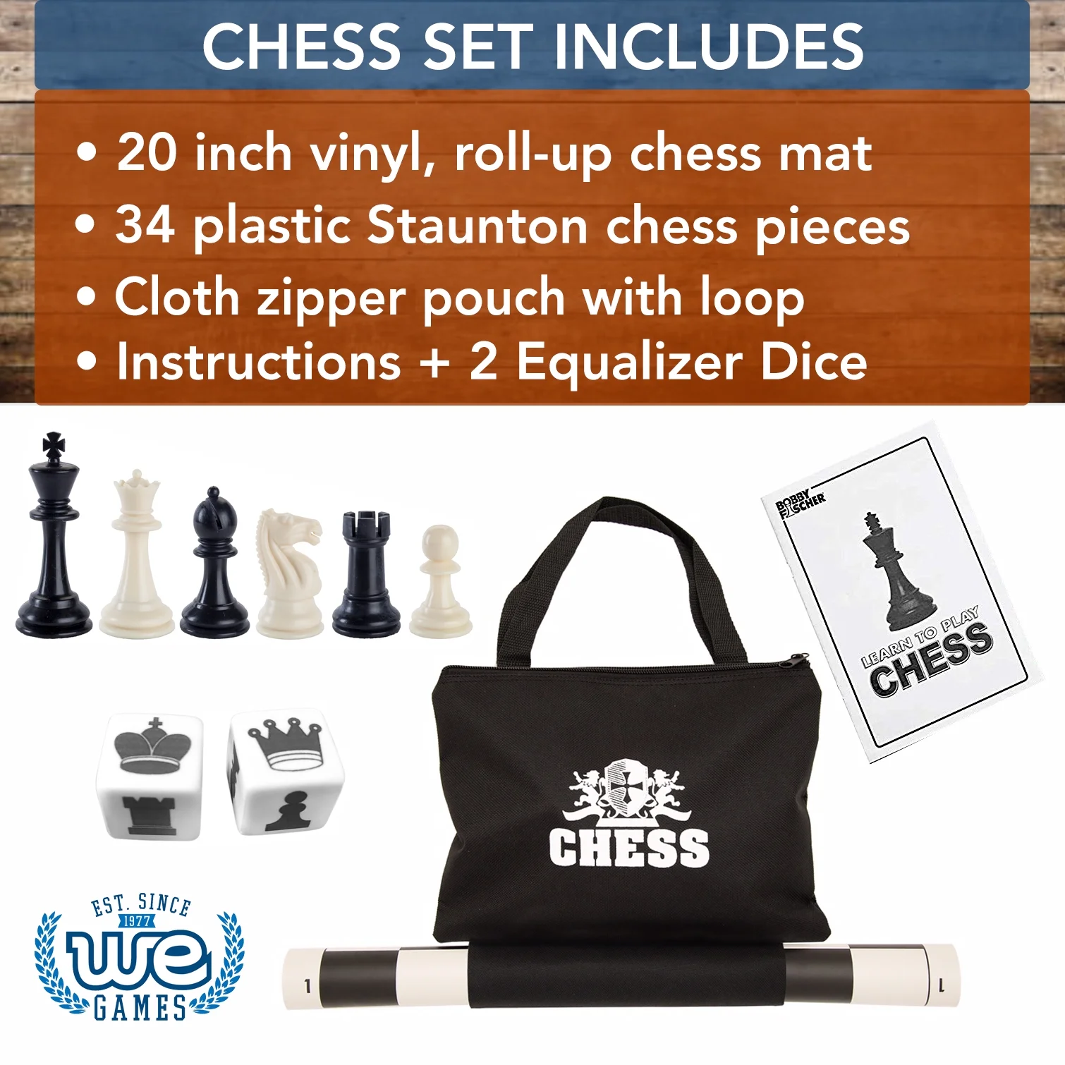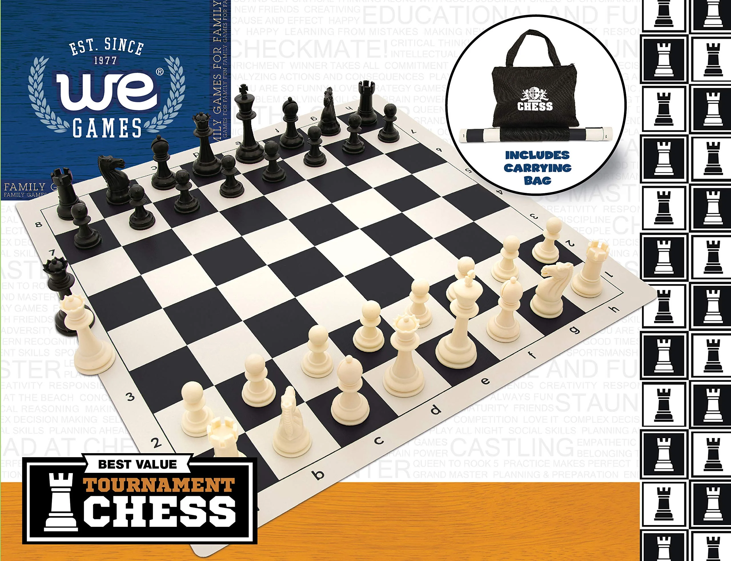 WE Games Best Value Tournament Chess Set - 20 in. Vinyl Board, Staunton pcs