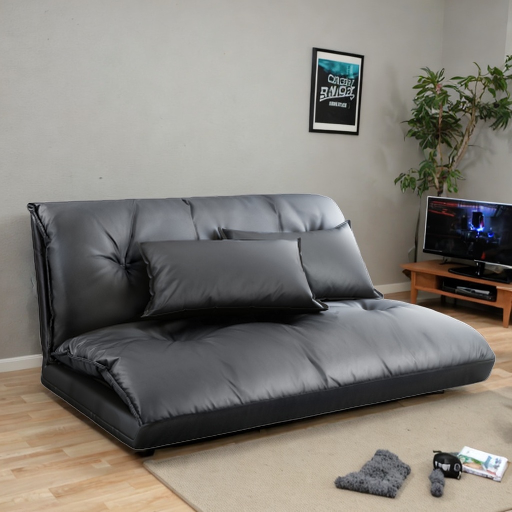 Lazy Sofa Adjustable Folding Futon Sofa Video Gaming Sofa with Two Pillows (Black)