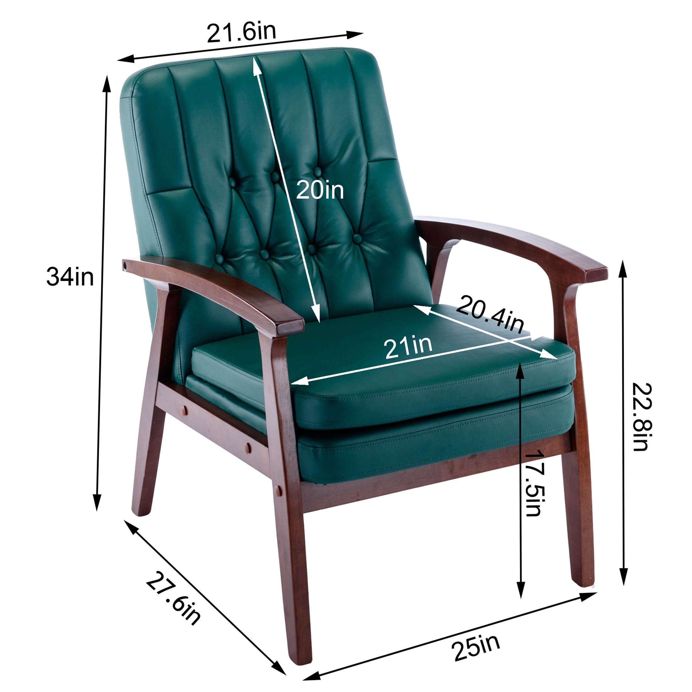YJTONWIN Mid Century Single Armchair Sofa with Fabric Upholstered Green
