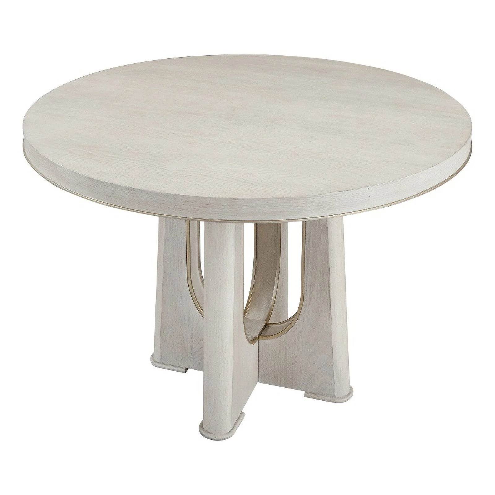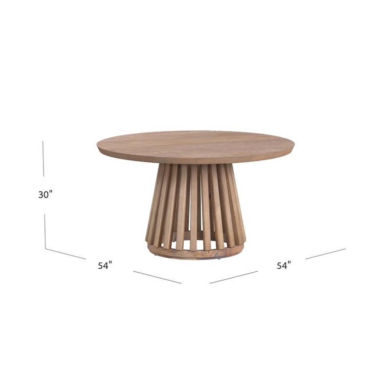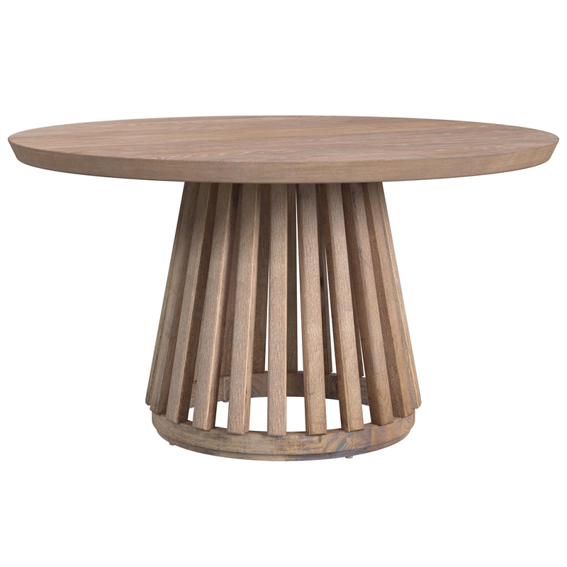 Bassett Mirror Laguna Round Wood Dining Table with Tapered Slat Base in Tan