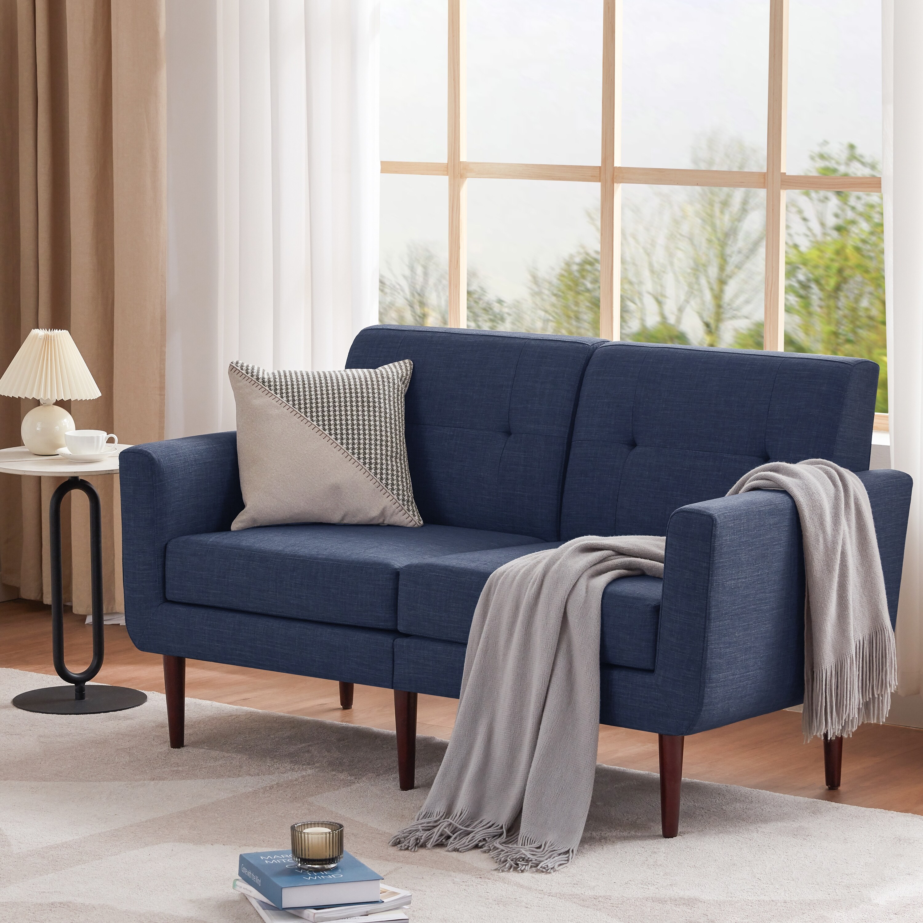 HUIMO Loveseat, Modern Small Couch with Button Tufted Upholstered Fabric Sofa Blue/ Ivory/ Grey Ivory