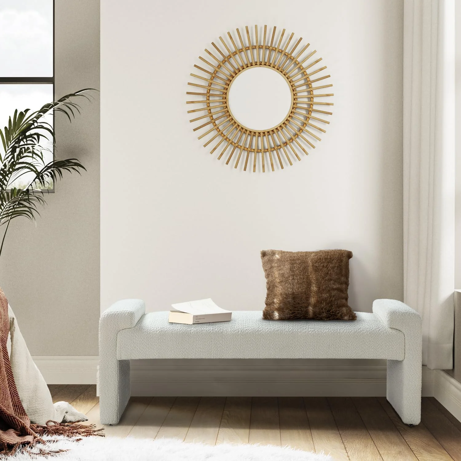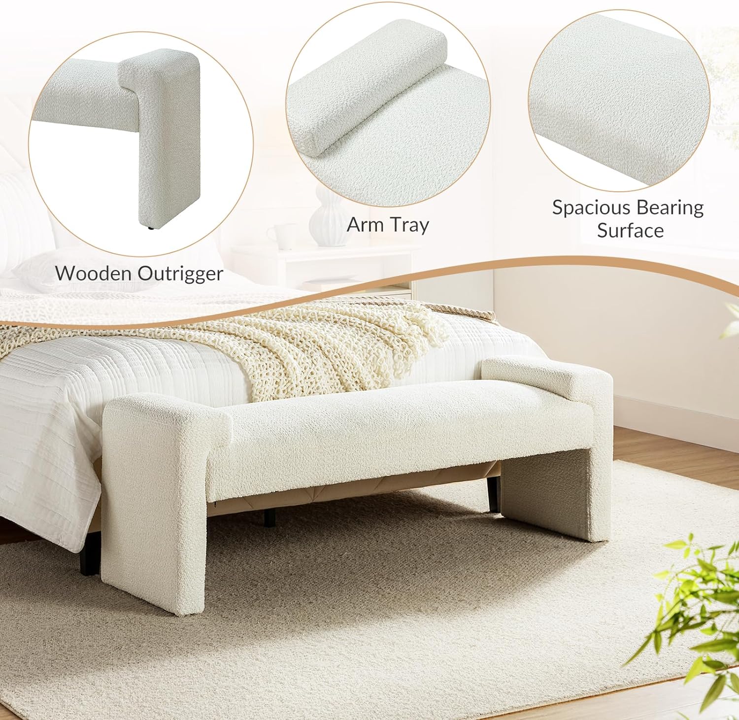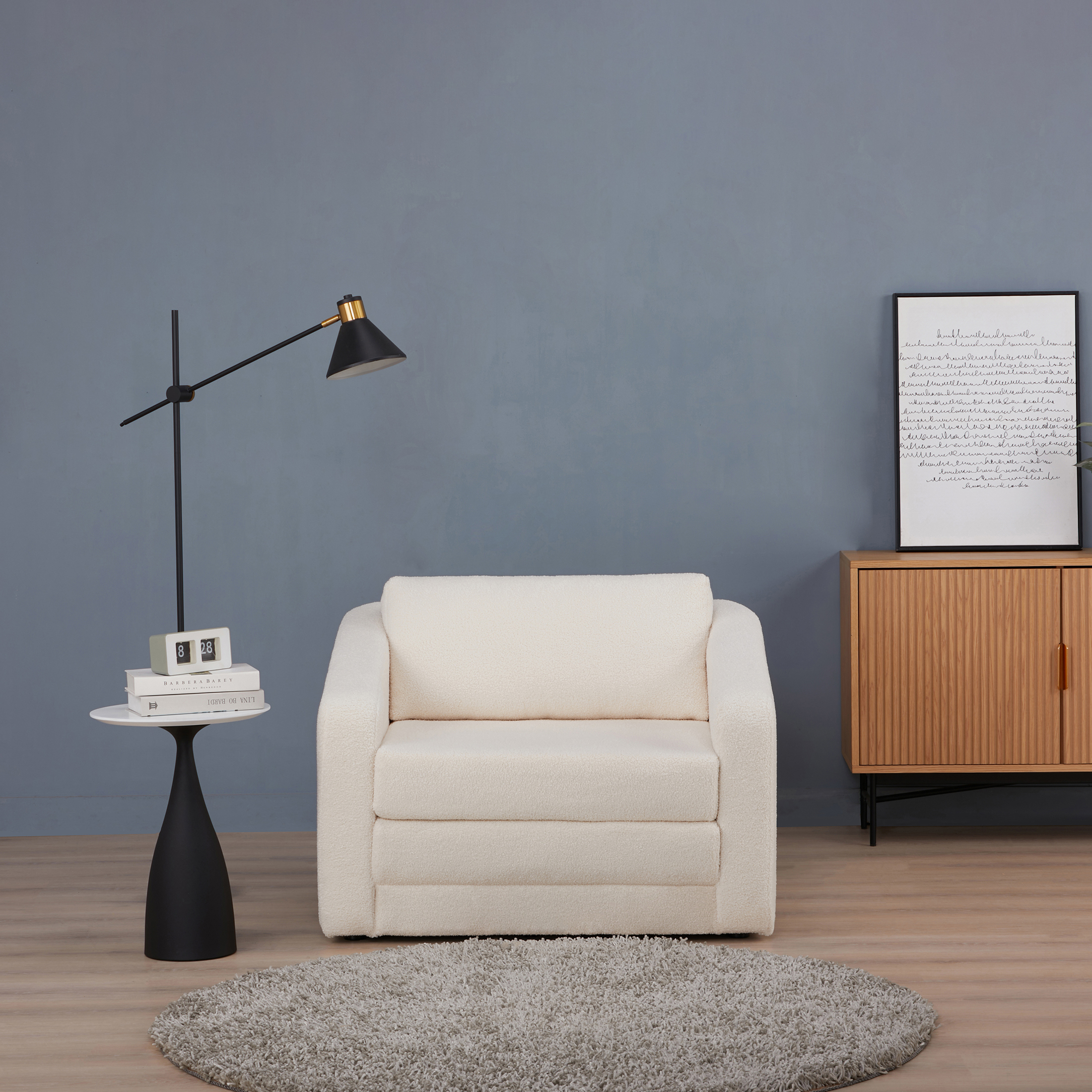 A&D Home Pala Polyester Sherpa Convertible Chair, Compact Sleeper, Ivory