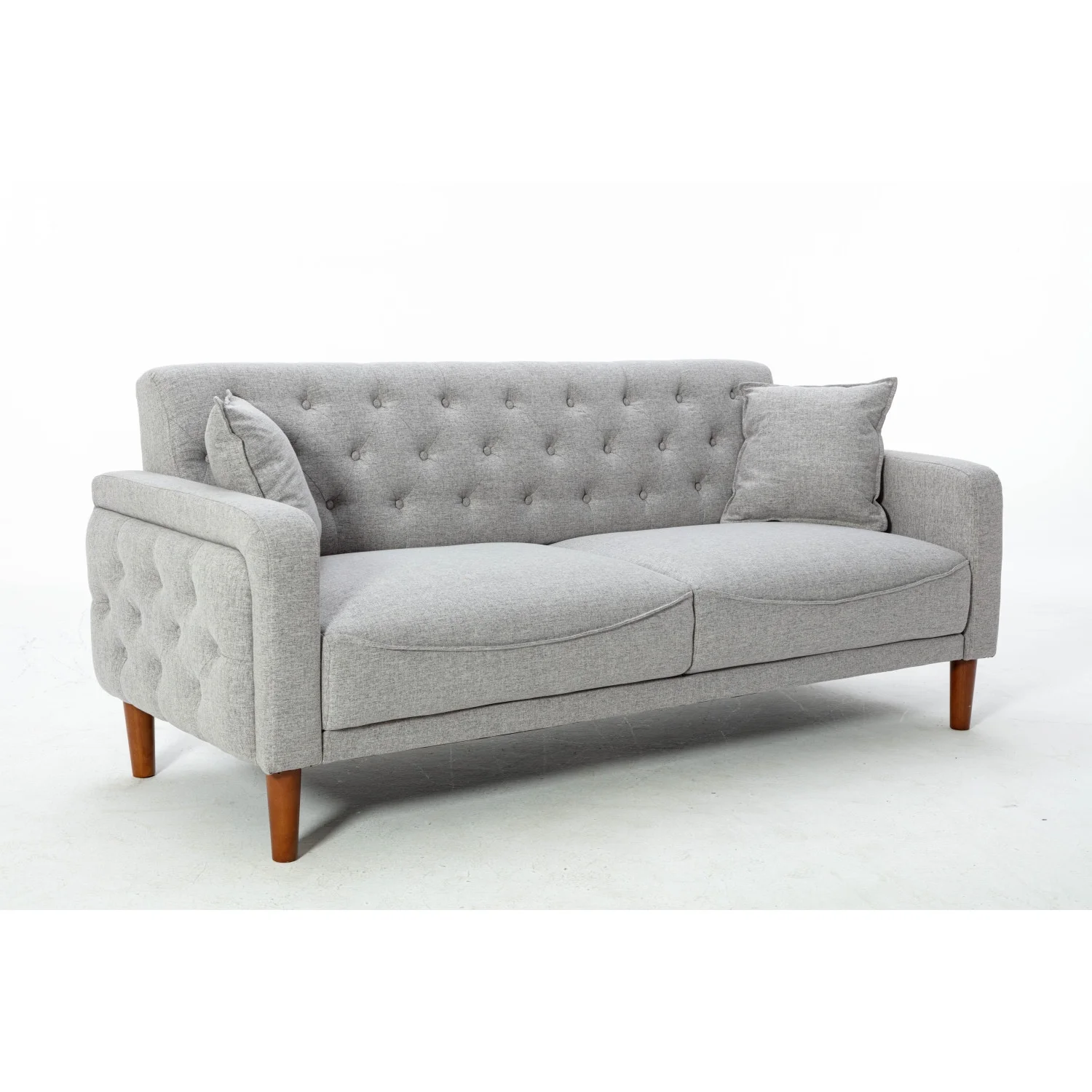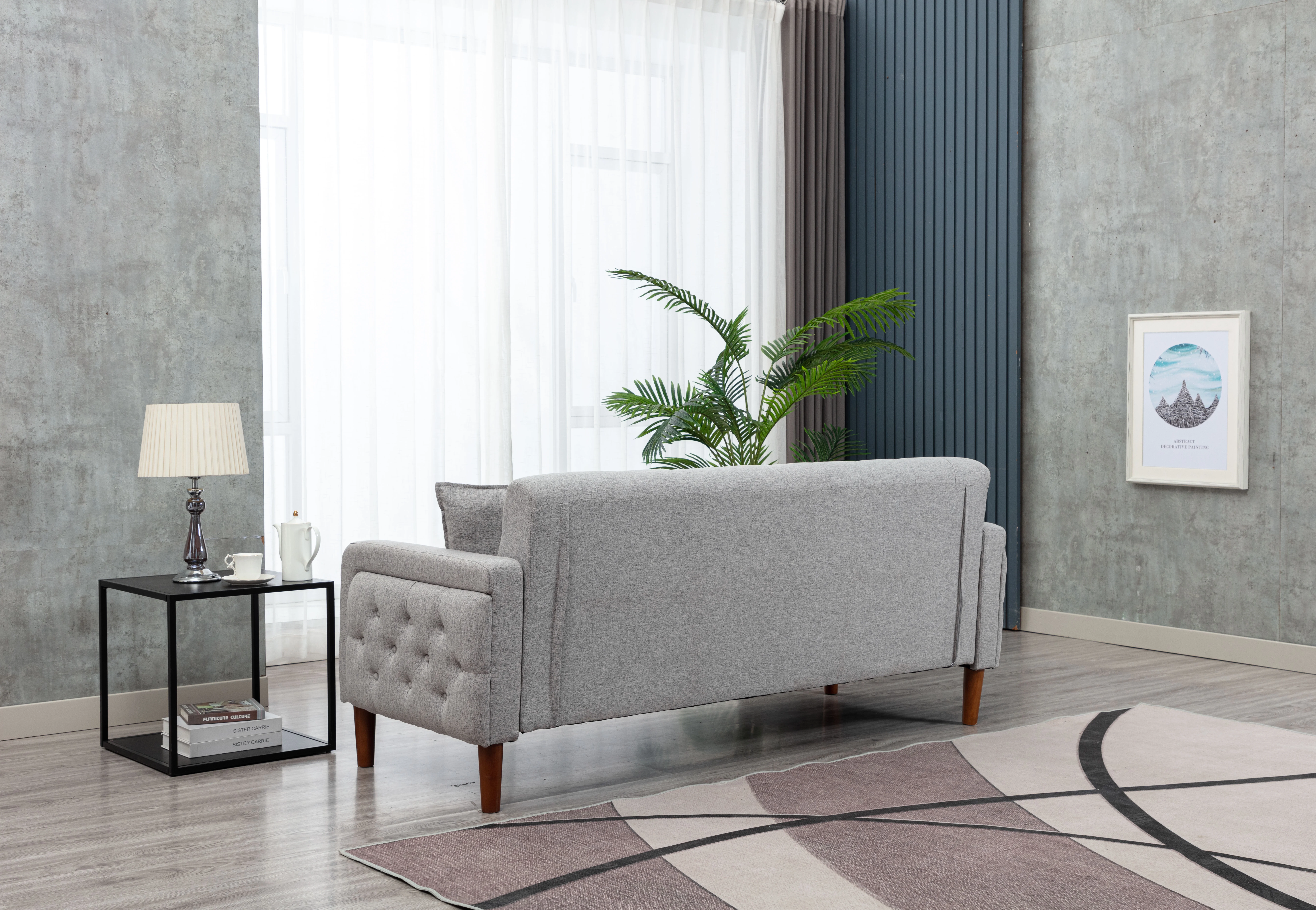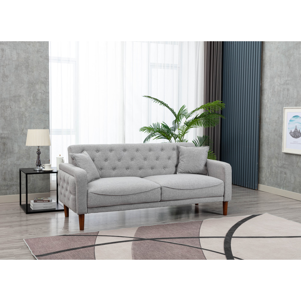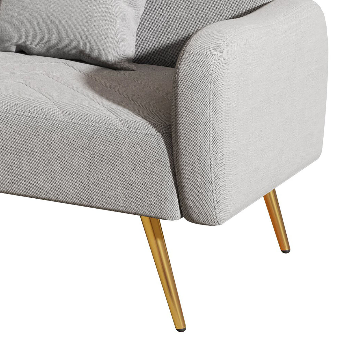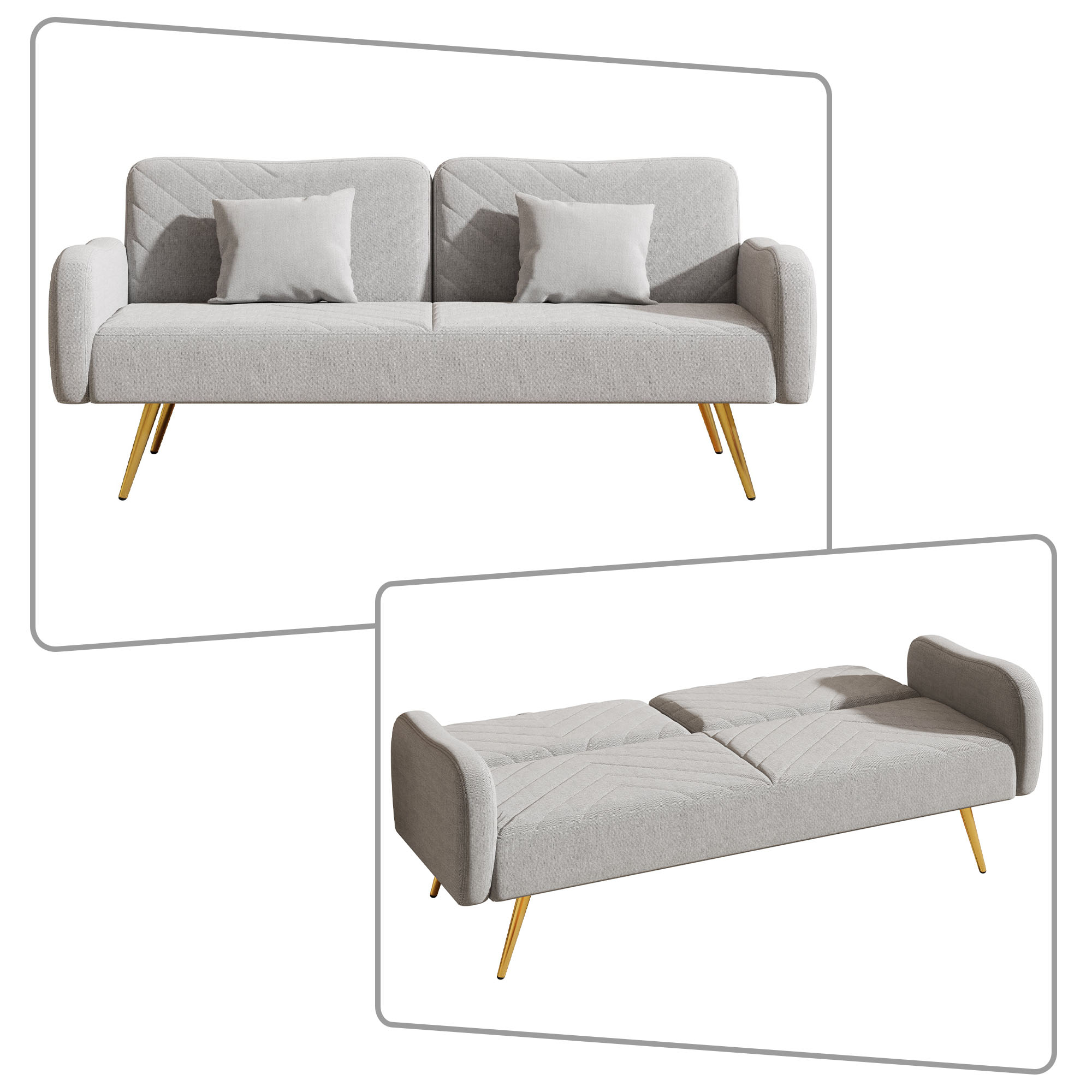 Minimalist Stylish Linen Fabric Upholstered Futon Sofa Bed with Two Pillows, Grey