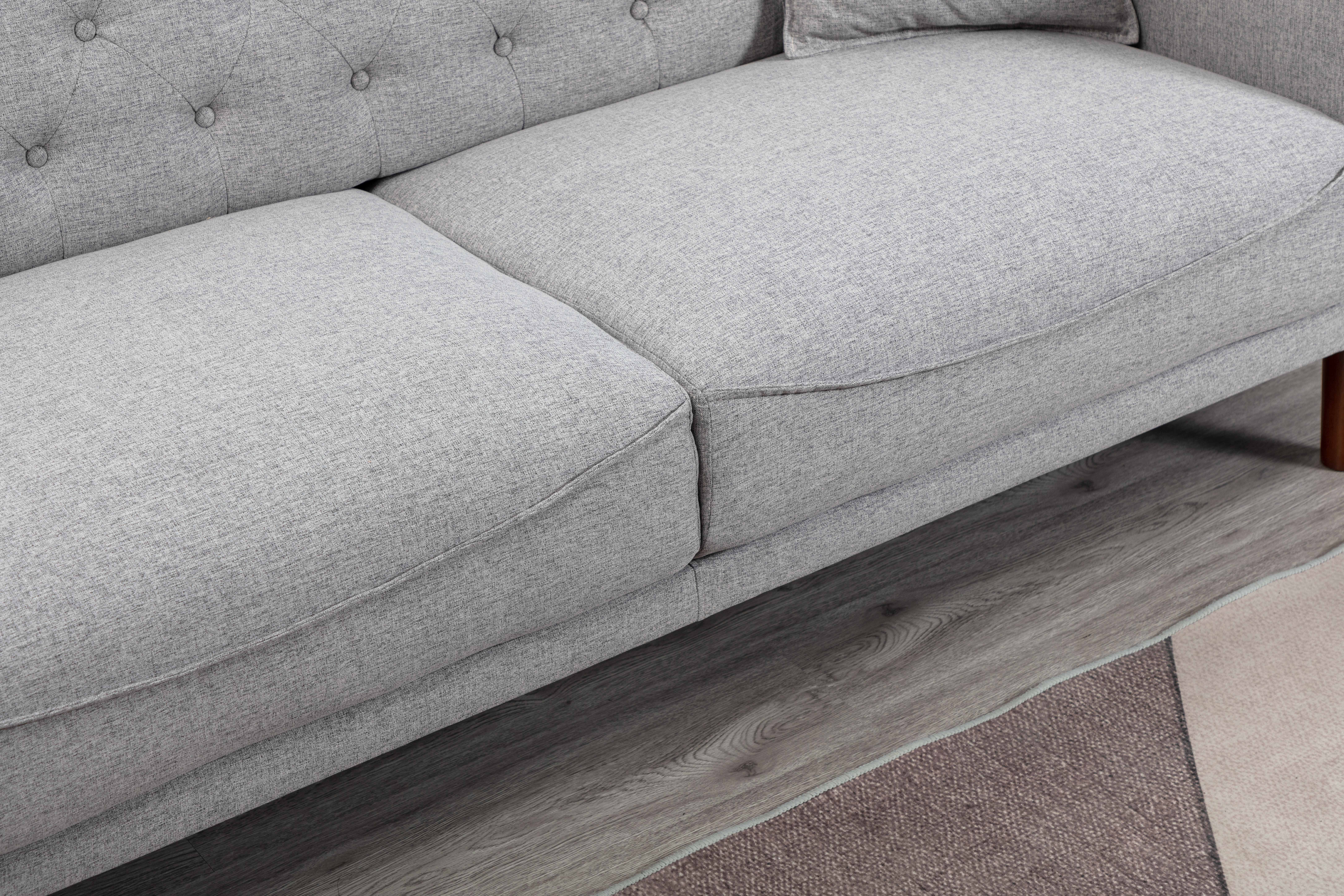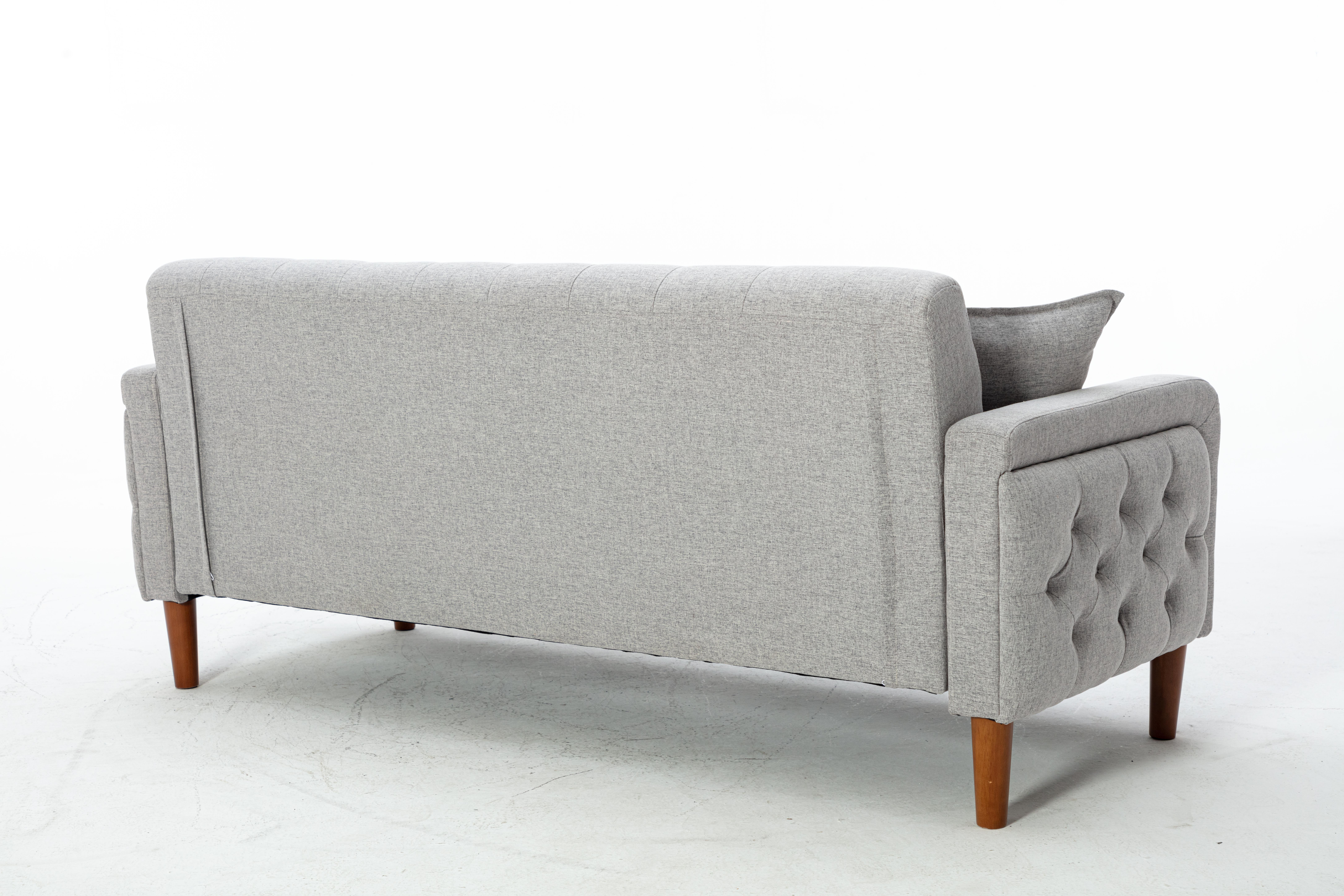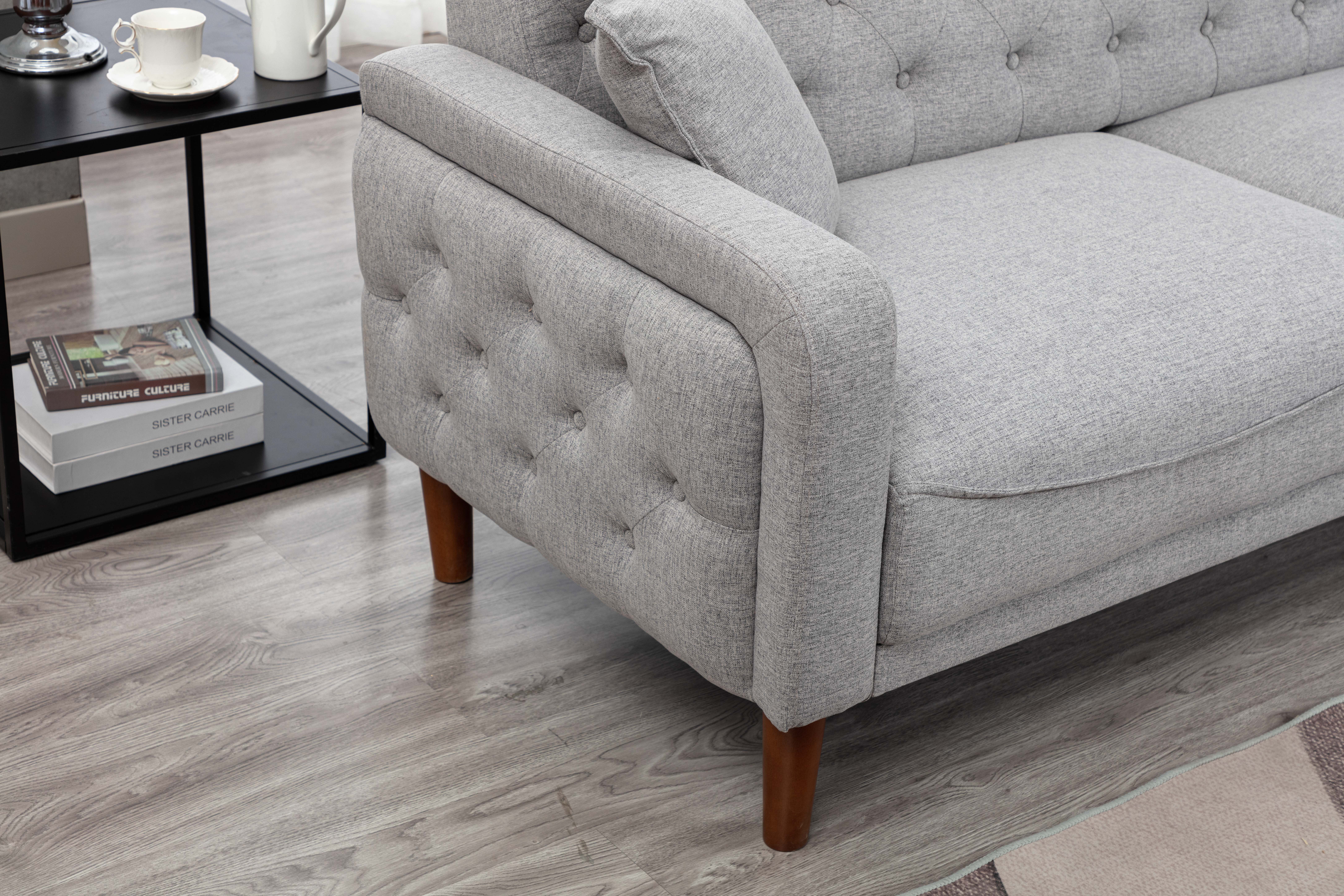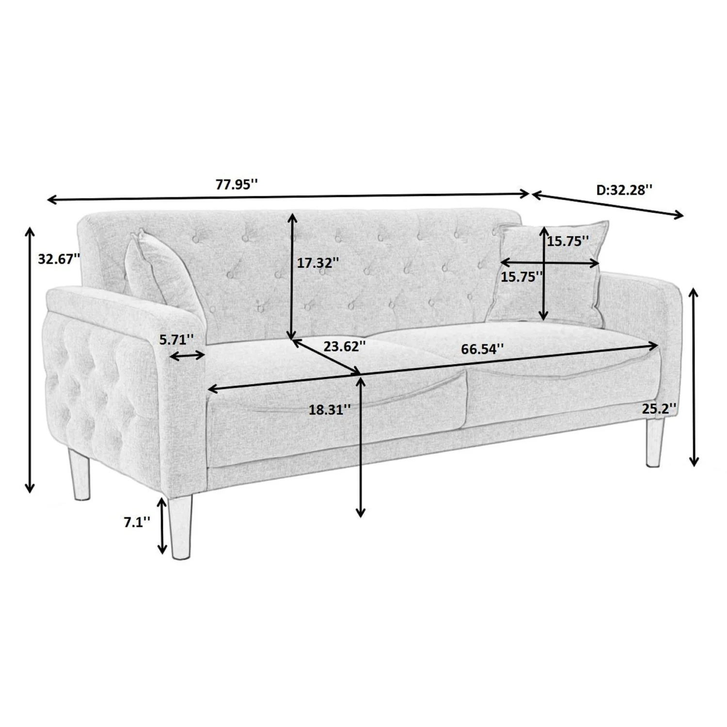 Minimalist Stylish Linen Fabric Upholstered Futon Sofa Bed with Two Pillows, Grey