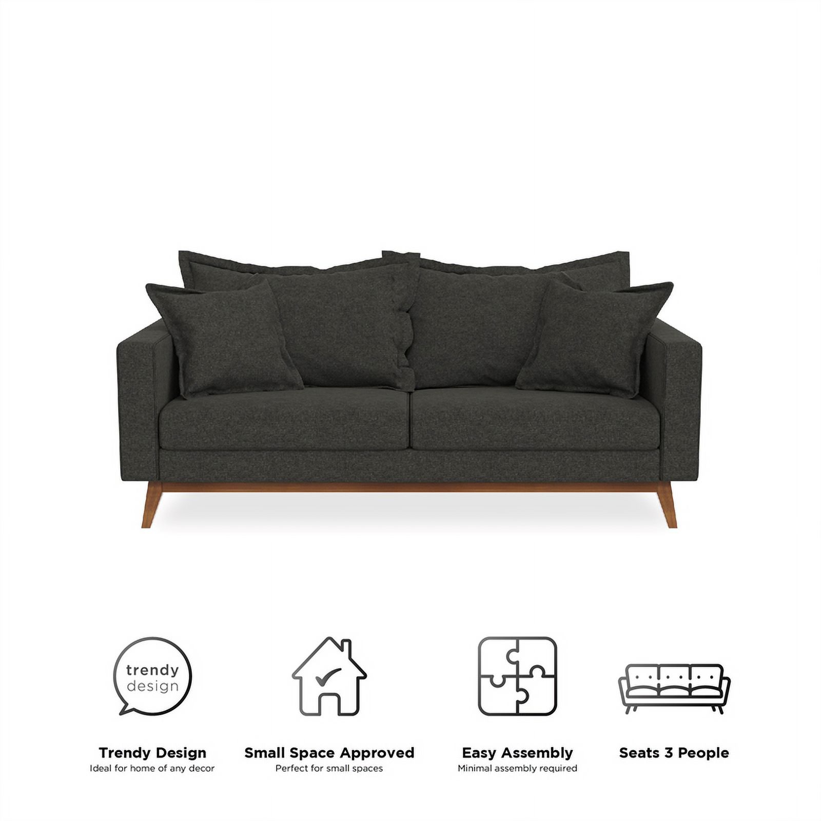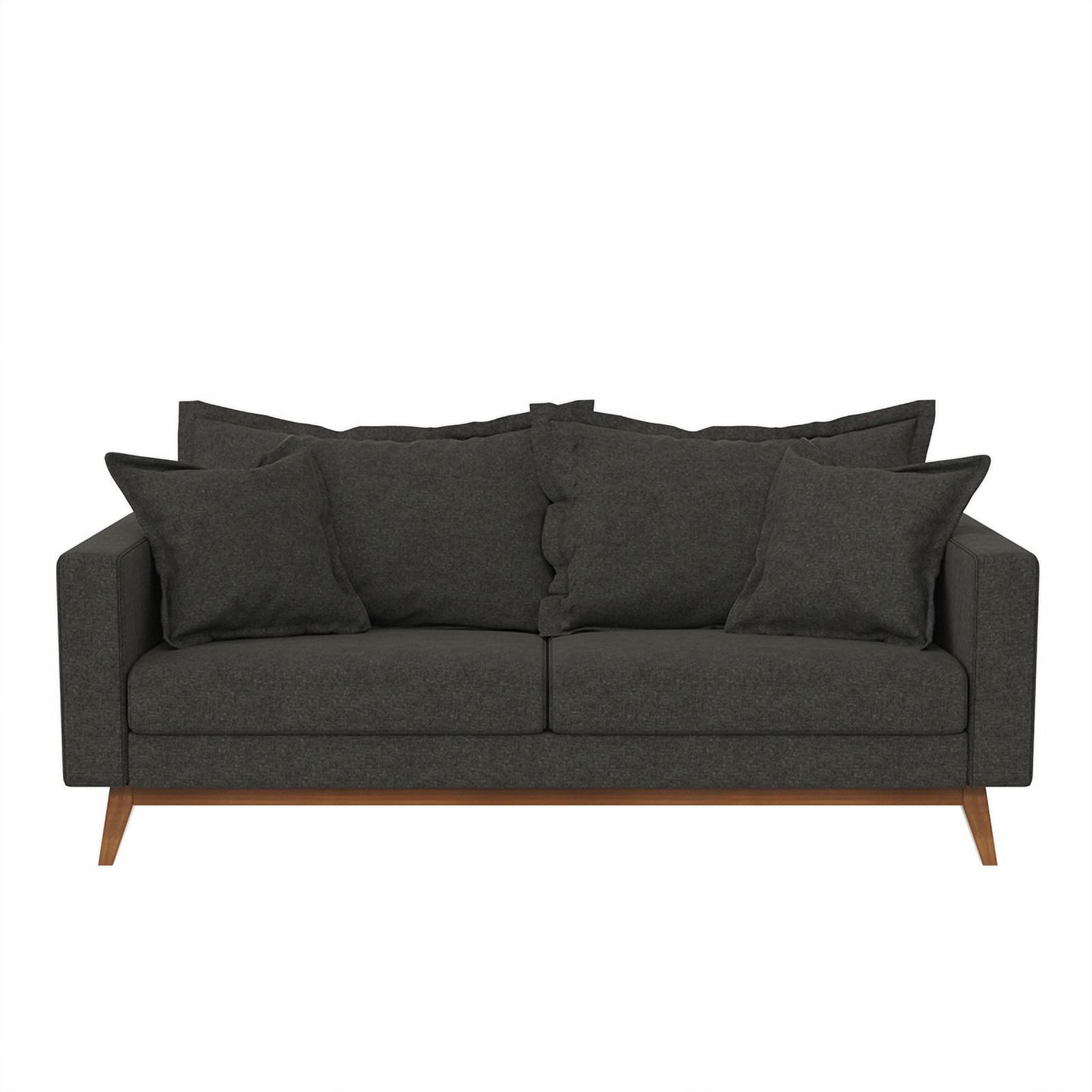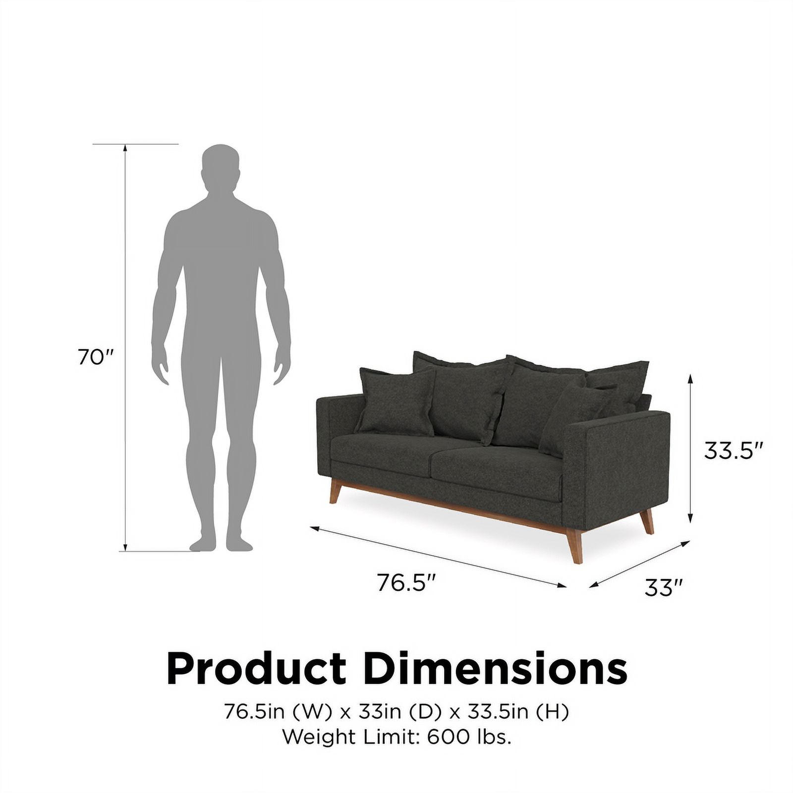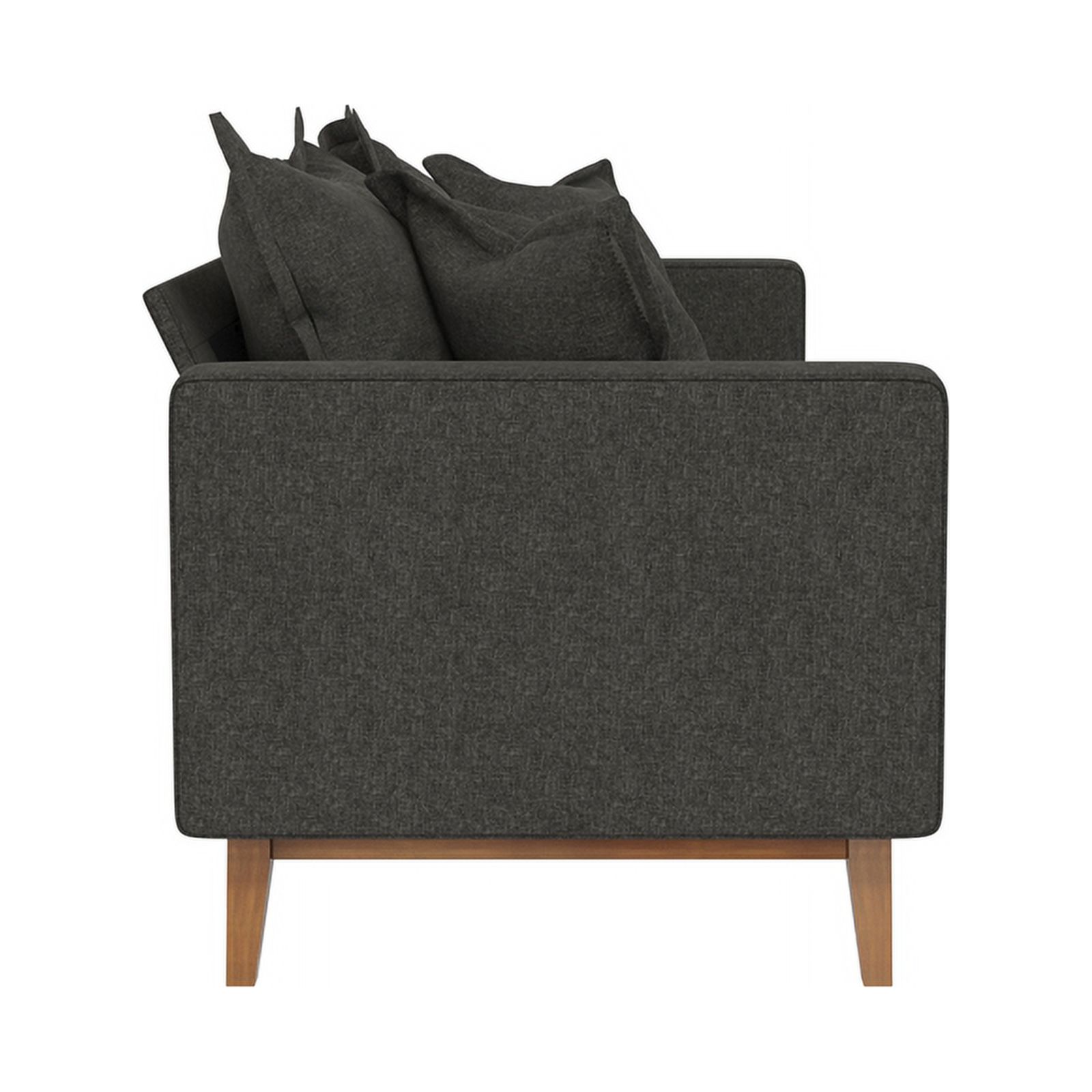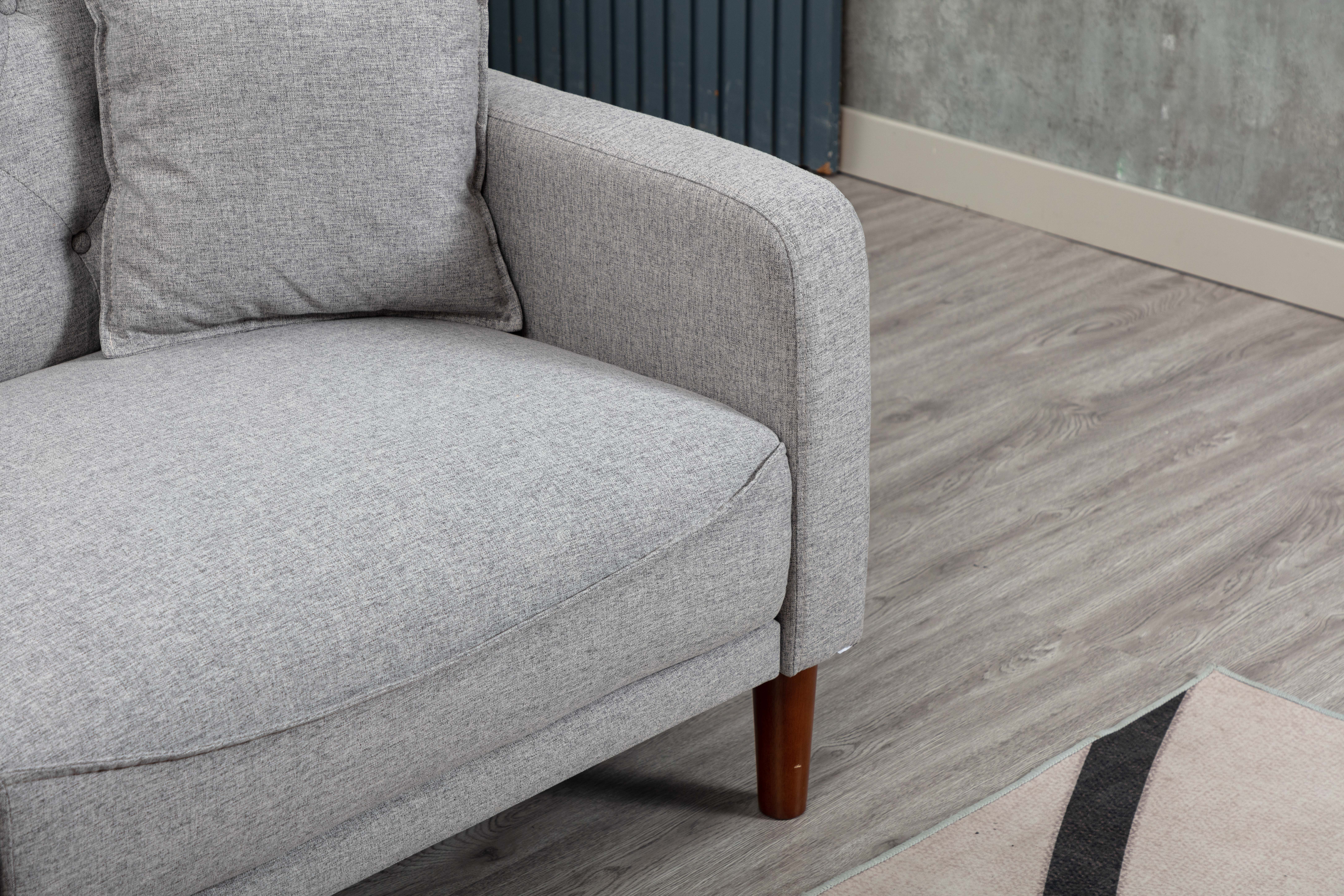 Minimalist Stylish Linen Fabric Upholstered Futon Sofa Bed with Two Pillows, Grey