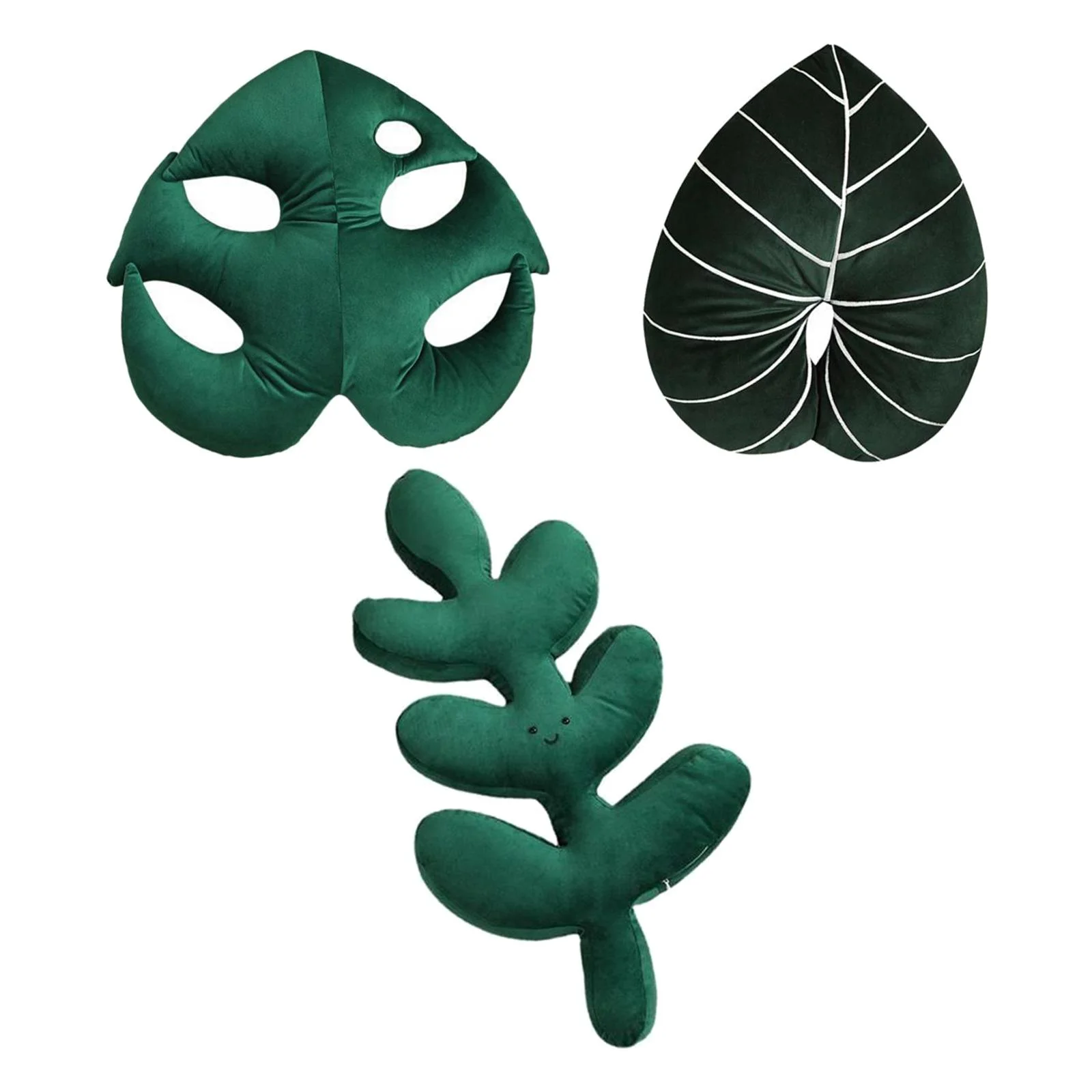 3Pieces Leaf Throw Pillow Plant Leaves Cushion for Sofa Couch Bed Indoor