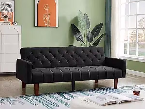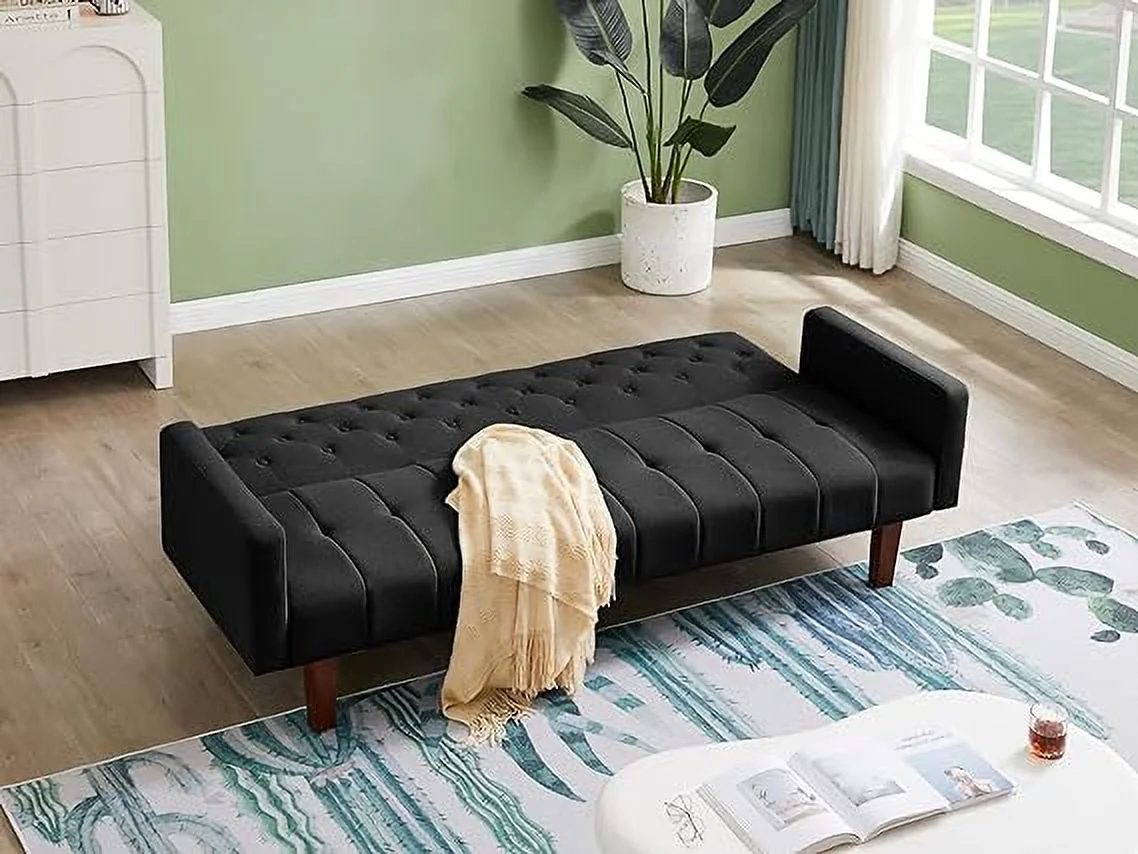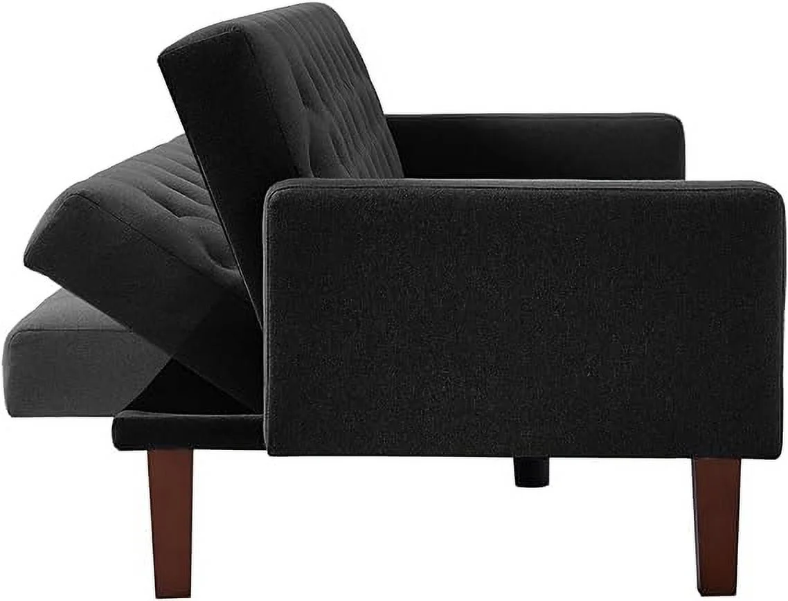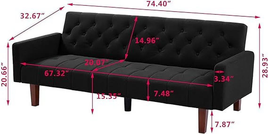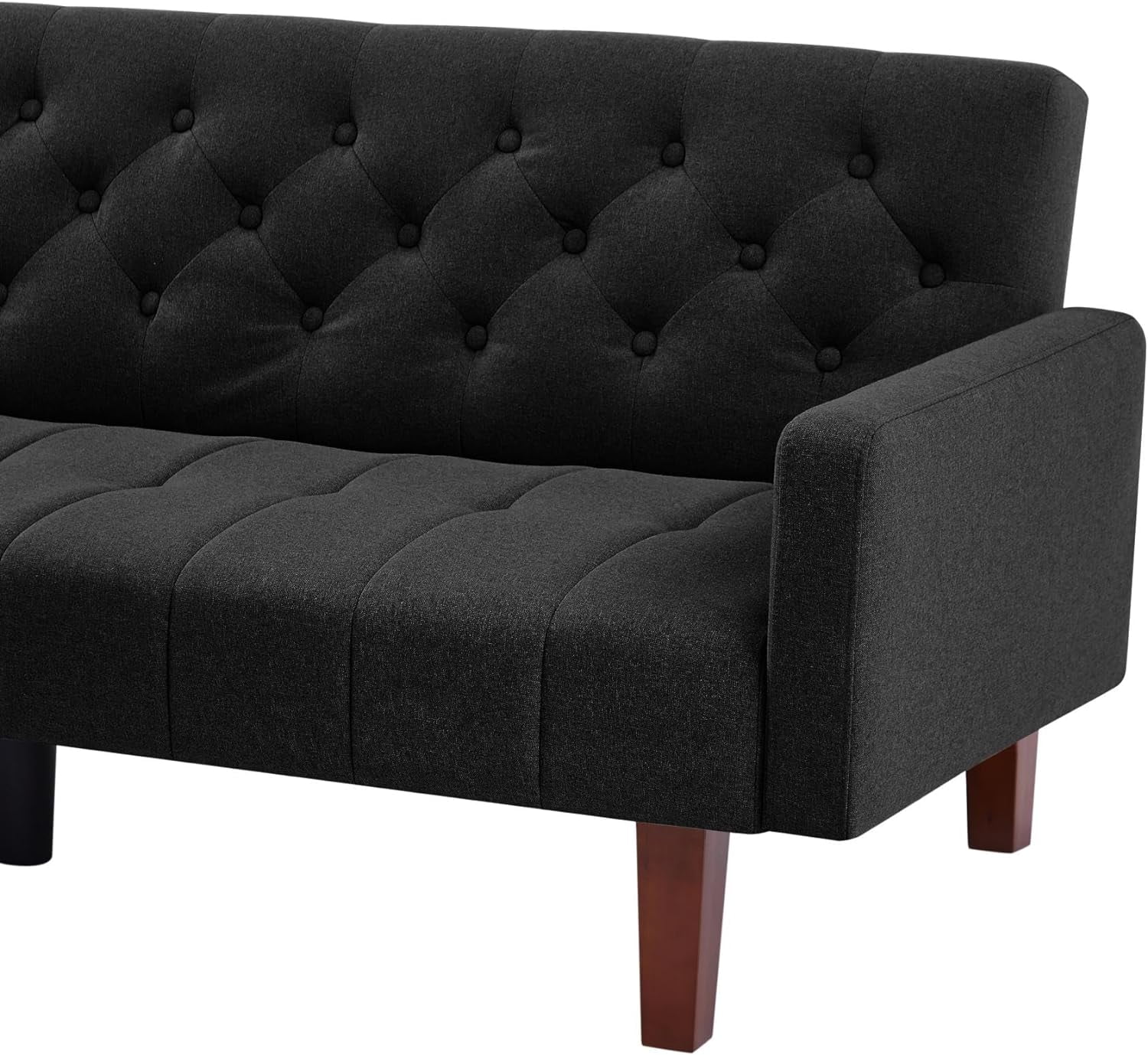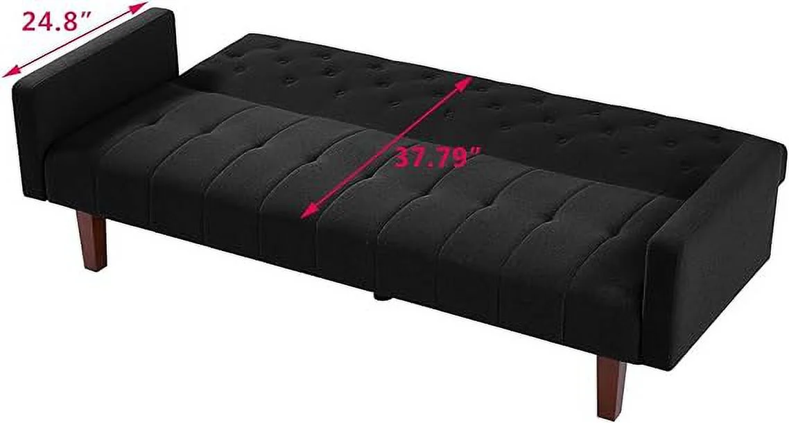 Knocbel Modern-styled Convertible Foldable Linen Sofa Bed with 5 Sturdy Wooden Legs, Adjustable Backrest with 3 Fixed Positions For Different Comfort, 74.40"W x 32.67"D x 28.93"H Black