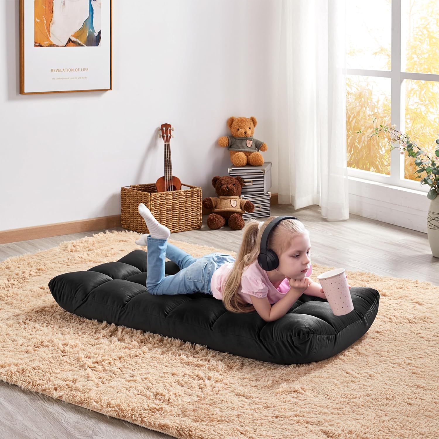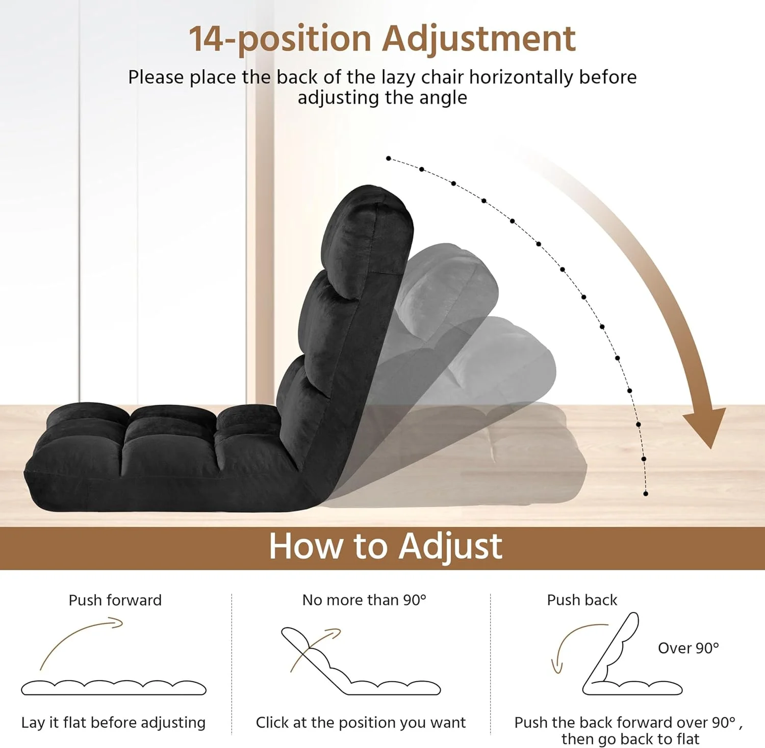 Ajustable 14-Position Floor Chair Folding Lazy Gaming Sofa Chair,Floor Folding Chair with Back Support, Adults Couch Recliner, Floor Seating Lounge Chair, Armless Meditation Chair,Black