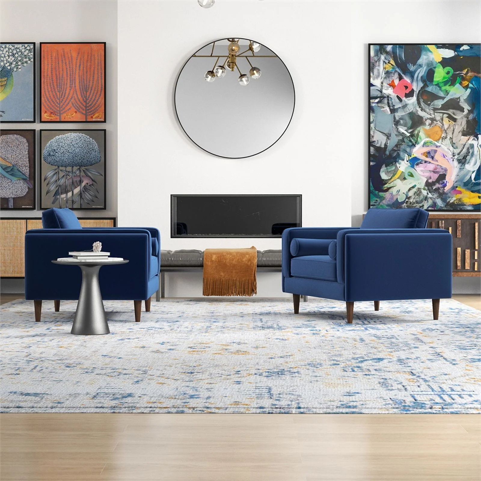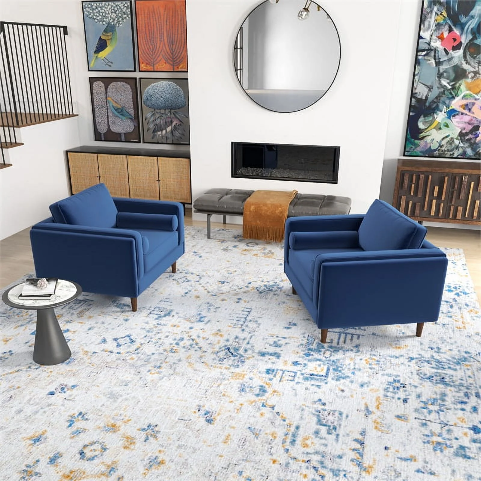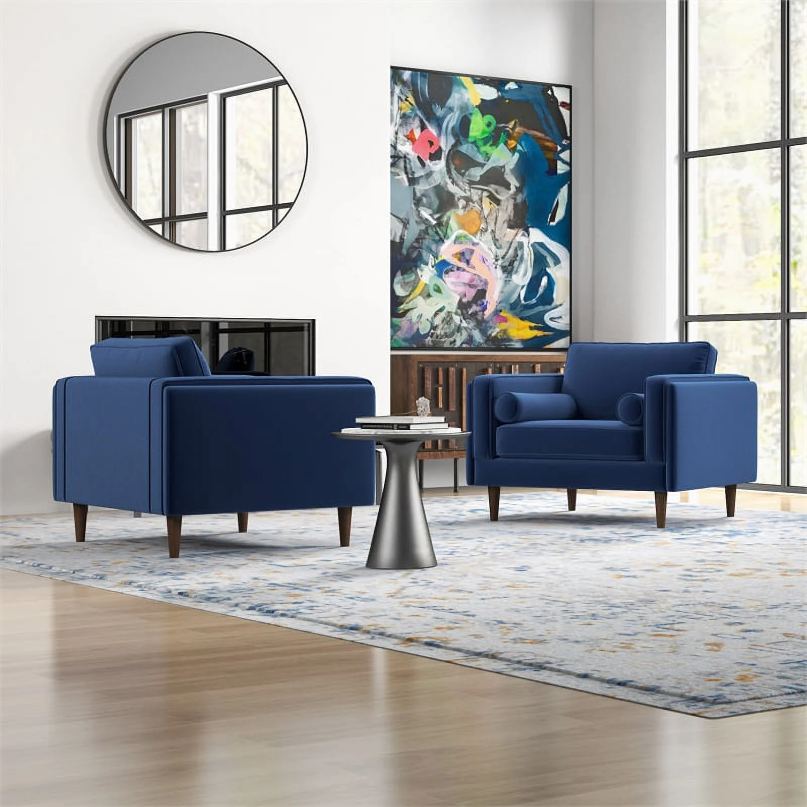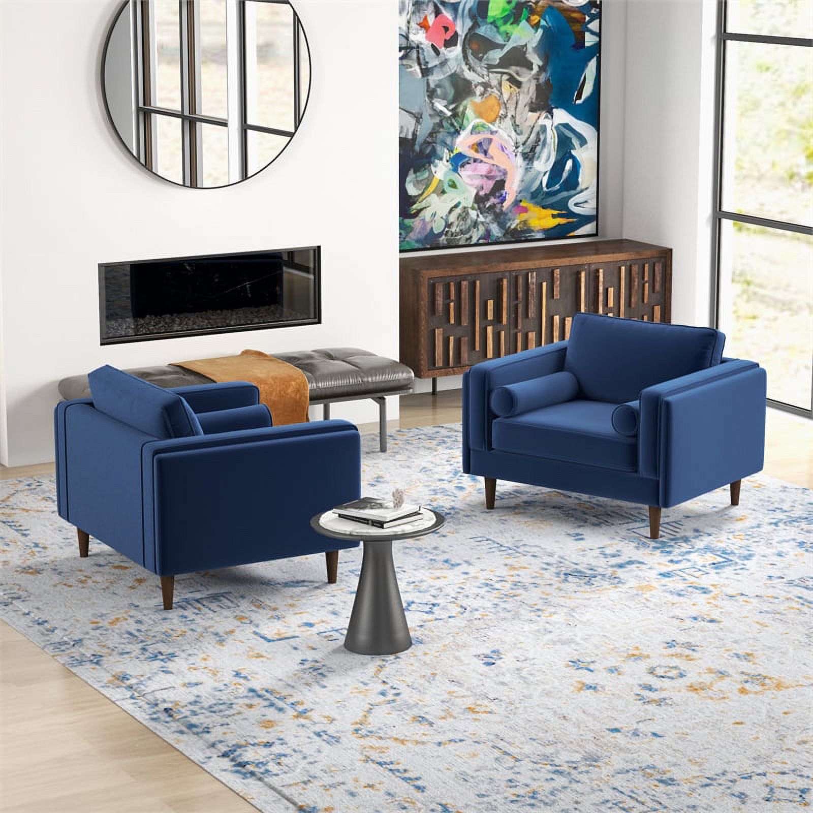 Ford Mid-Century Pillow Back Velvet Lounge Chair in Blue (Set of 2)