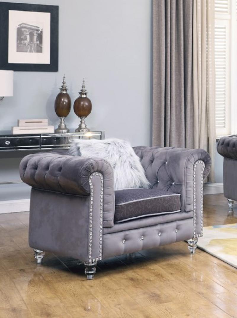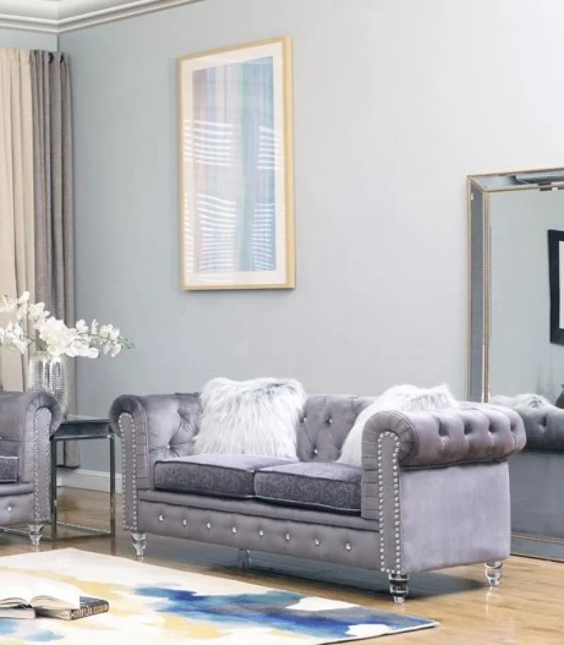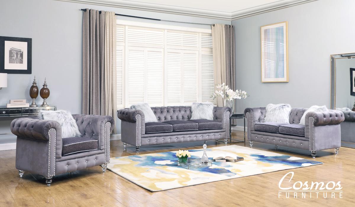 Gray Fabric Sofa Set 3Pcs w/ Acrylic legs Transitional Cosmos Furniture Sahara