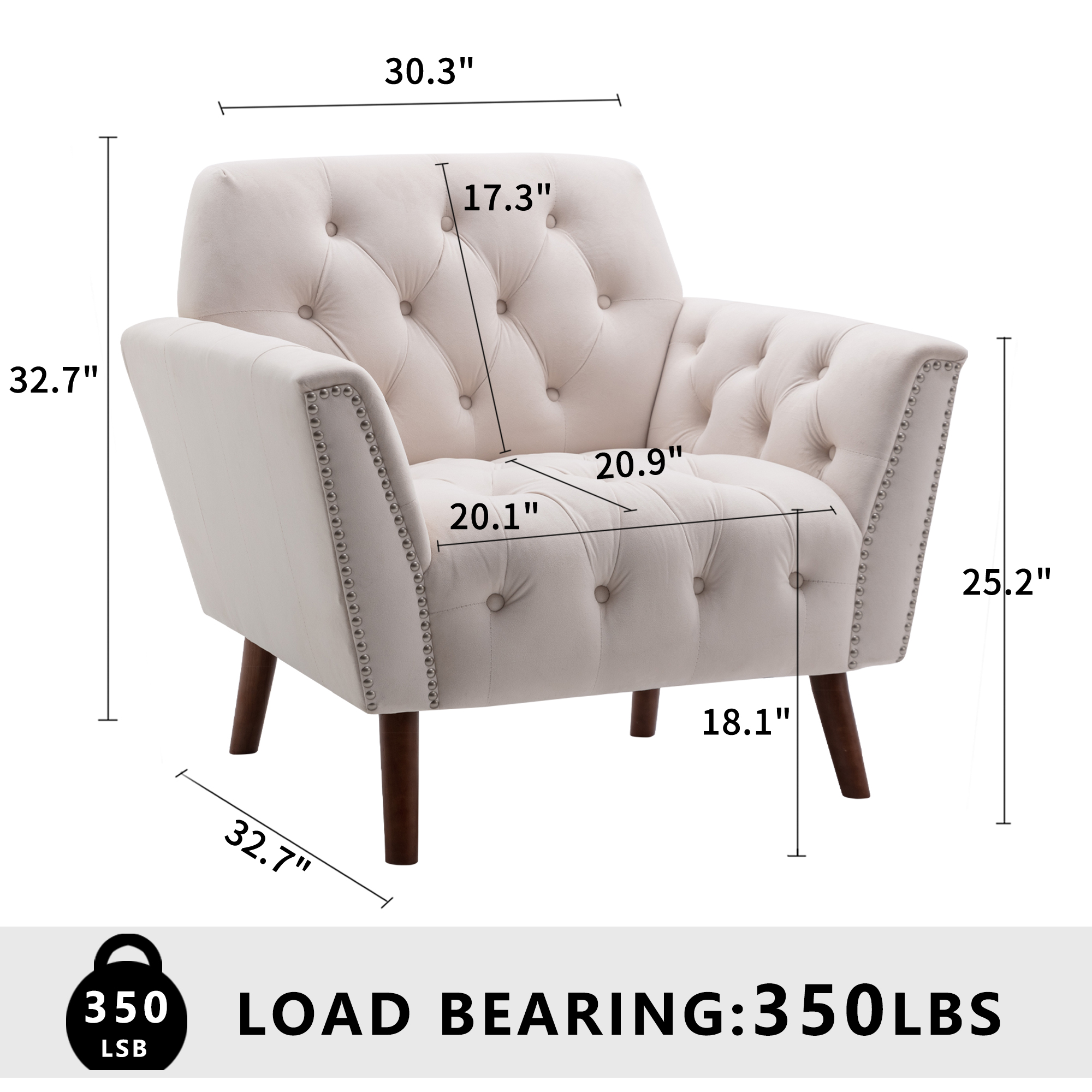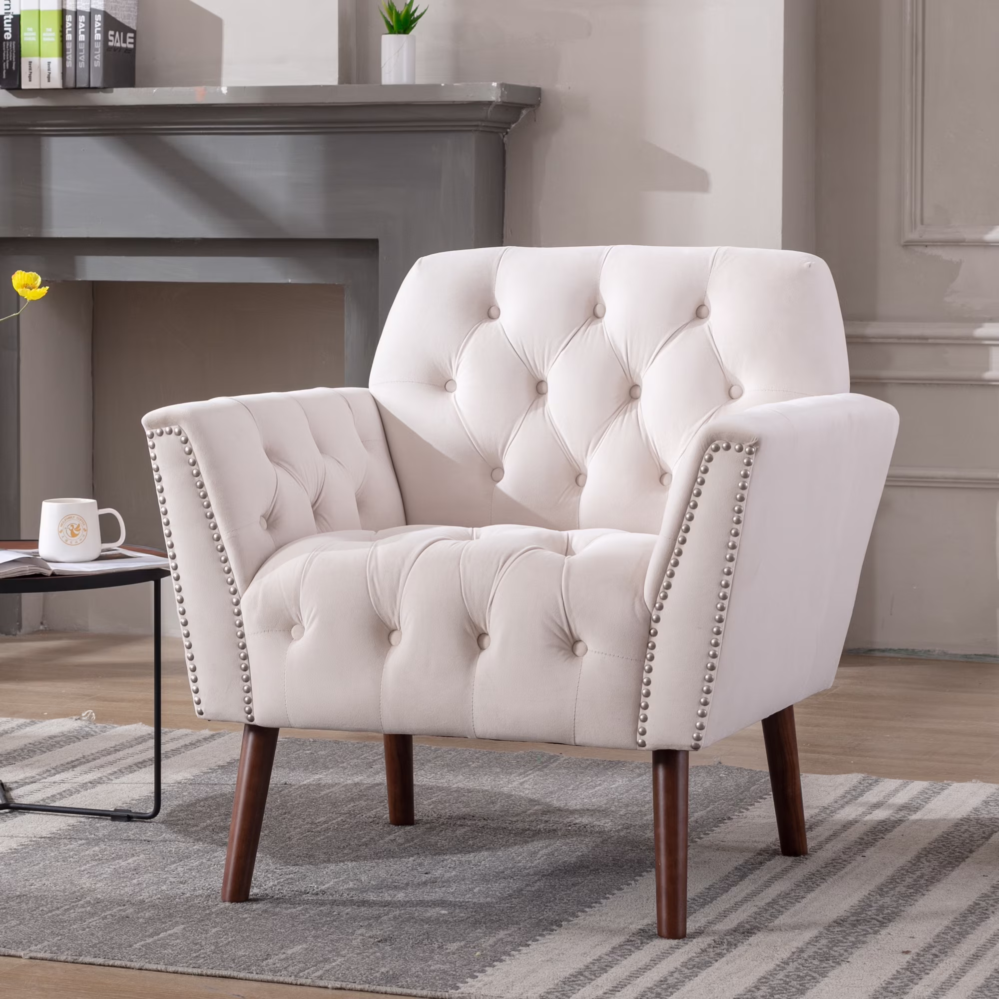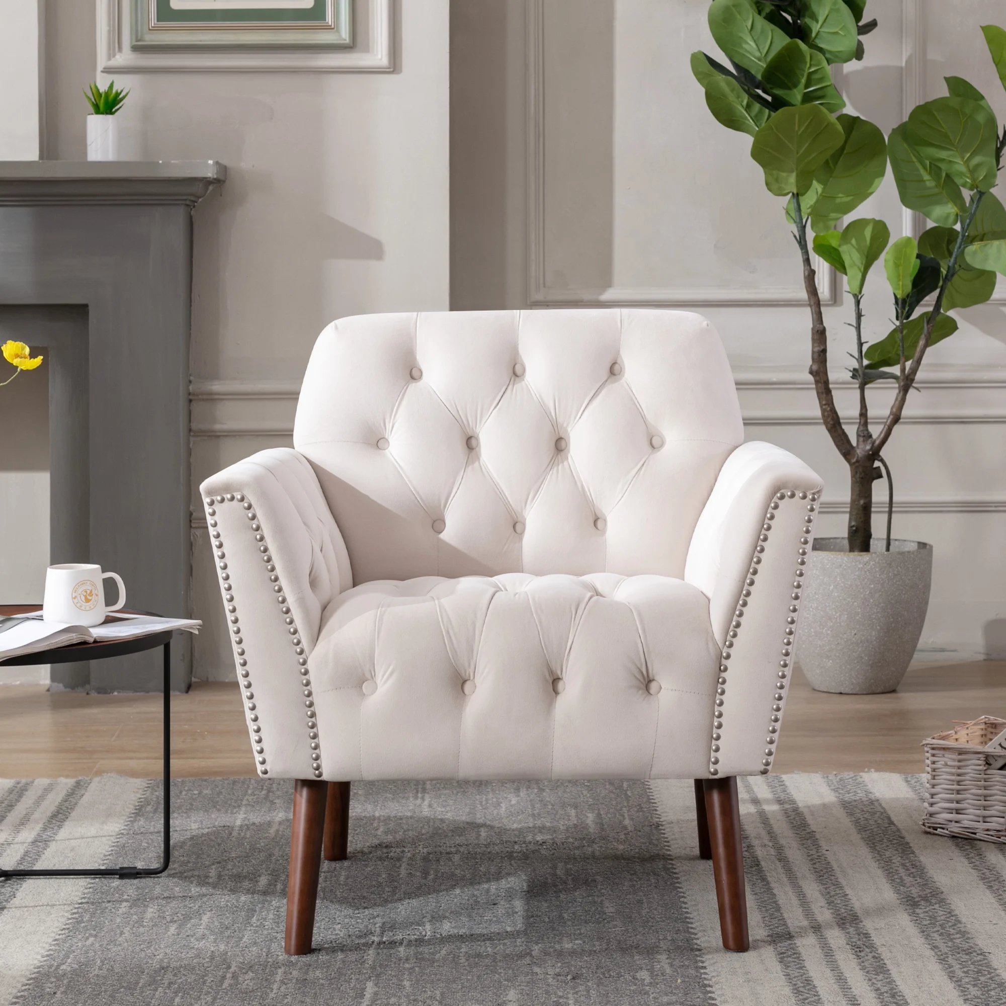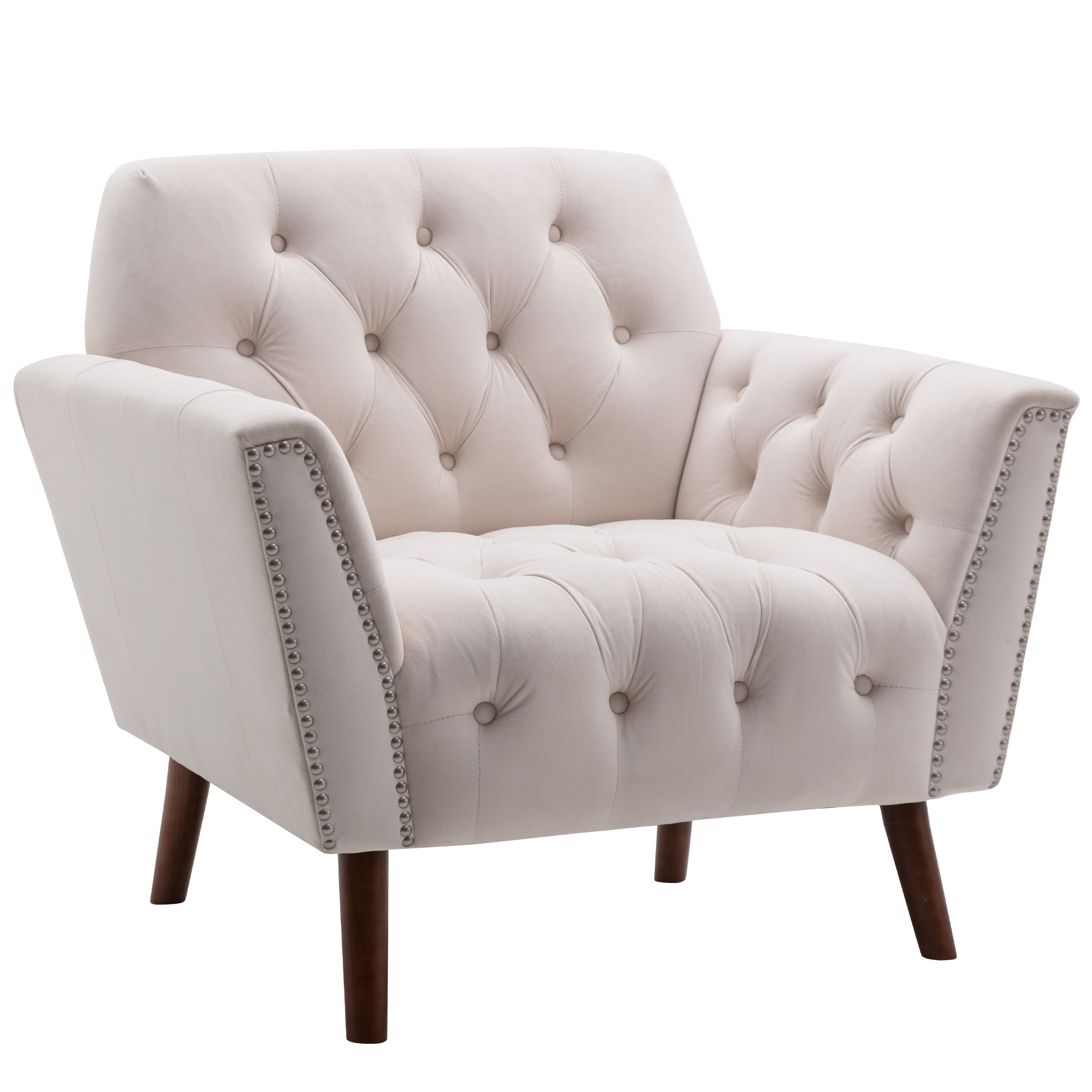 Mid-century Design Button-Tufted Accent Chair with Nail Arm and Thick Padded Cushion