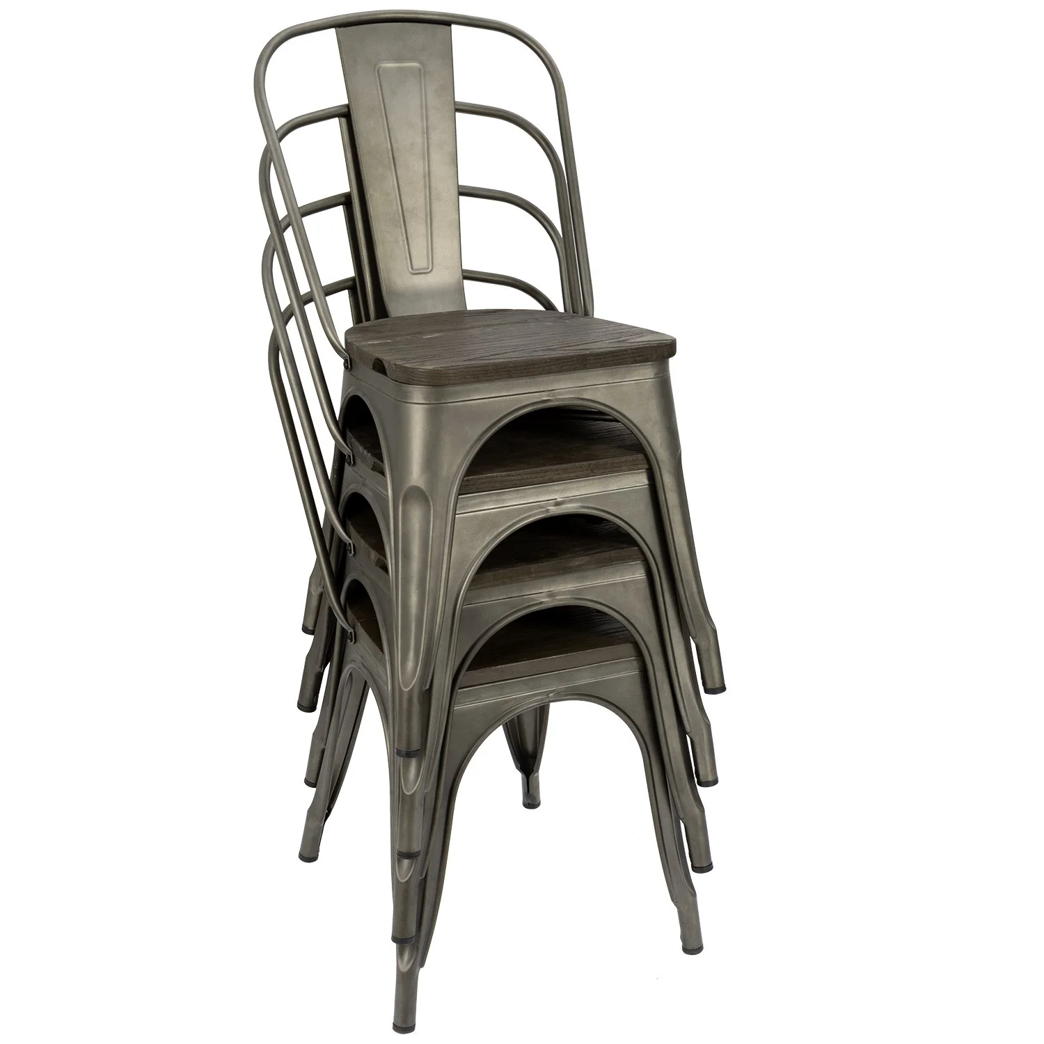 Lacoo Indoor-Outdoor Use Stackable Chic Dining Bistro Cafe Metal Chair Gun,Set of 4