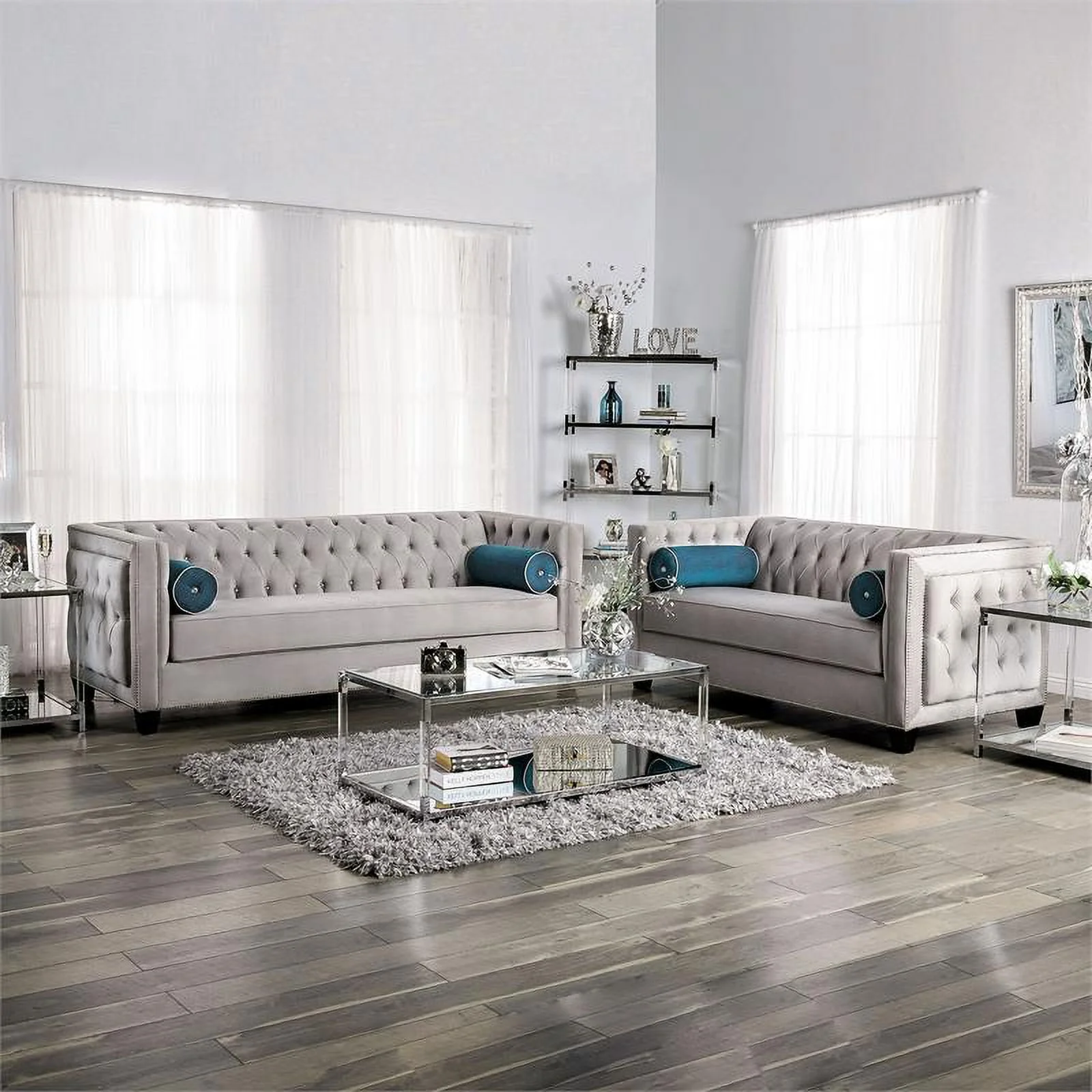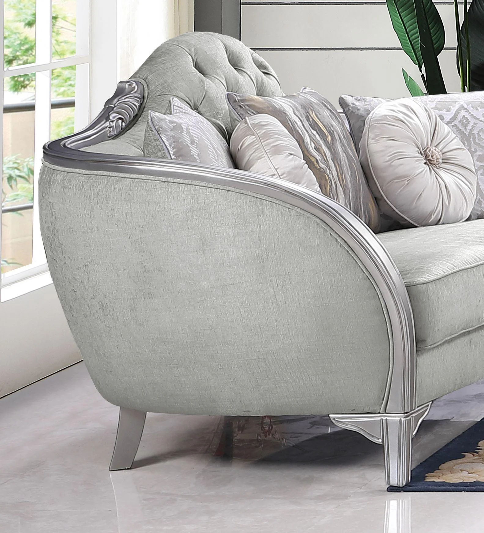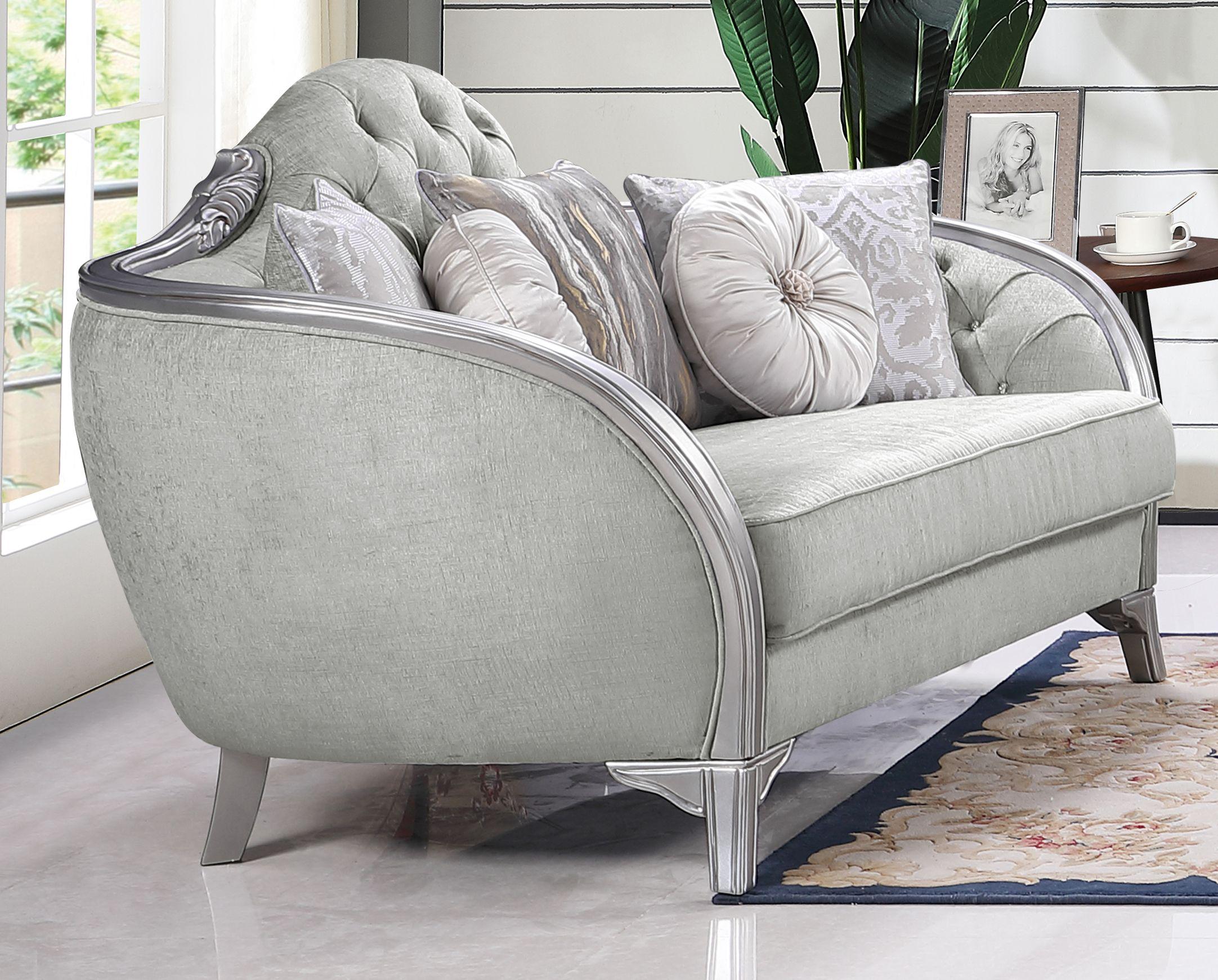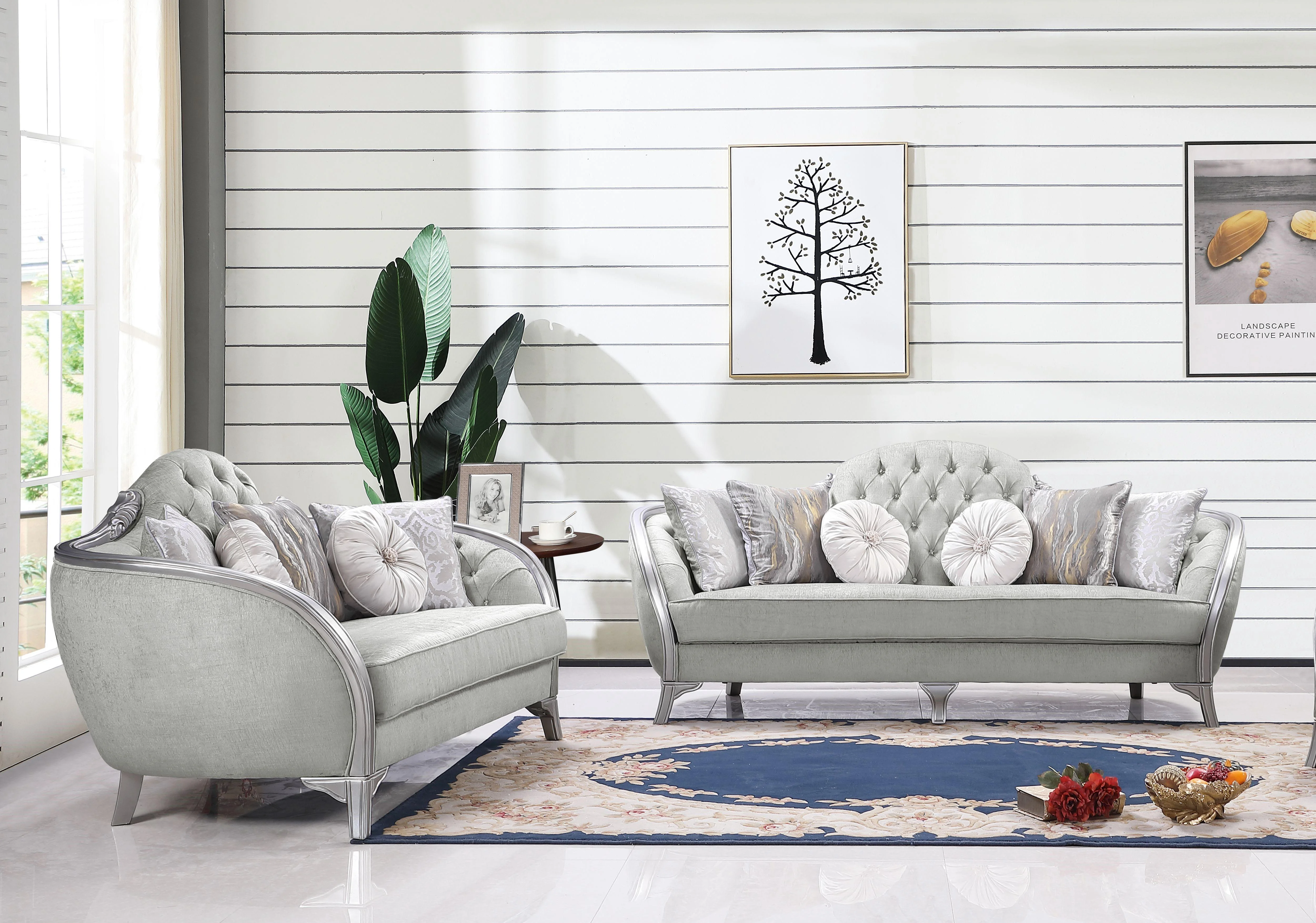 Silver Gray Finish Wood Sofa Set 2Pcs Transitional Cosmos Furniture Natalia