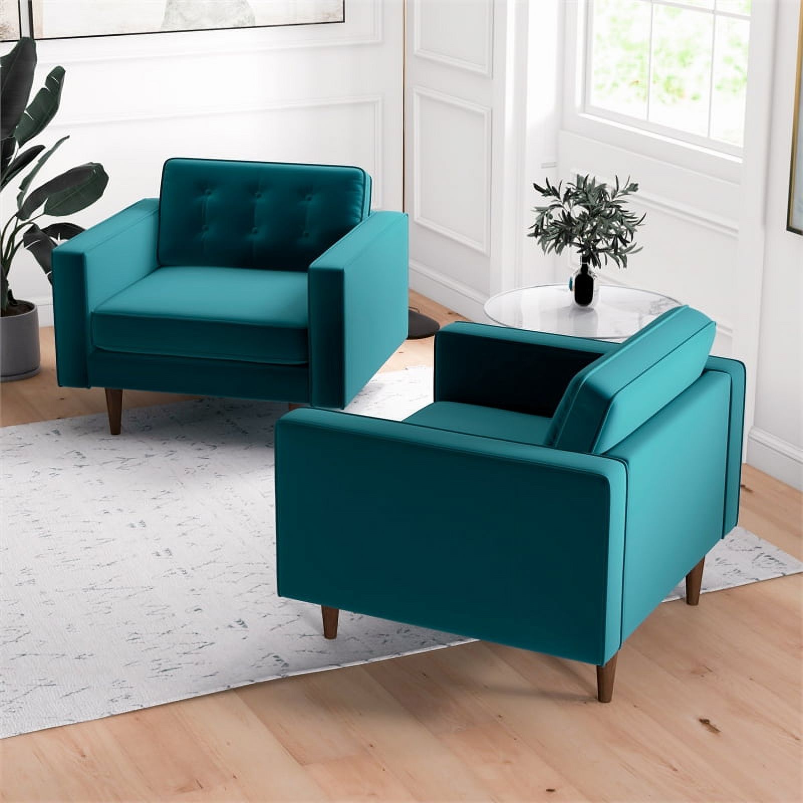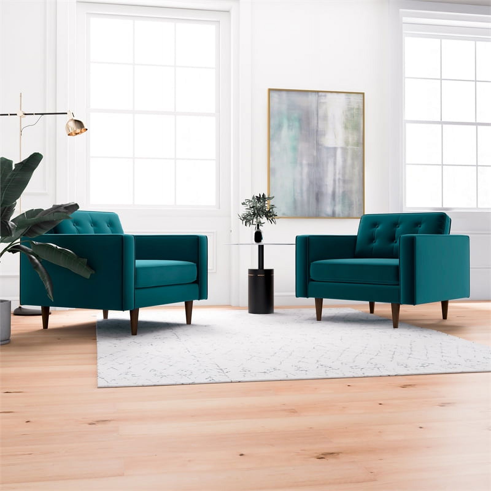 Karmen Mid-Century Pillow Back Velvet Lounge Chair in Turquoise (Set of 2)