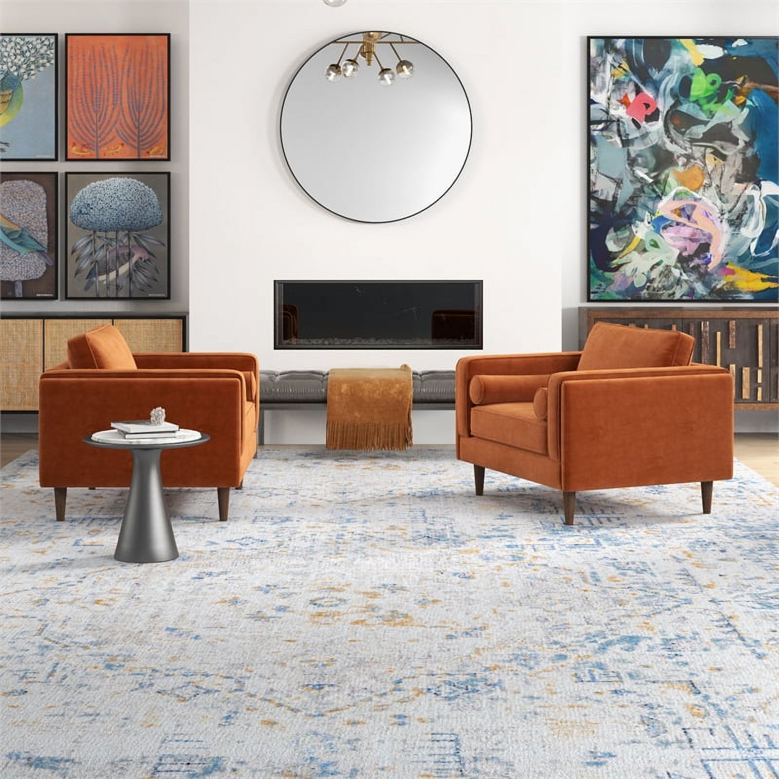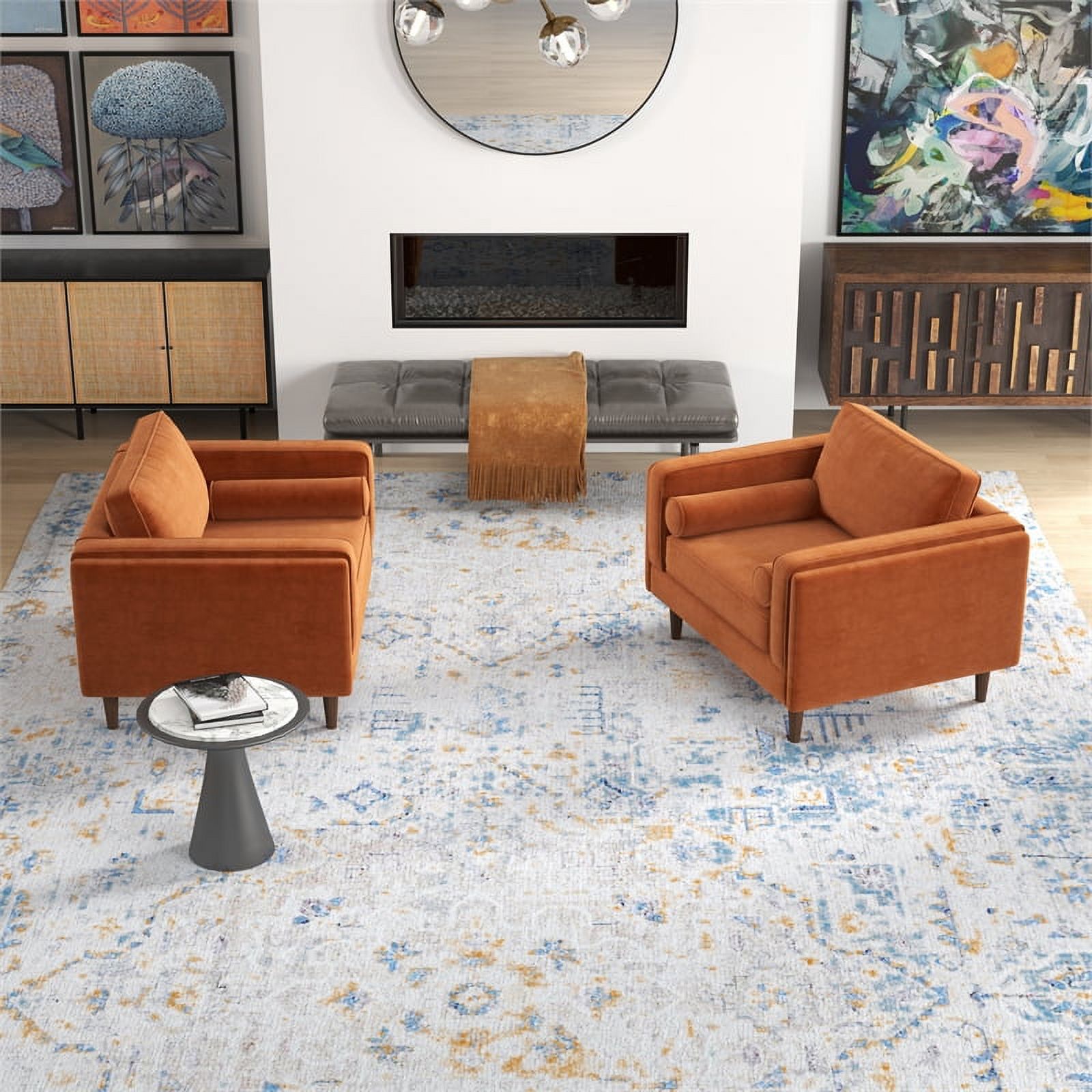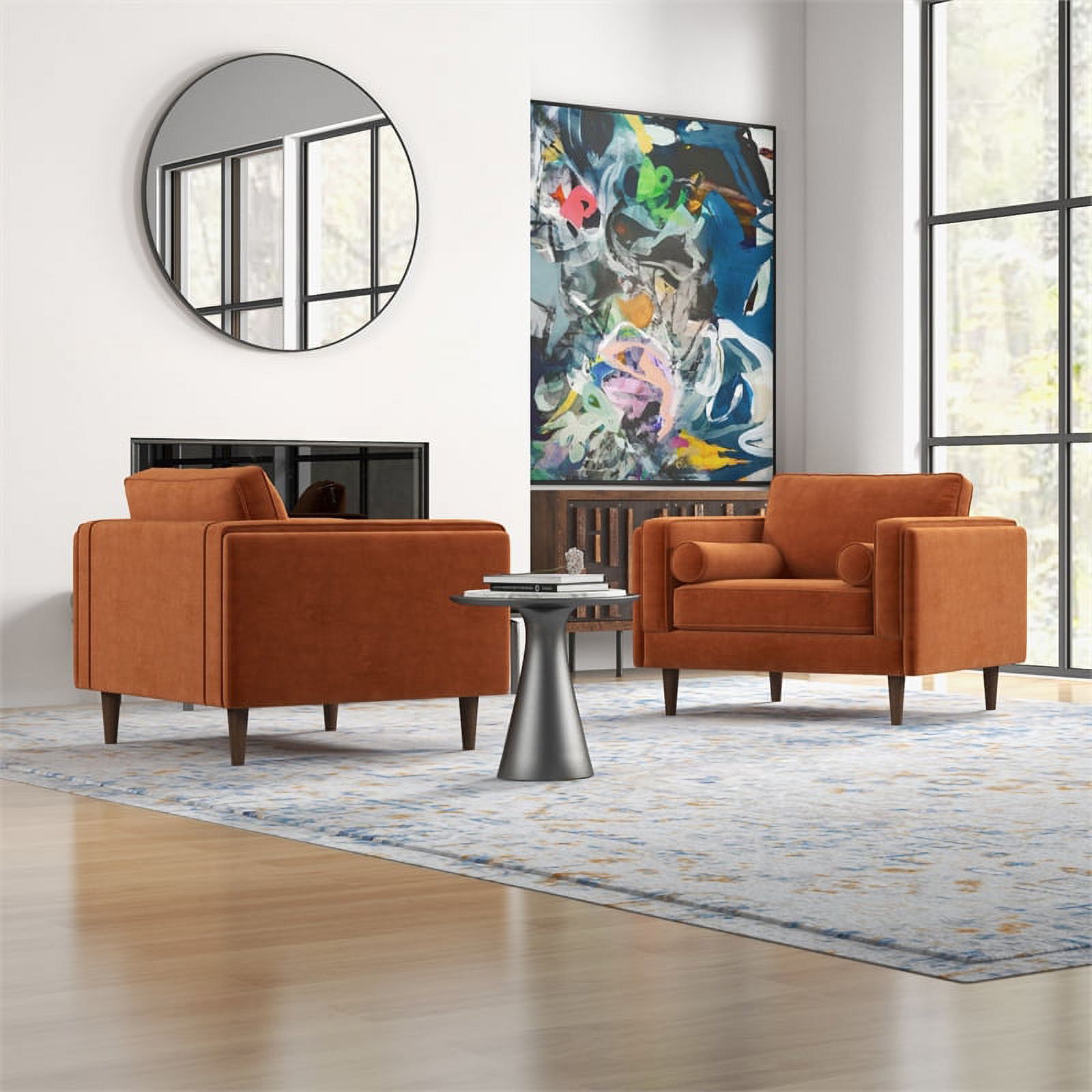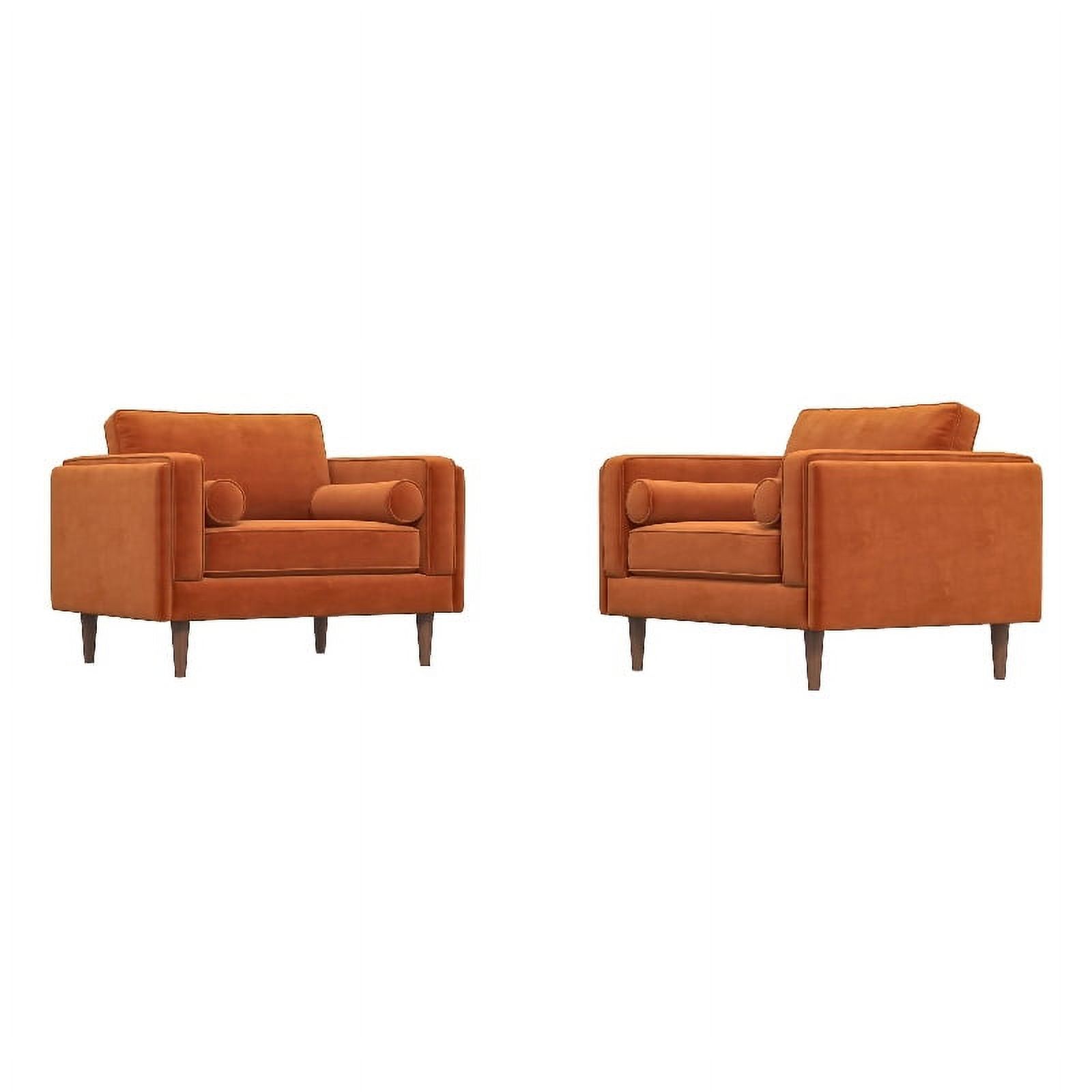 Ford Mid-Century Pillow Back Velvet Lounge Chair in Orange (Set of 2)