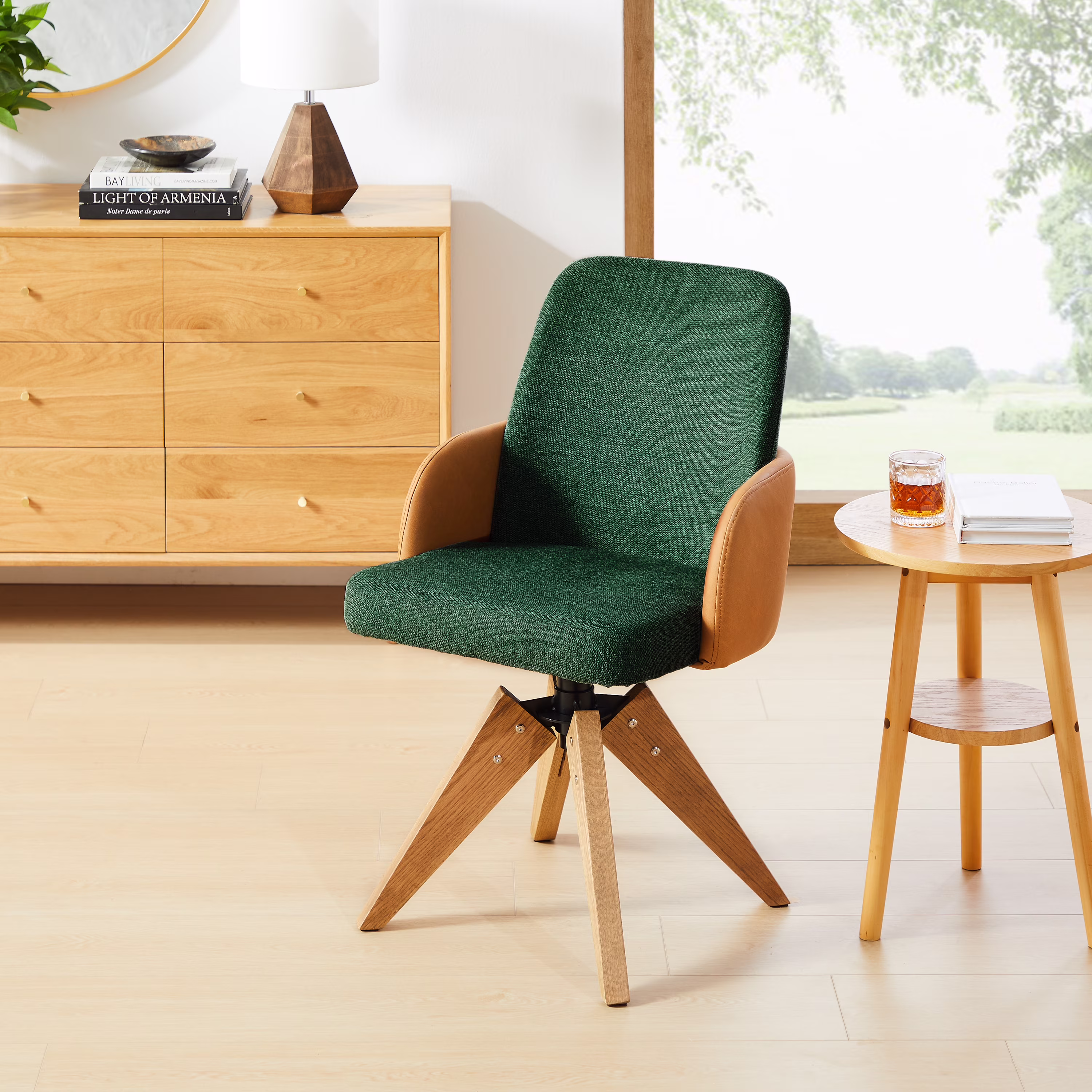 Art Leon Linen Accent Swivel Chair, Mid Century Living Room Chair, Arm Chair with Oak Wood Legs,Green