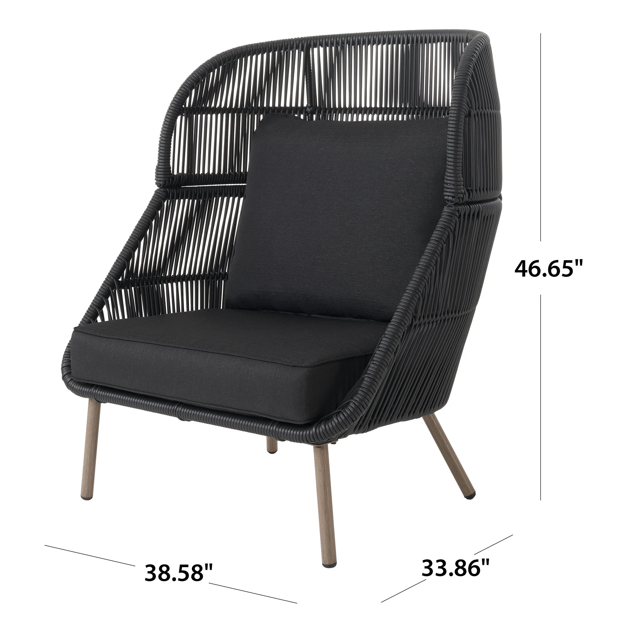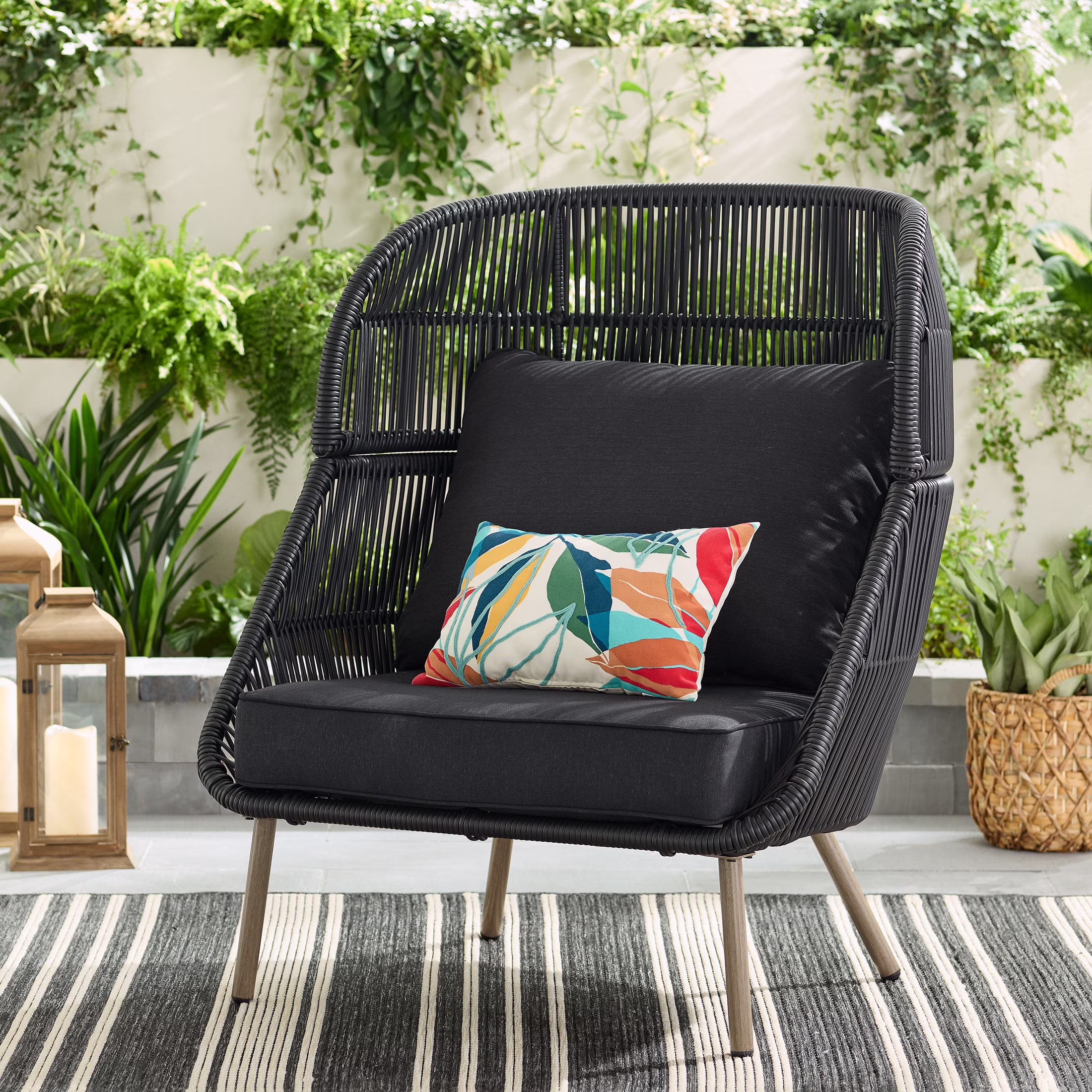 Better Homes & Gardens Tarren Wicker Outdoor Accent Chair with Cushions, Black