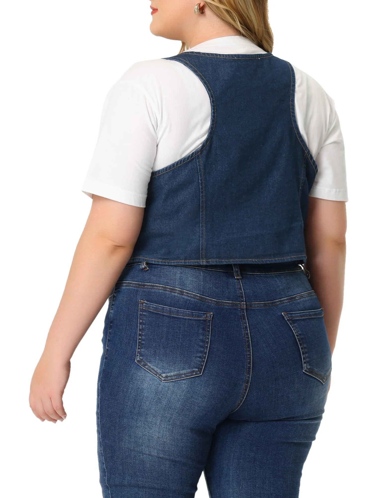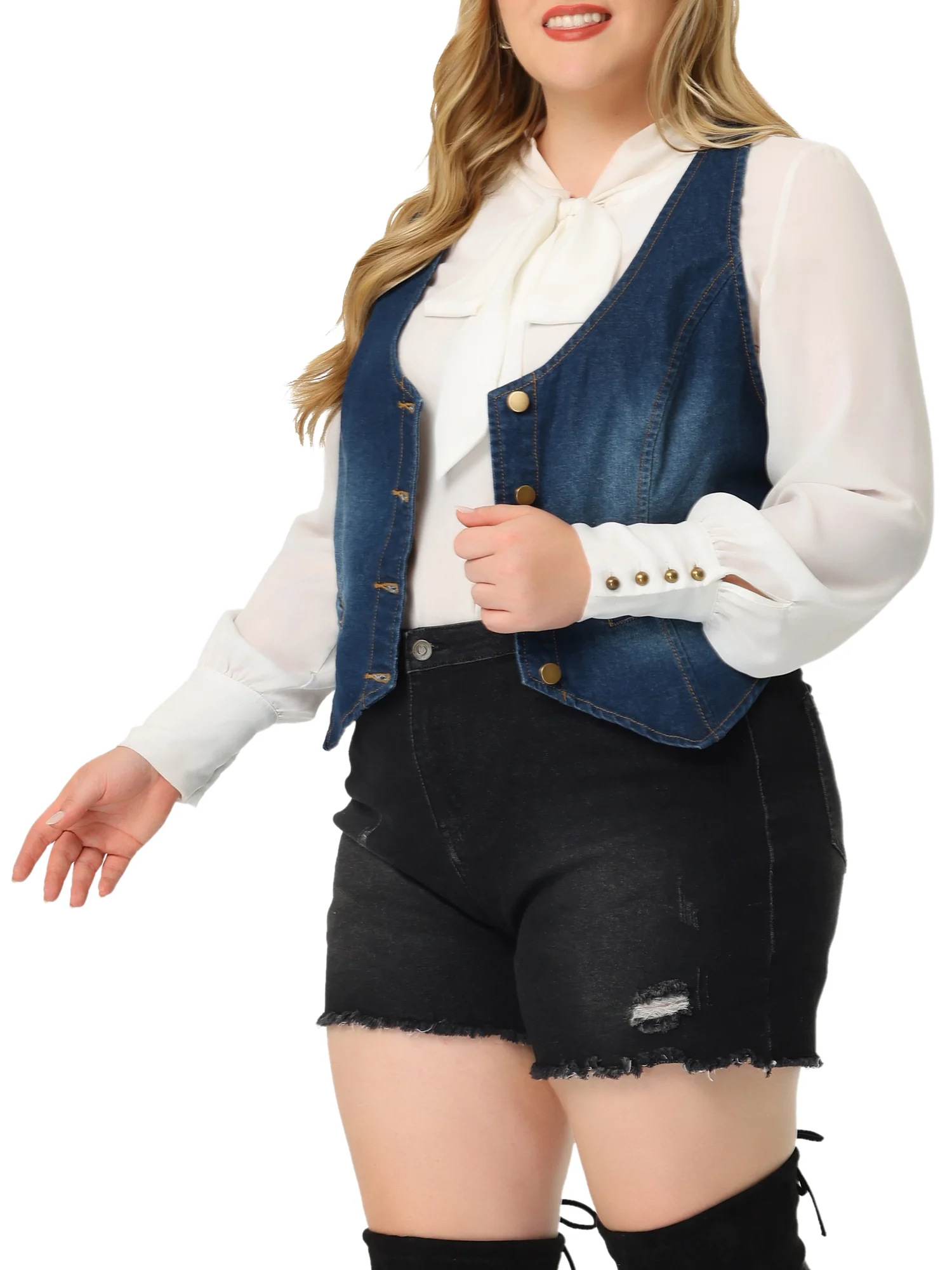 Agnes Orinda Women's Plus Size Denim Sleeveless Jacket Button Up Vintage Jean Waistcoat Vest