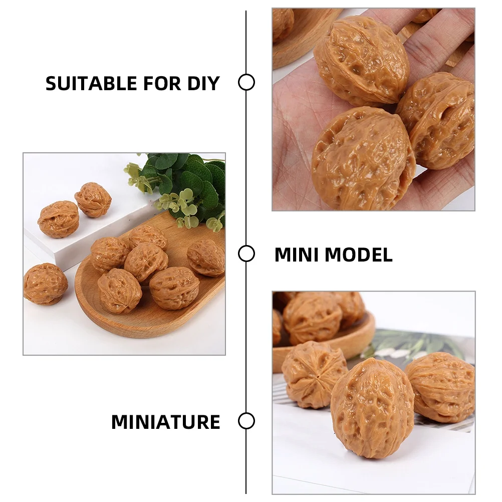 6 Pcs Home Decor Model Miniature Doll House Faux Walnut Fake Artificial Nuts Decorations