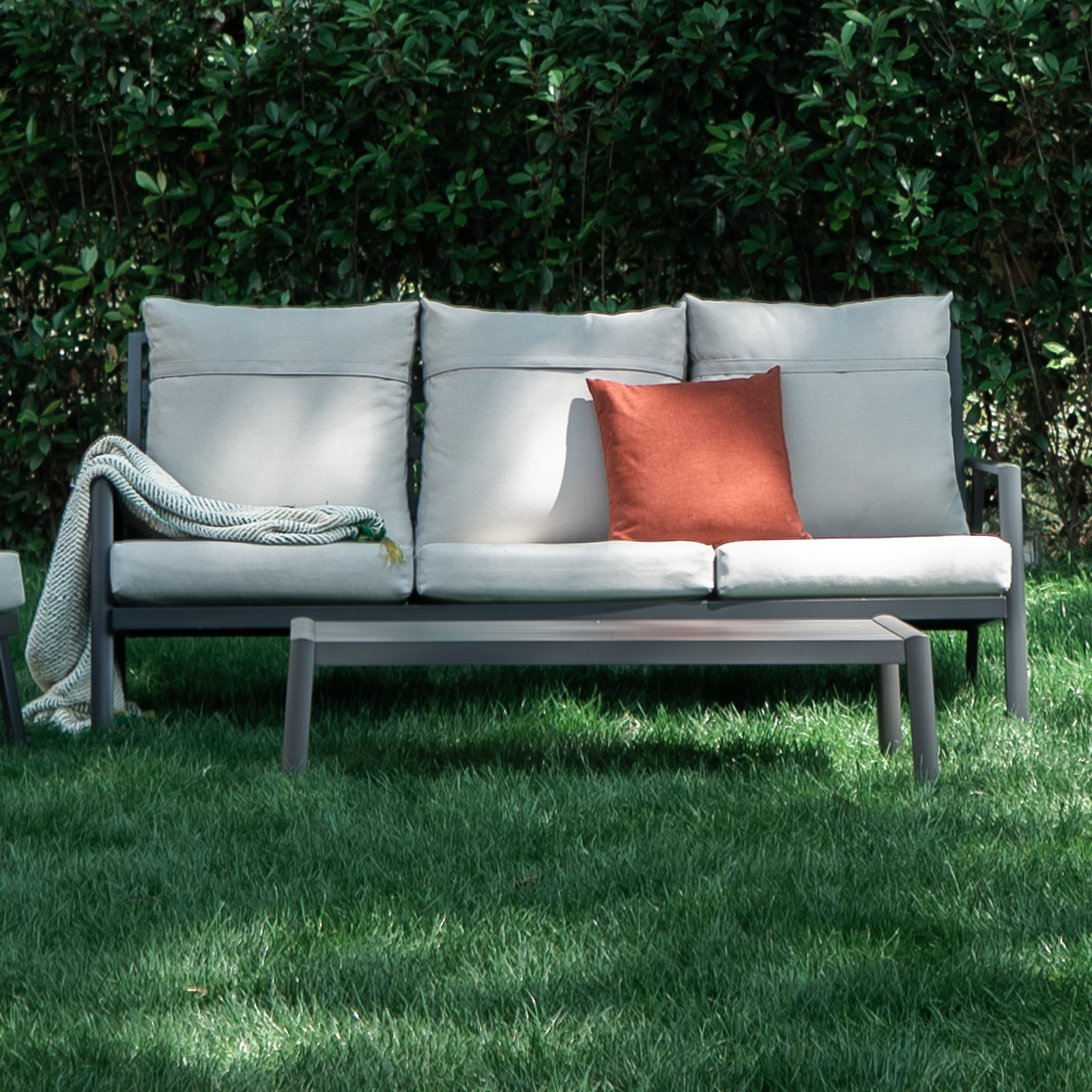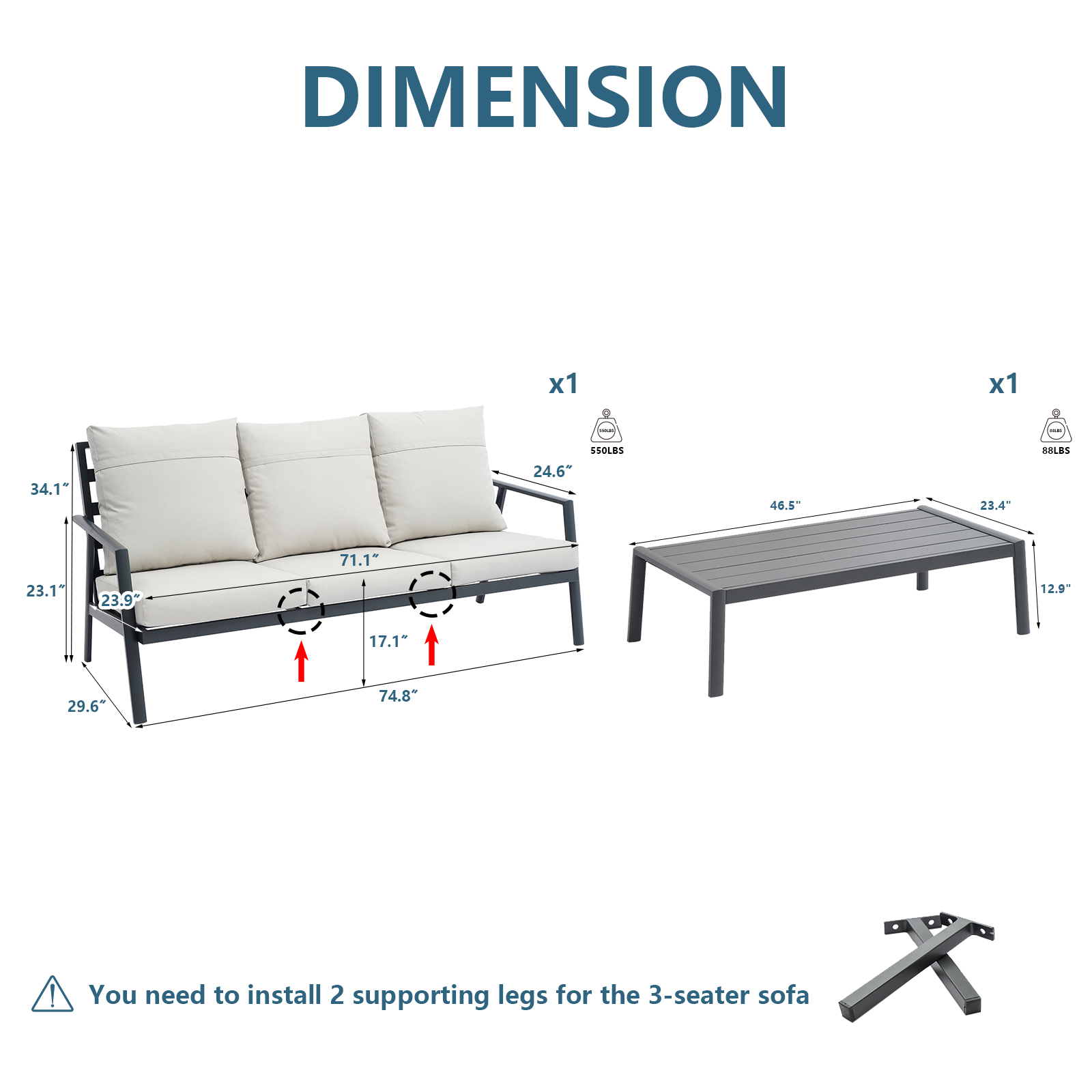 Outdoor Sectional Sofa Set High Back 3 Seater Sofa Aluminum Conversation Set Outdoor Furniture