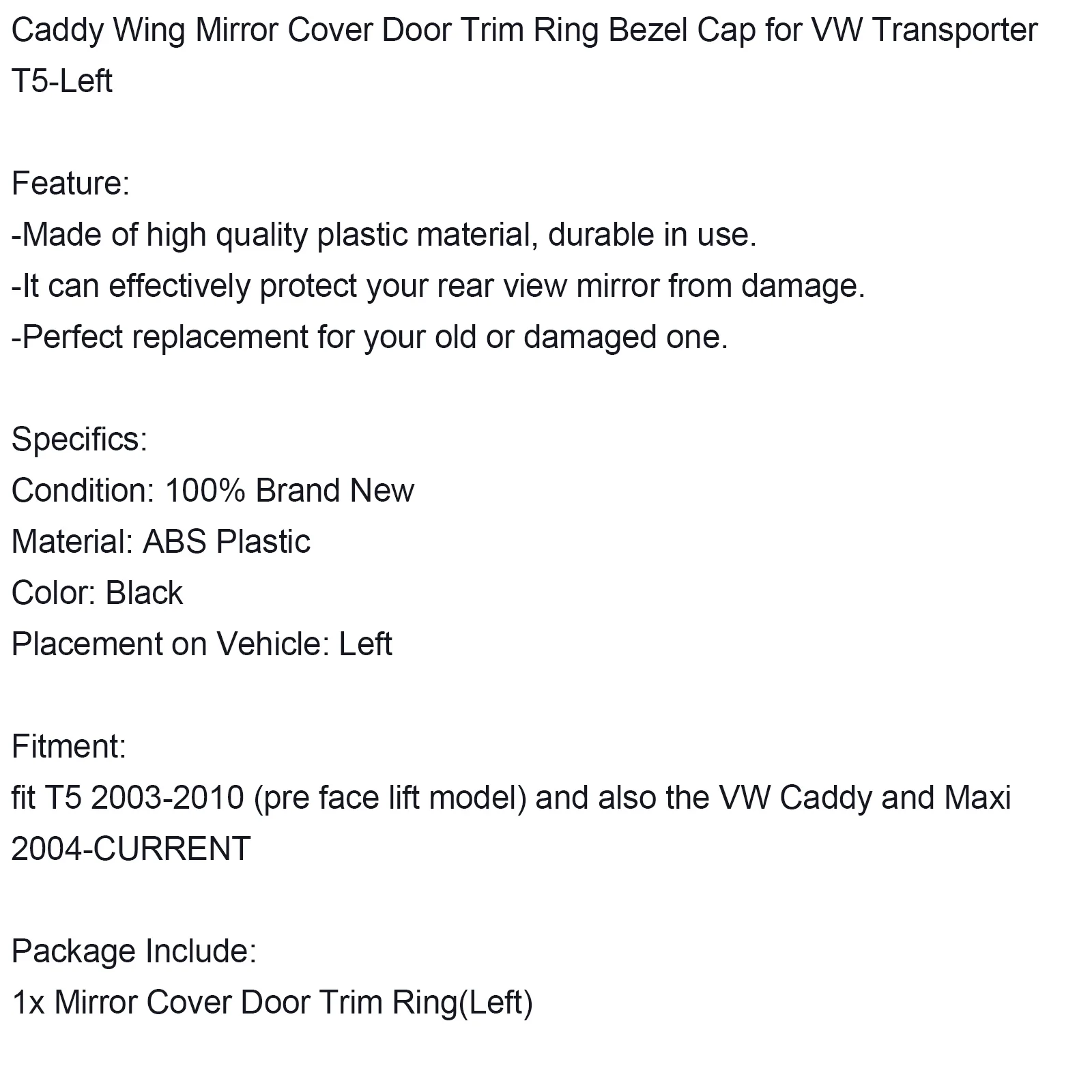 Caddy Wing Mirror Cover Door Trim Ring Bezel Cap for VW Transporter T5-Left