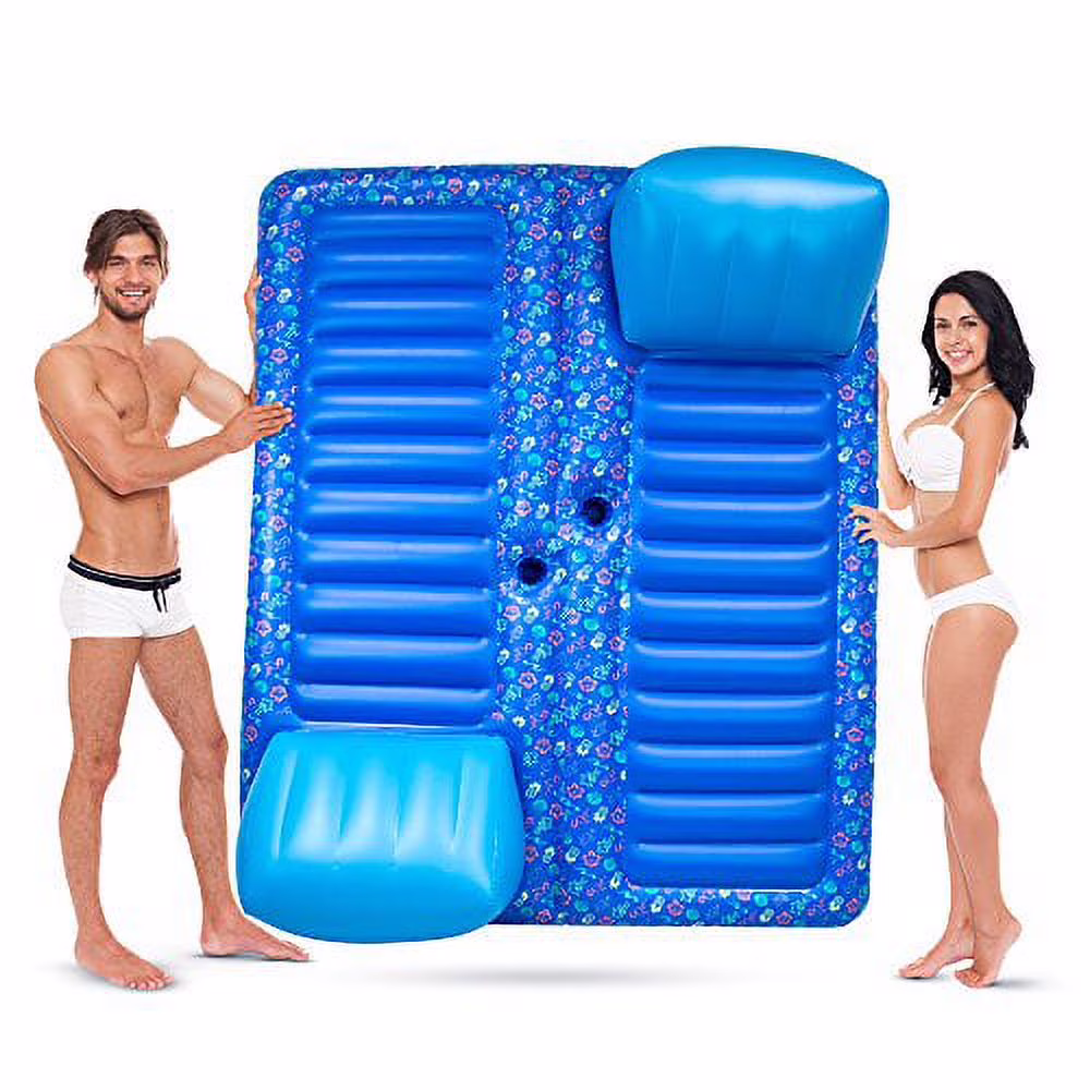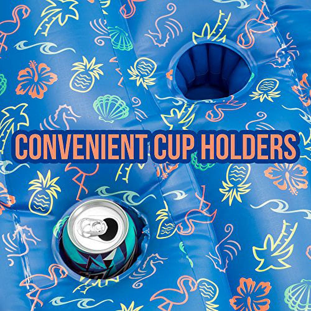 Sol Coastal Face to Face 2-Person Swimming Pool Inflatable Lounge Raft with Cup Holders