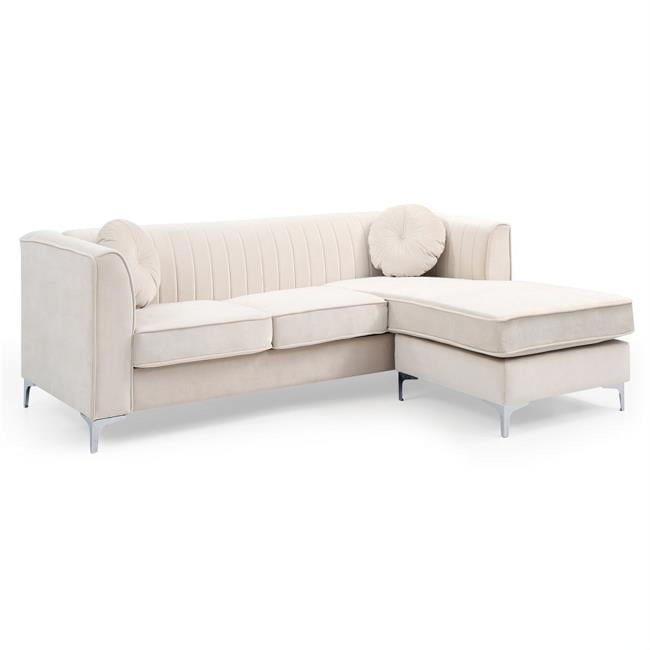 75 in. Delray Velvet L-Shape 3-Seater Sectional Sofa with 2-Throw Pillow, Ivory