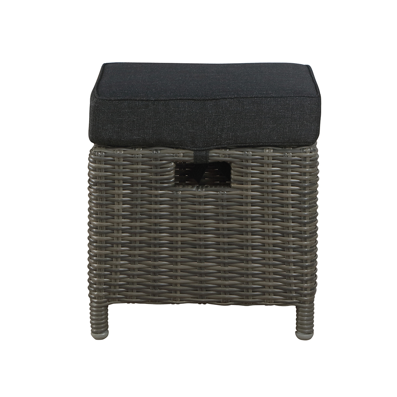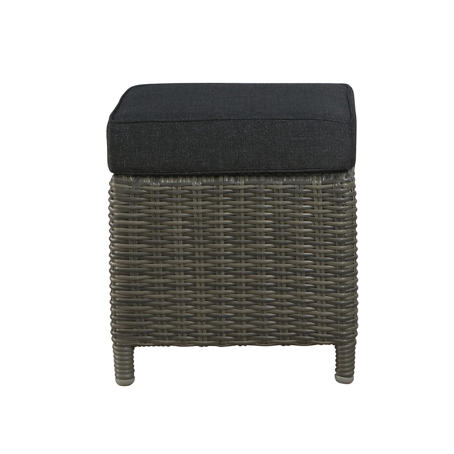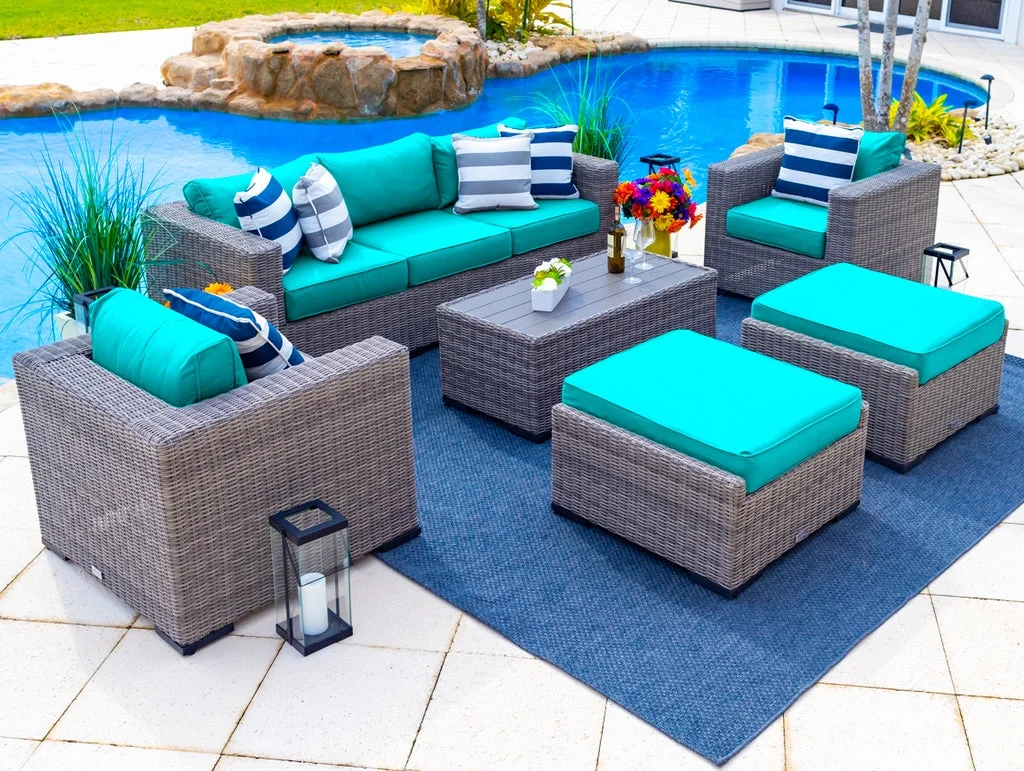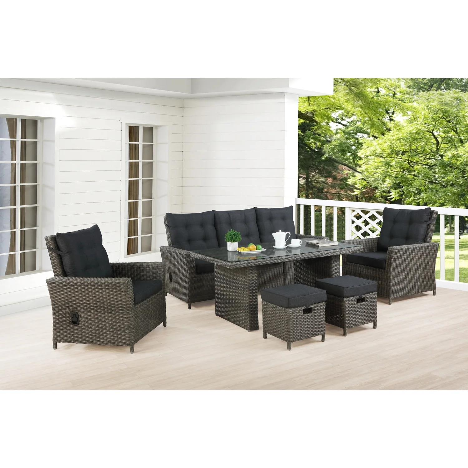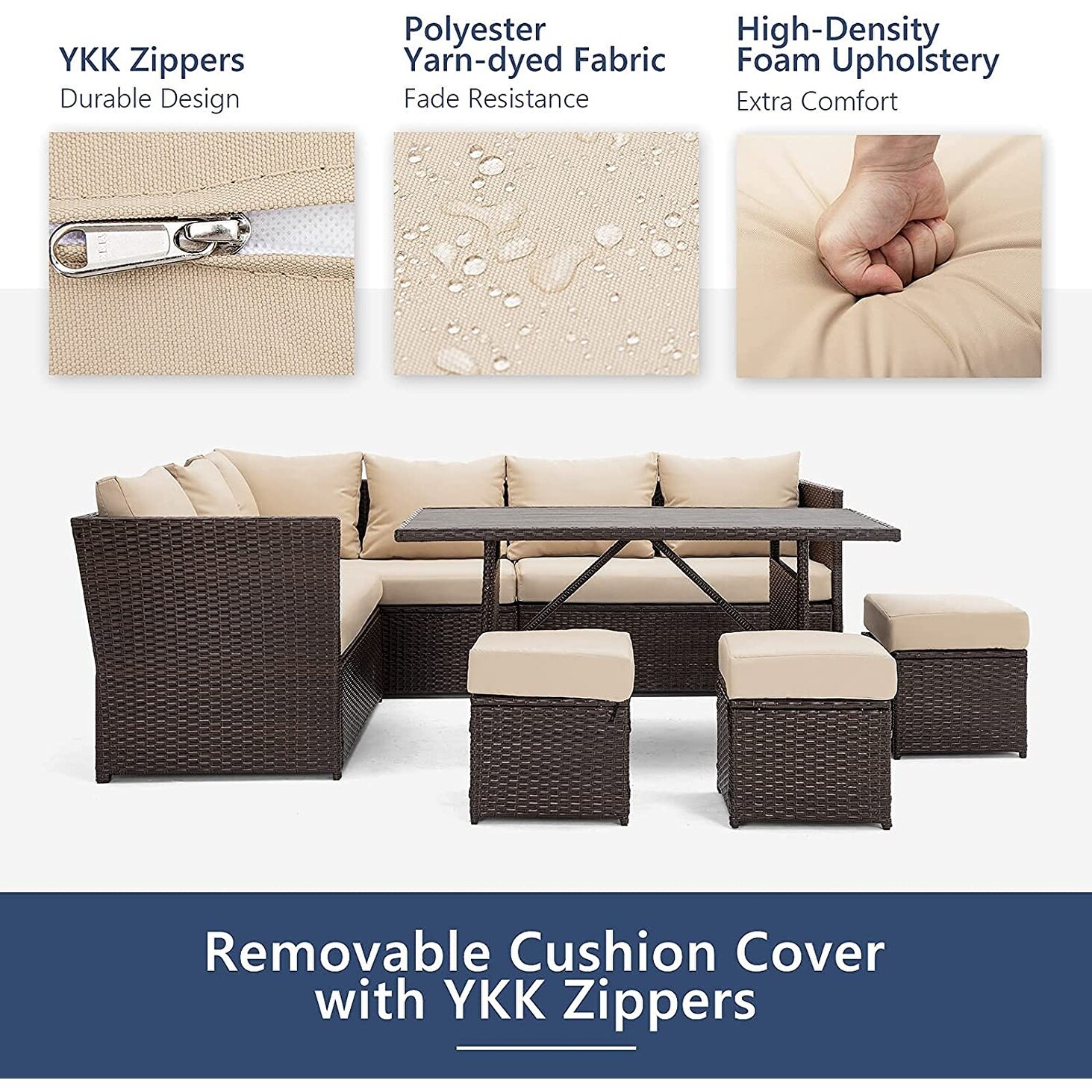 Bridget Outdoor 6 Seater Aluminum Sofa and Ottoman Set with Side Tables, Silver and Khaki