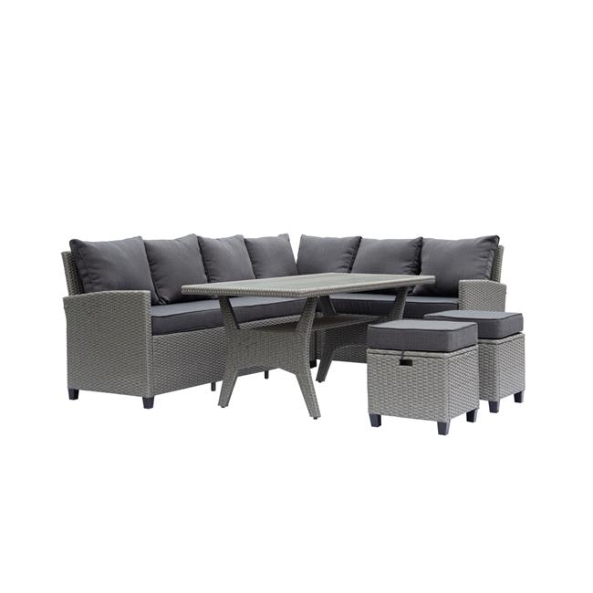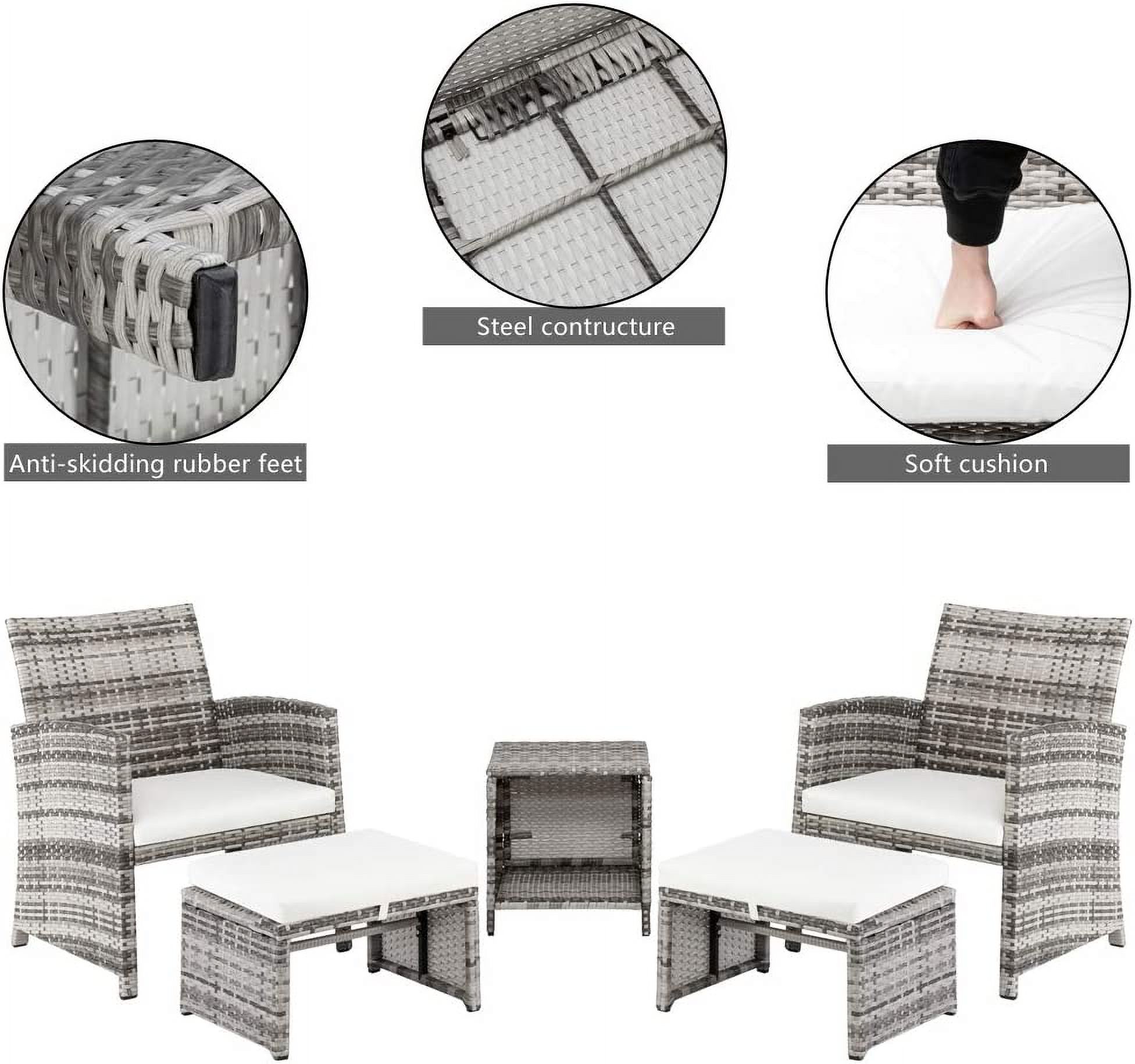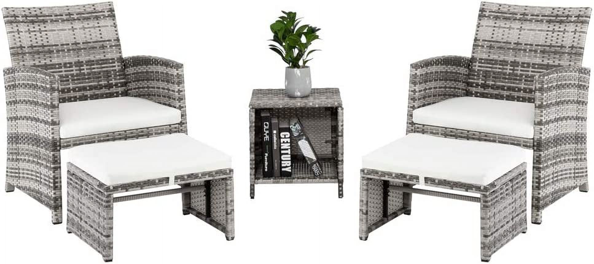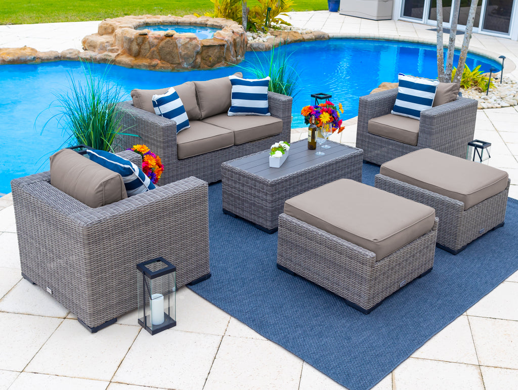 Deko Living Outdoor Wicker Patio Sectional Sofa & Ottoman Set with Table