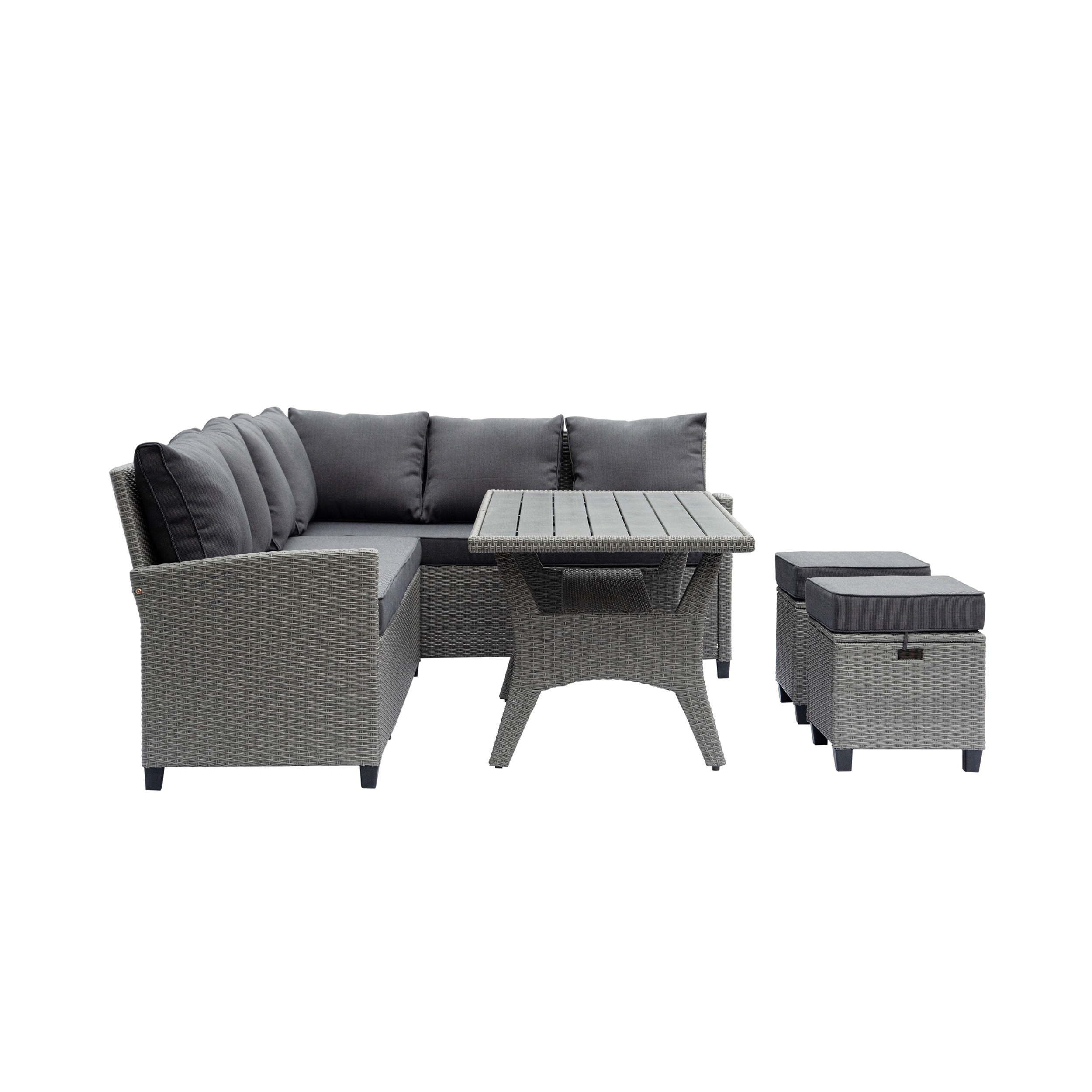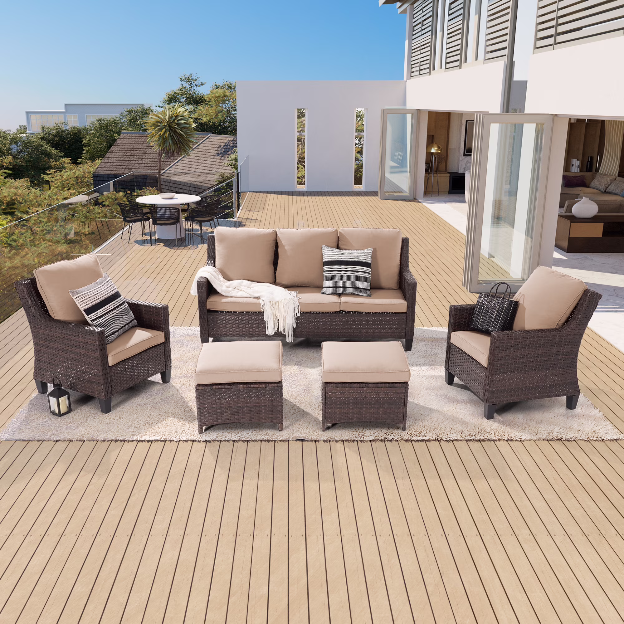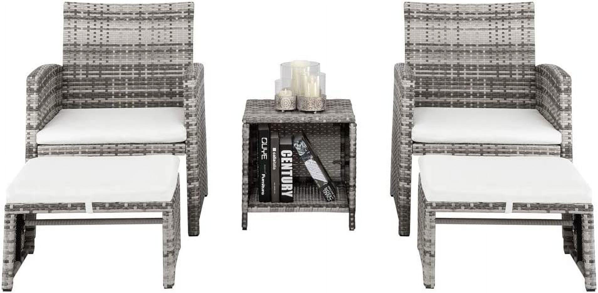 Deko Living Outdoor Wicker Patio Sectional Sofa & Ottoman Set with Table