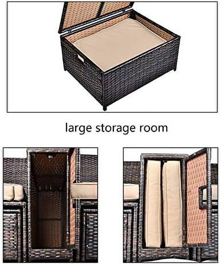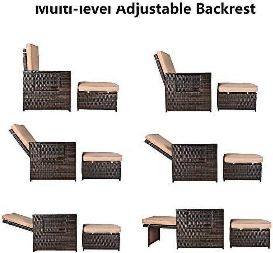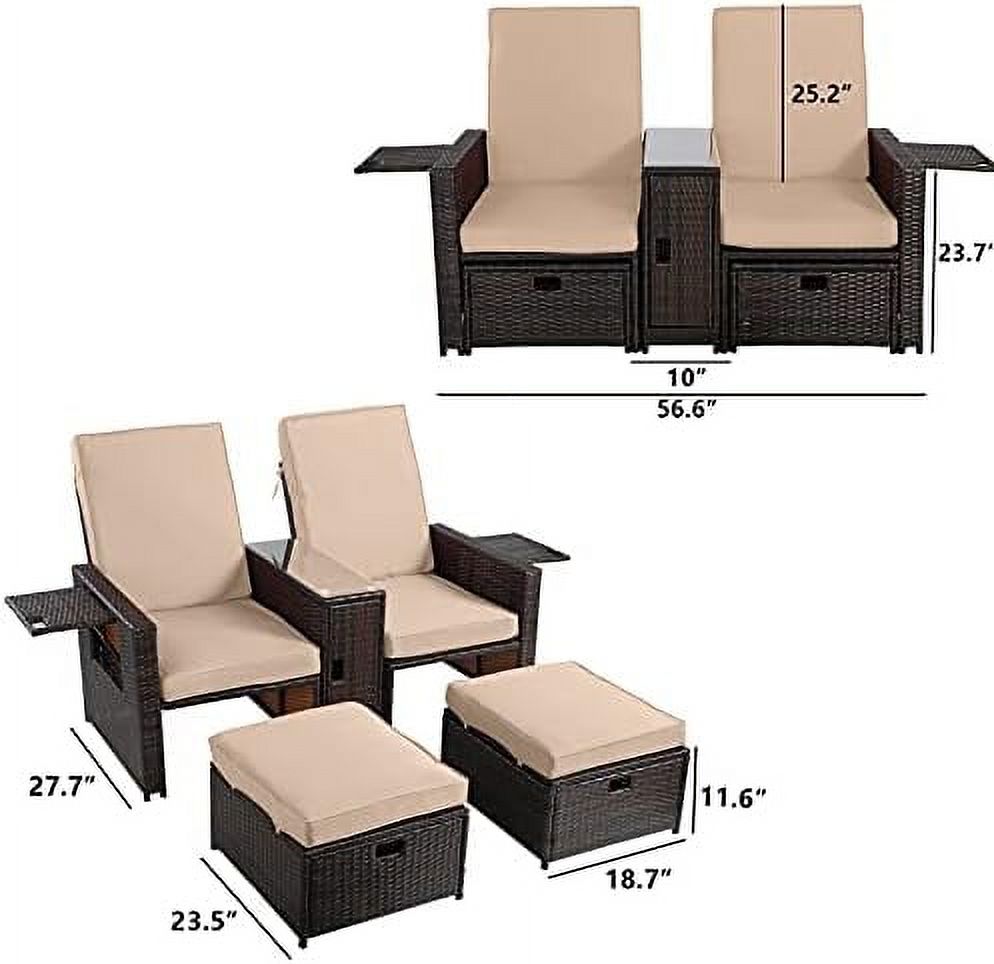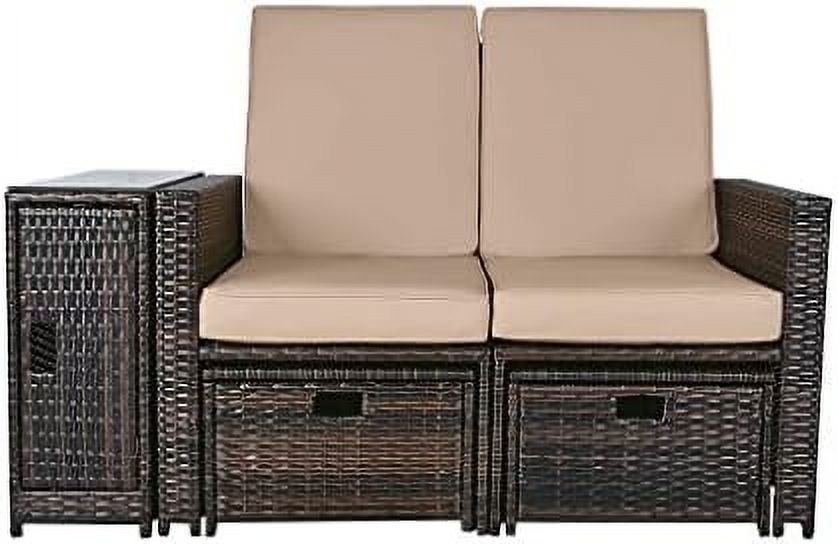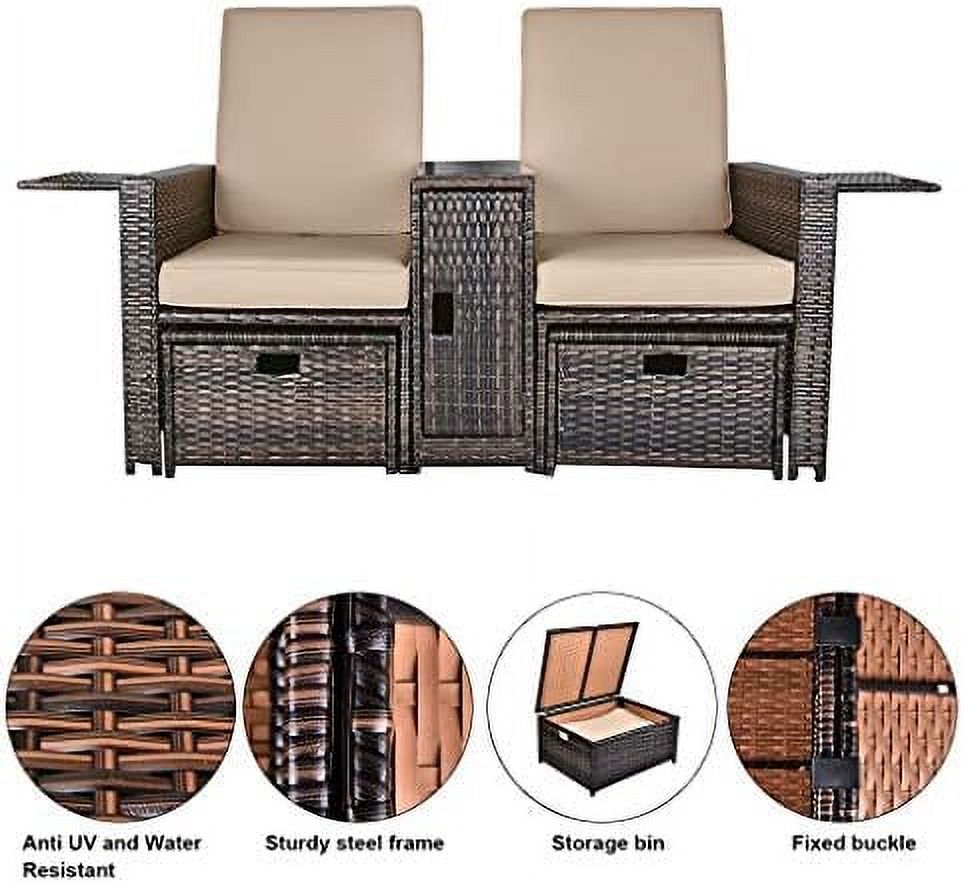 xrboomlife Patio Wicker Loveseat - Outdoor Rattan Sofa Set with Cushion - Adjustable Lounge Chair with Ottoman Footrest Wicker for Garden Patio Balcony Beach Coffee Deck