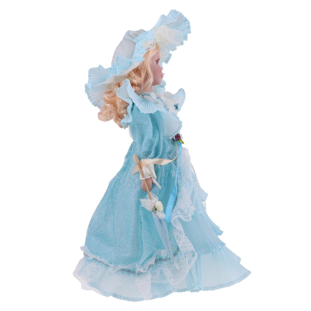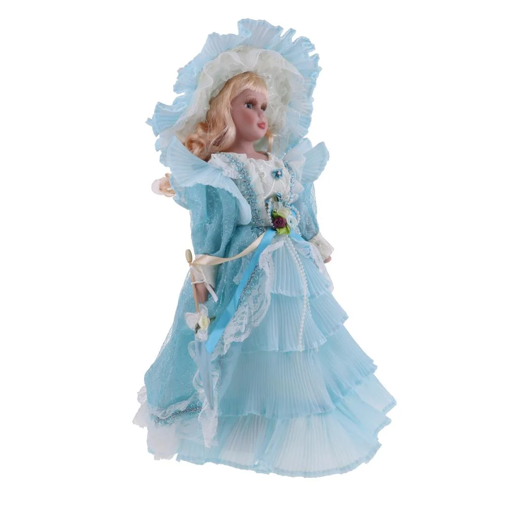 16inch Elegant Porcelain Doll with Stand, Lady Figures with Dress Hat , Dollhouse Accessories, Kids Gift Adult Collections