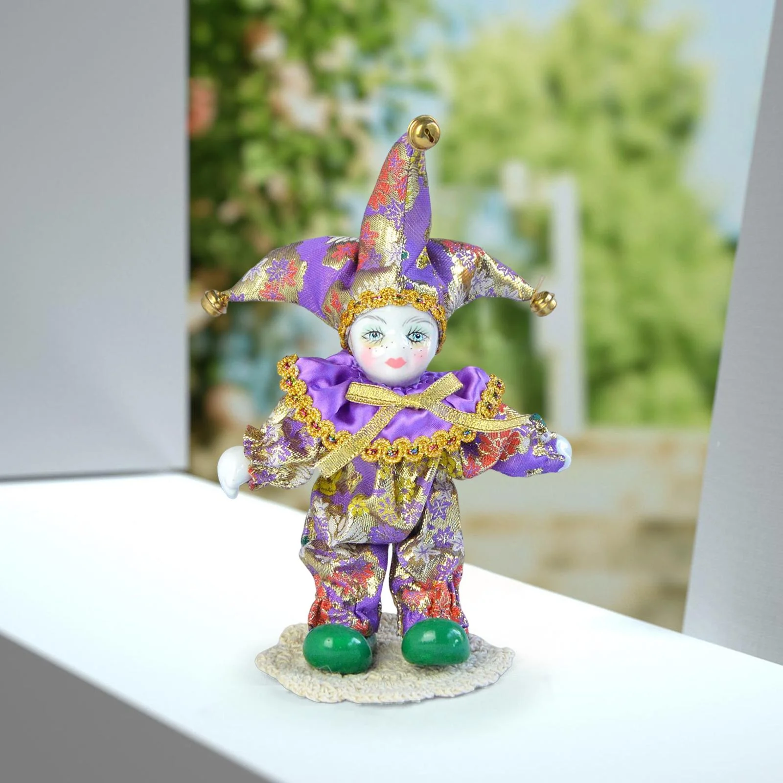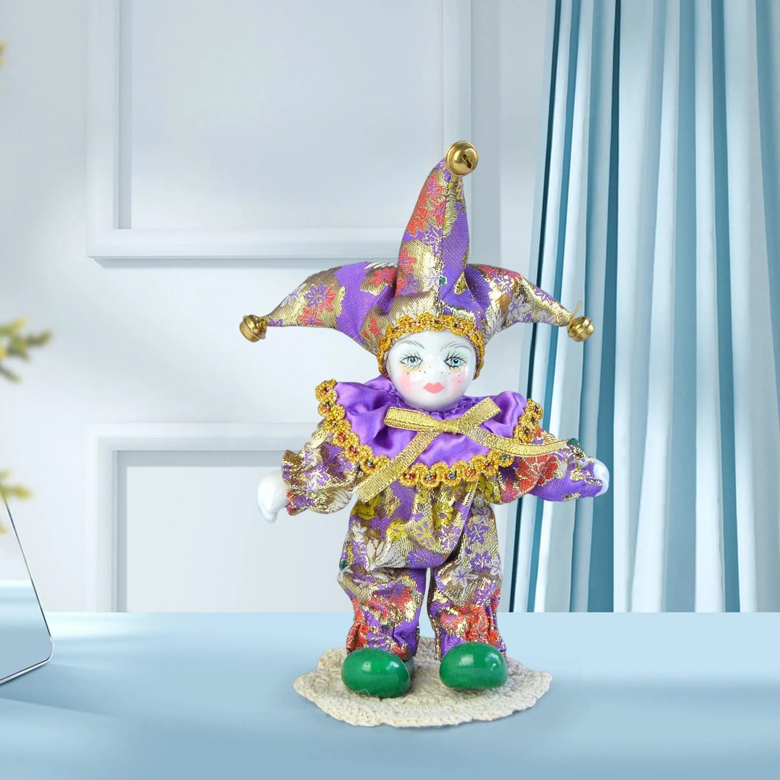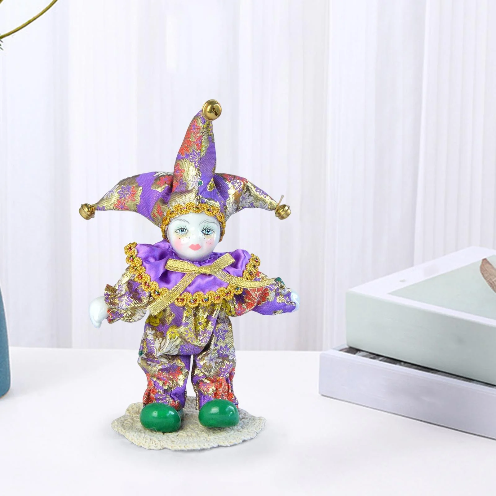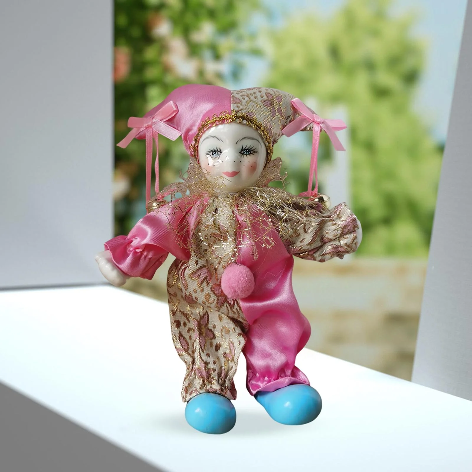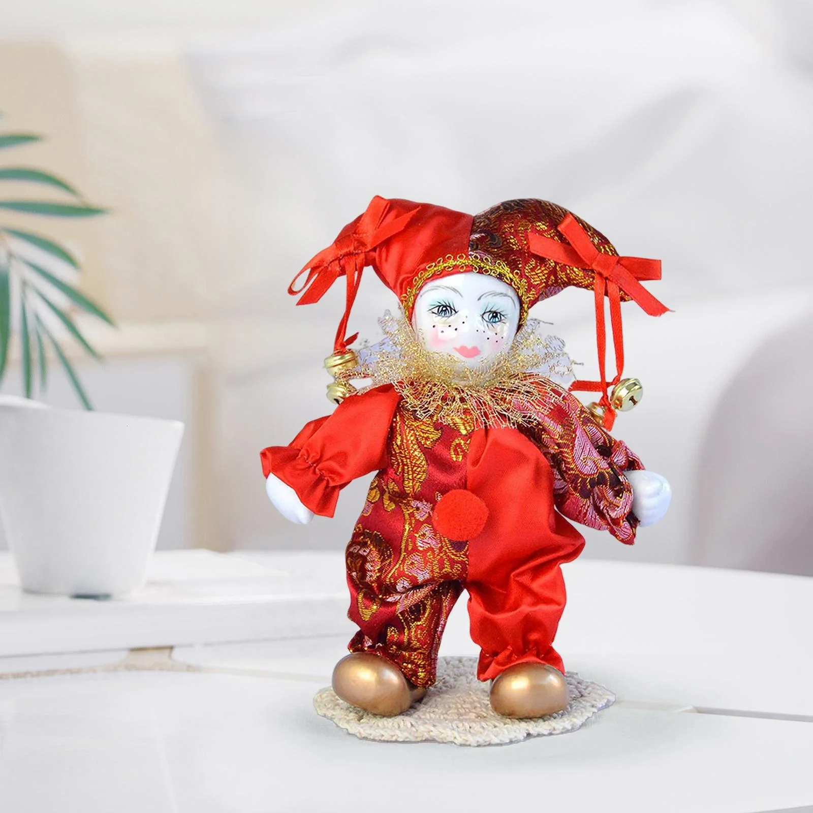 6'' Clown Doll Dressed in Gorgeous Outfits Porcelain Doll Figurine Crafts Arts Small Clown Doll for Valentin Gift Kids Toy Game