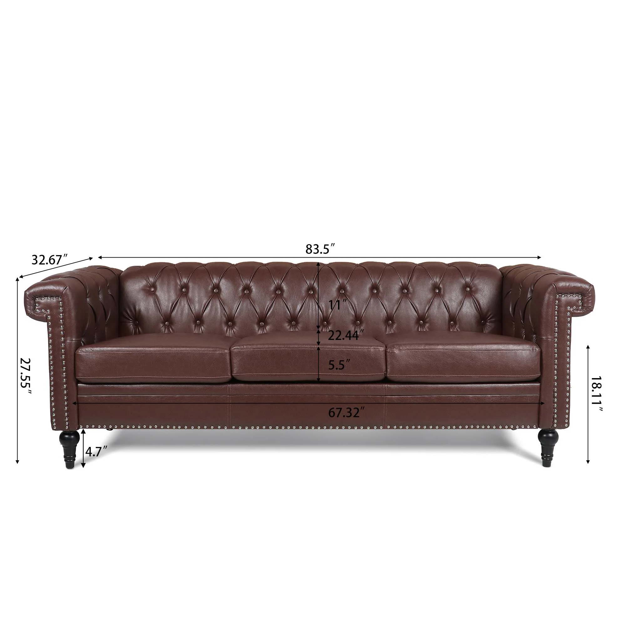 CoSoTower 82.5 Inch Width Traditional Square Arm Removable Cushion 3 Seater Sofa