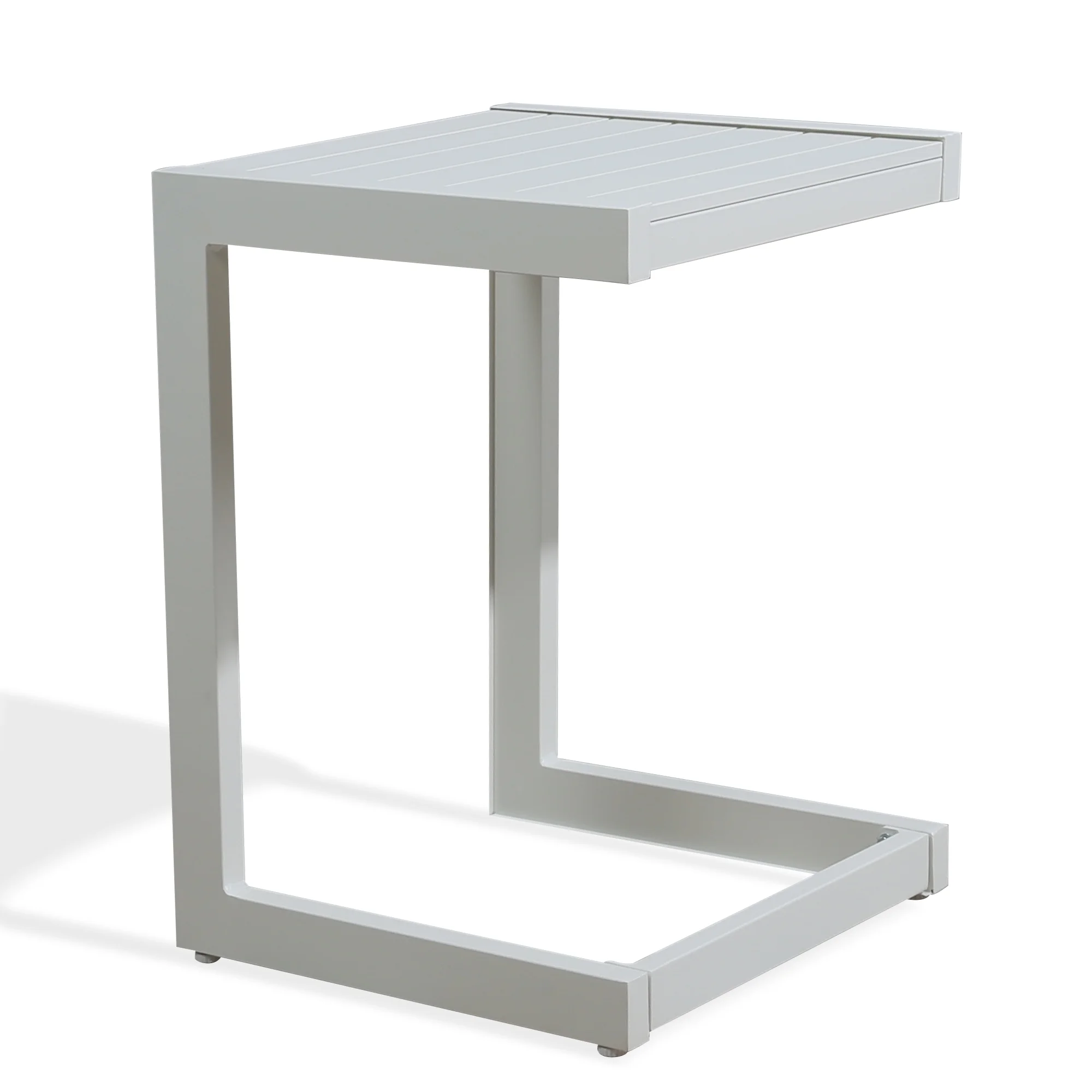 Ulax Furniture Patio Outdoor Aluminum Side Table Indoor C Shaped End Table, White