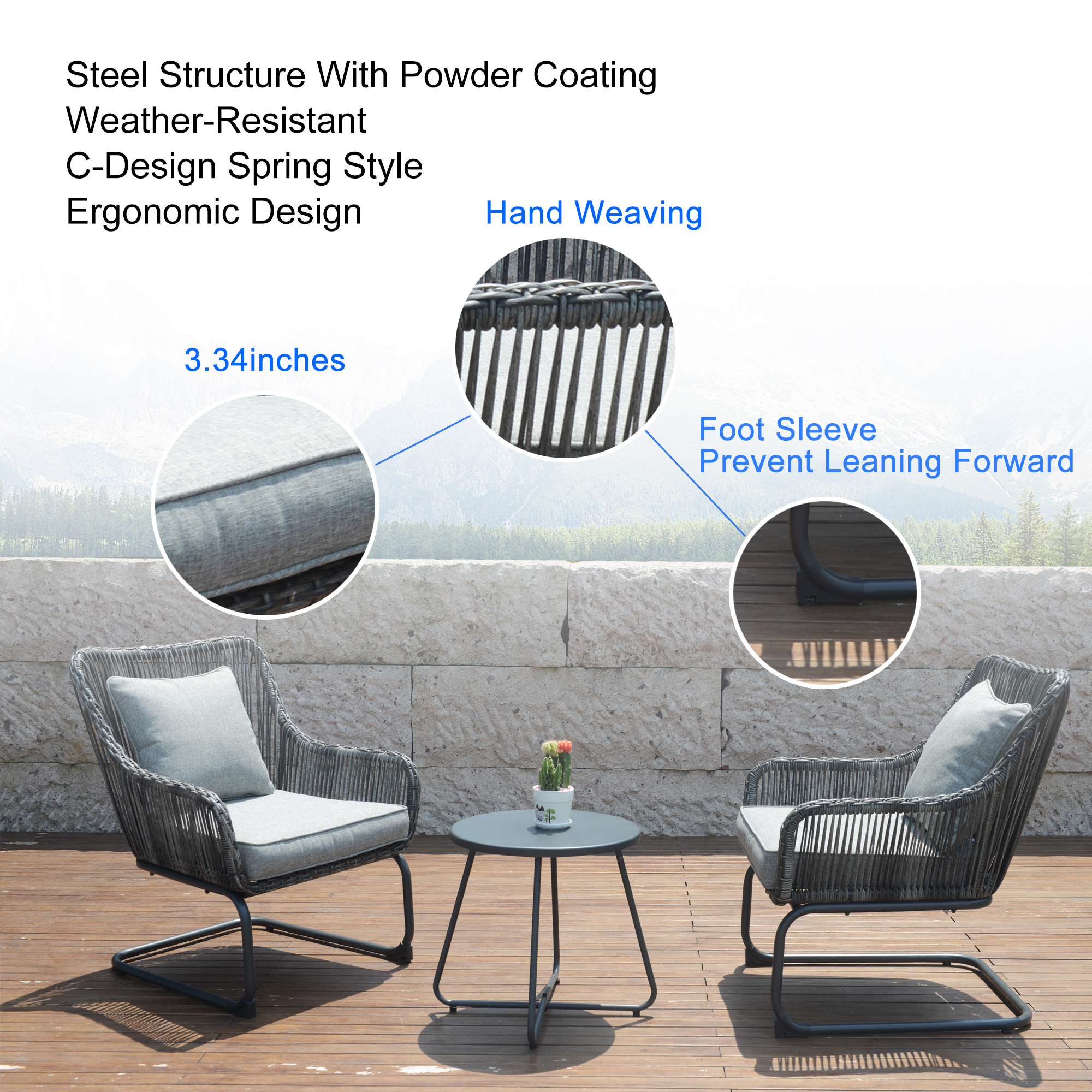Oasis Casual Nadir 3 Pcs Outdoor 100% Hand-Woven Wicker KD Spring Sofa Chair Patio Conversation Set