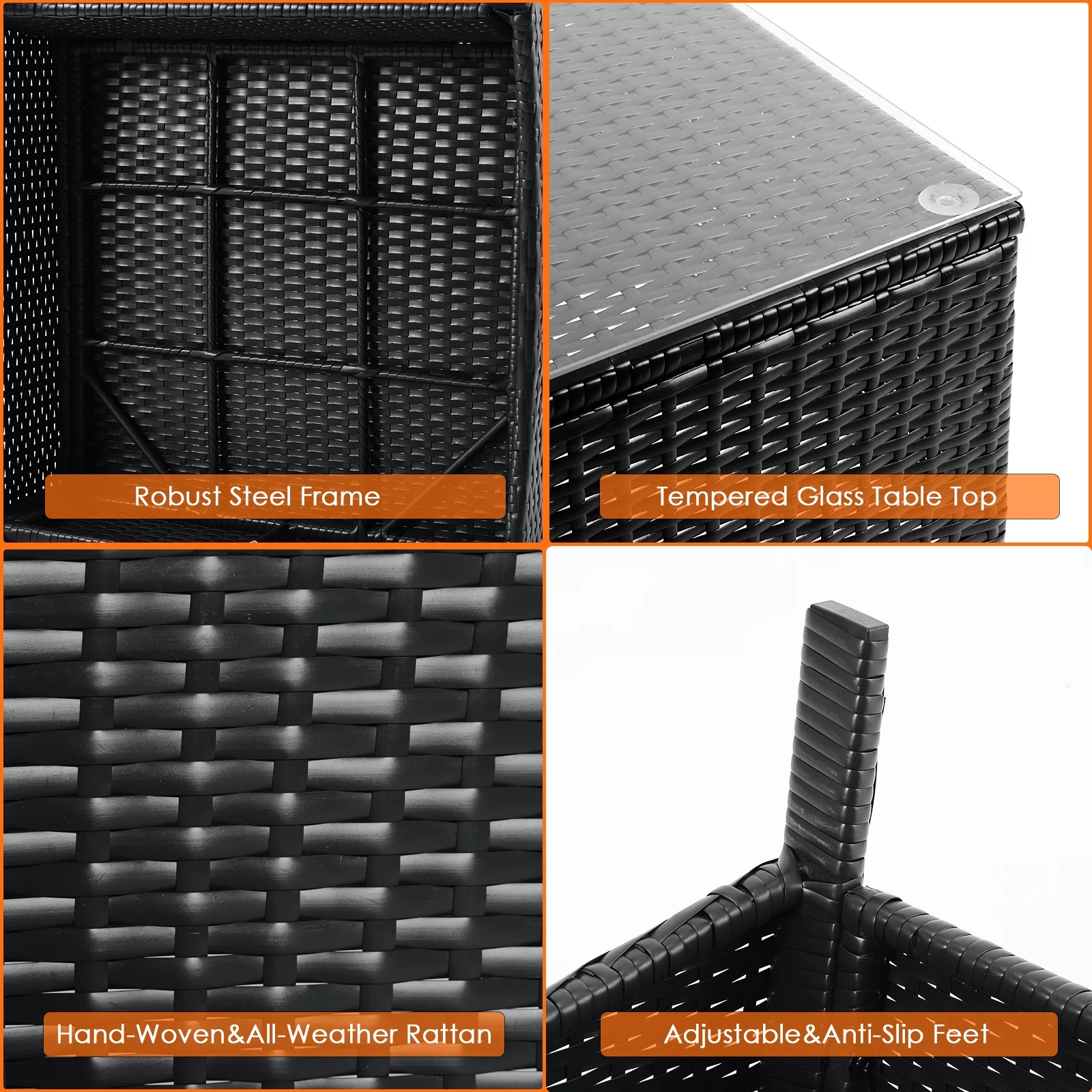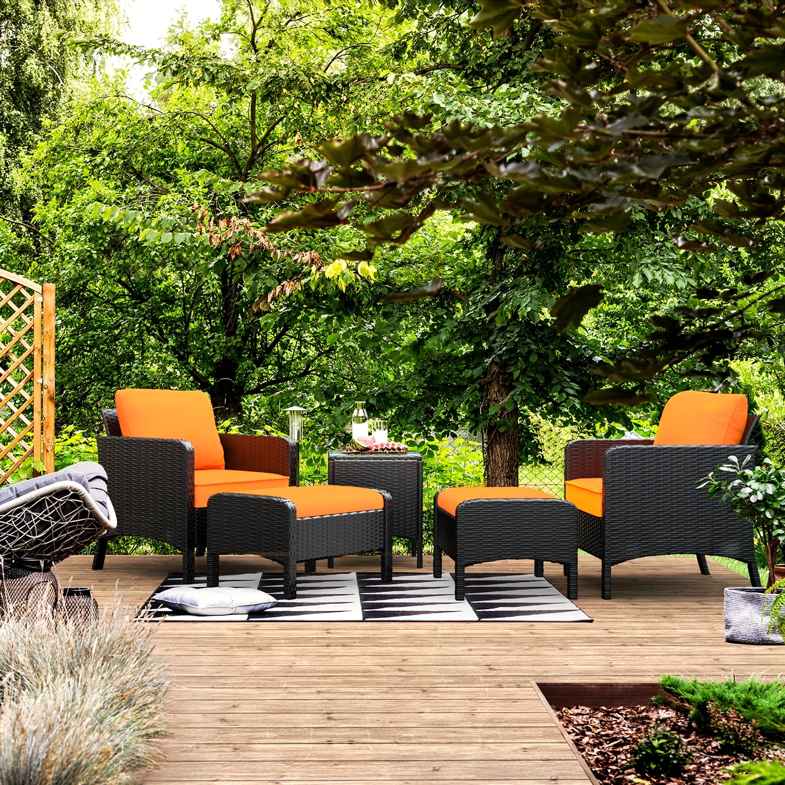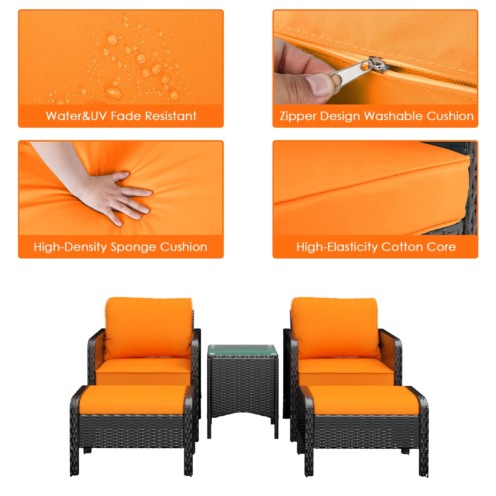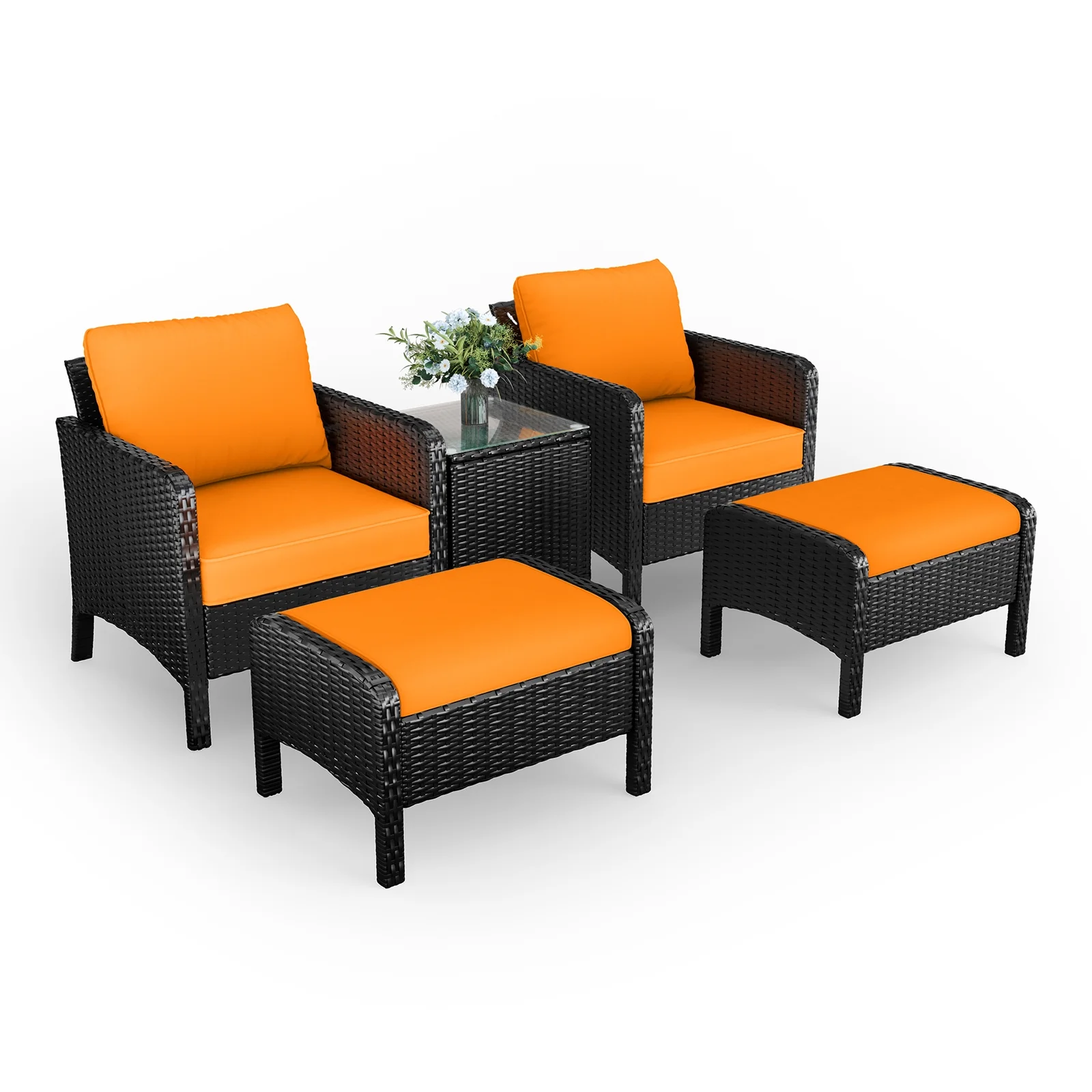 Pirecart 5 Piece Outdoor Rattan Wicker Patio Furniture Set W/ Ottoman and Coffee Table