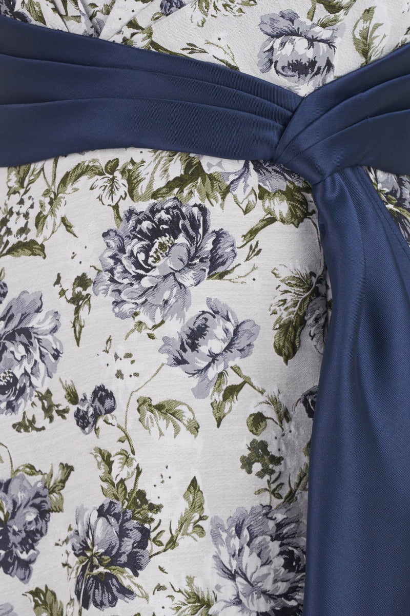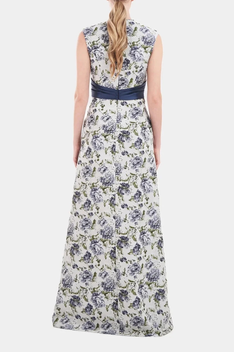 Kay Unger V-Neck Cap Sleeve Wrap Bodice with Pleats Waist Band Fit & Flare Jacquard Dress-MIDNIGHT GREEN / 2