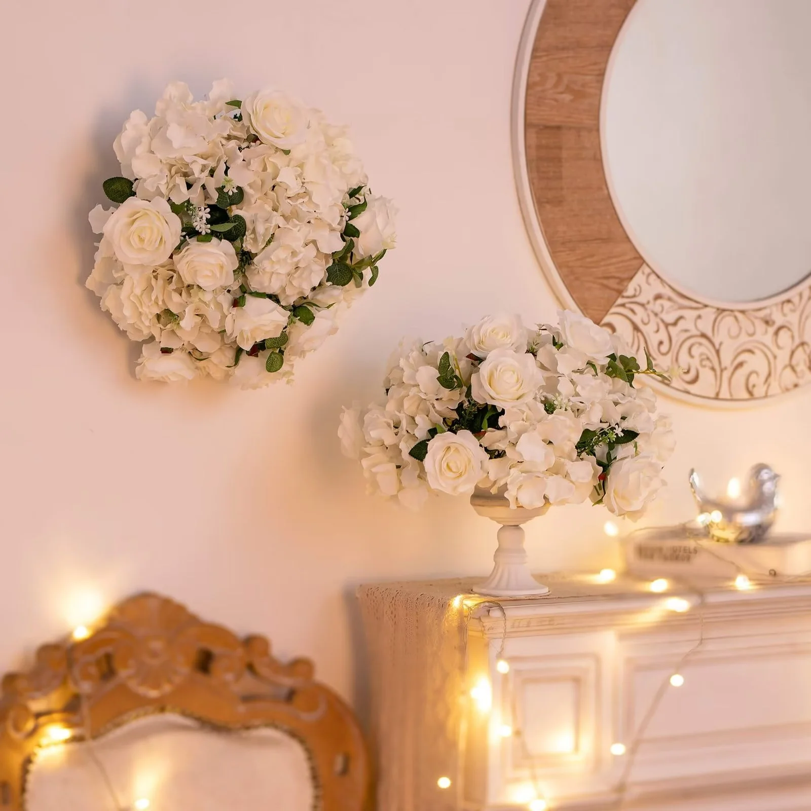 Pemberly Row Transitional 2-Piece Fabric Sectional with Accent Pillows in Cream