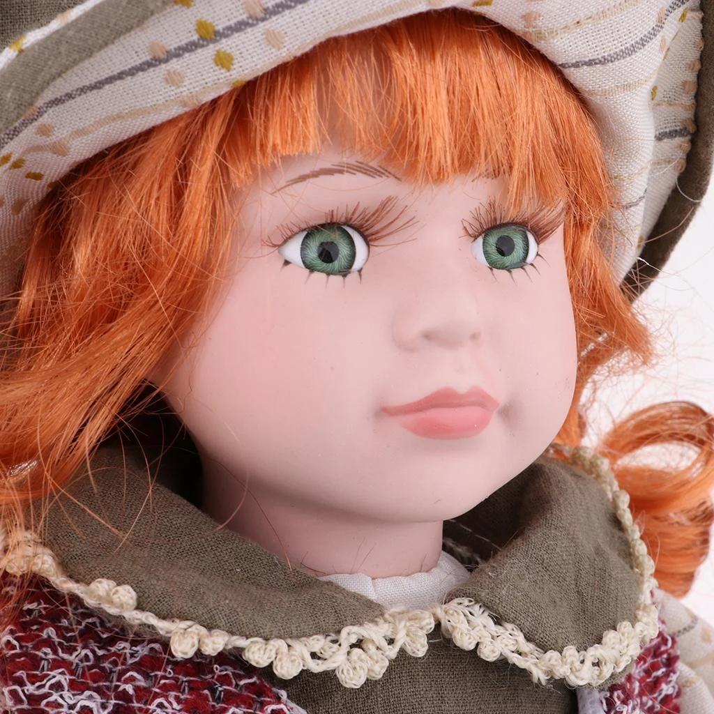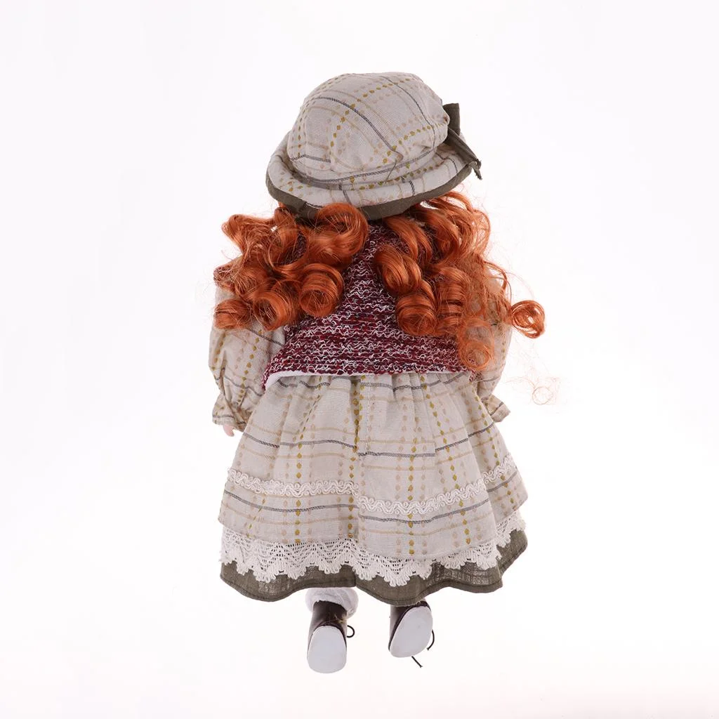 Elegant 16inch Porcelain Doll, Sitting People Figures in Clothes Hat, Children Gift, Desktop Shelf Ornaments