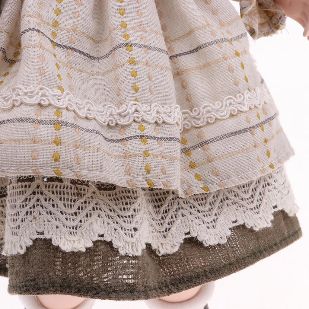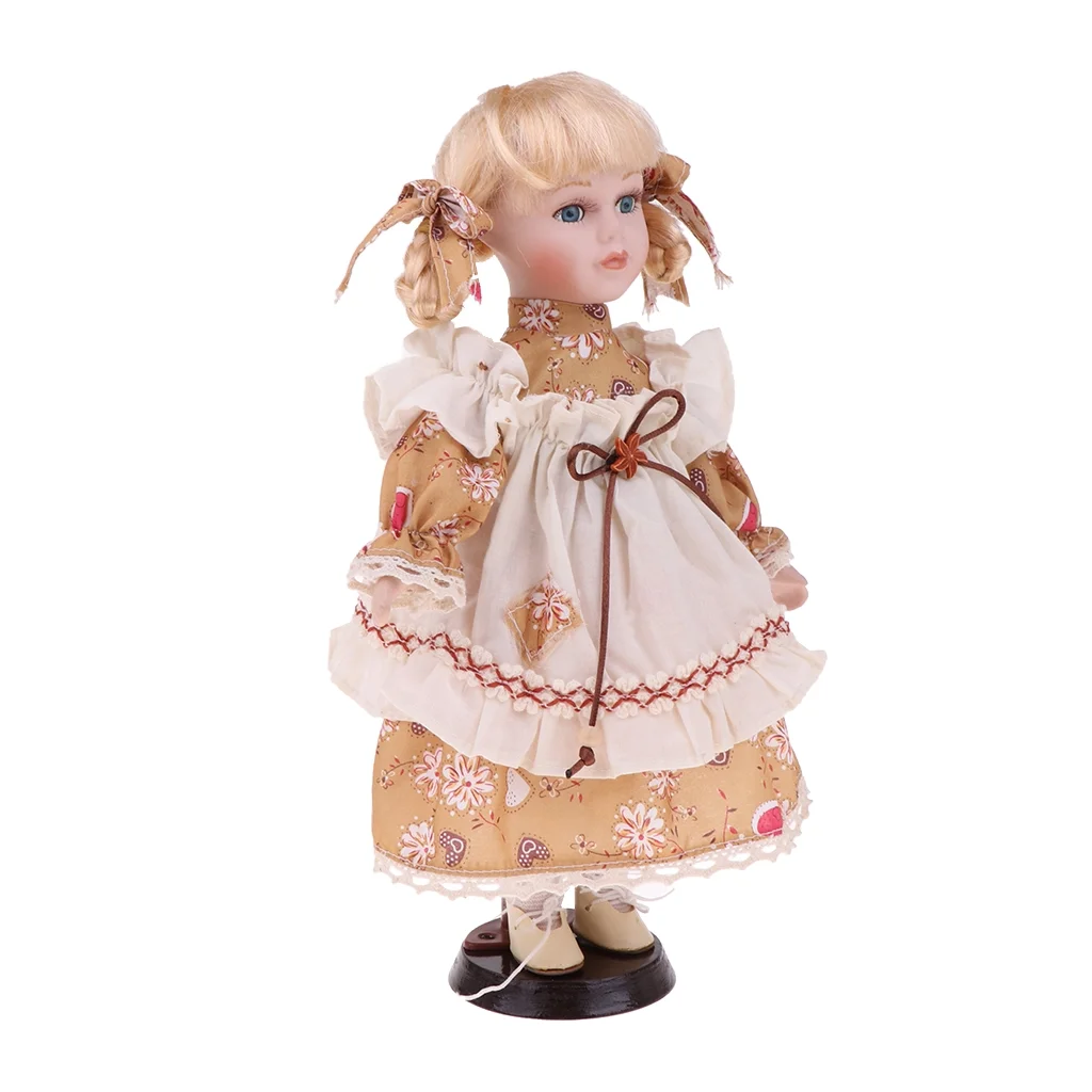 30cm Lovely Porcelain Girl Doll with Clothes Yellow & Display Decor Gift