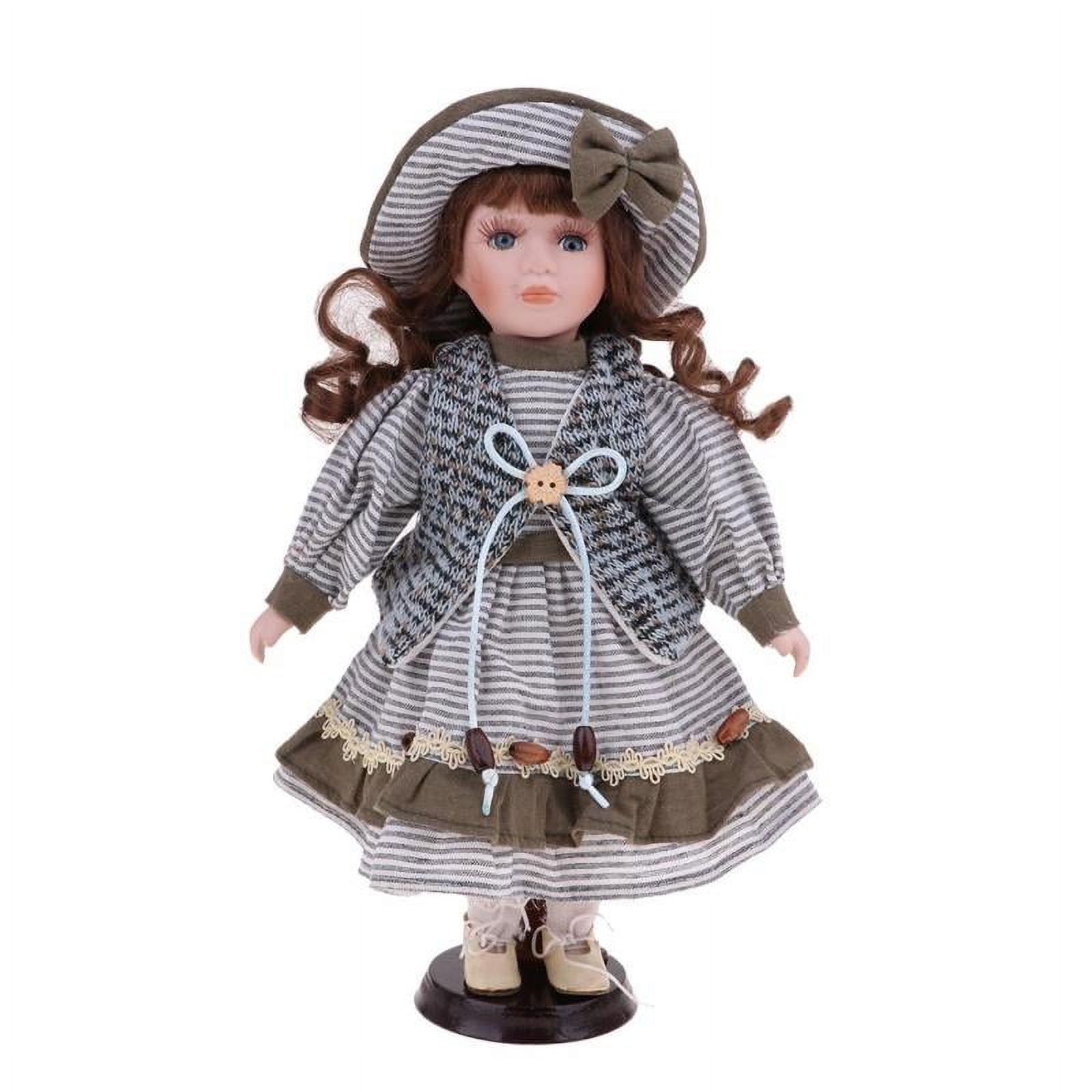 30cm Porcelain Doll Girl Figure with Wood Stand Adult Collections