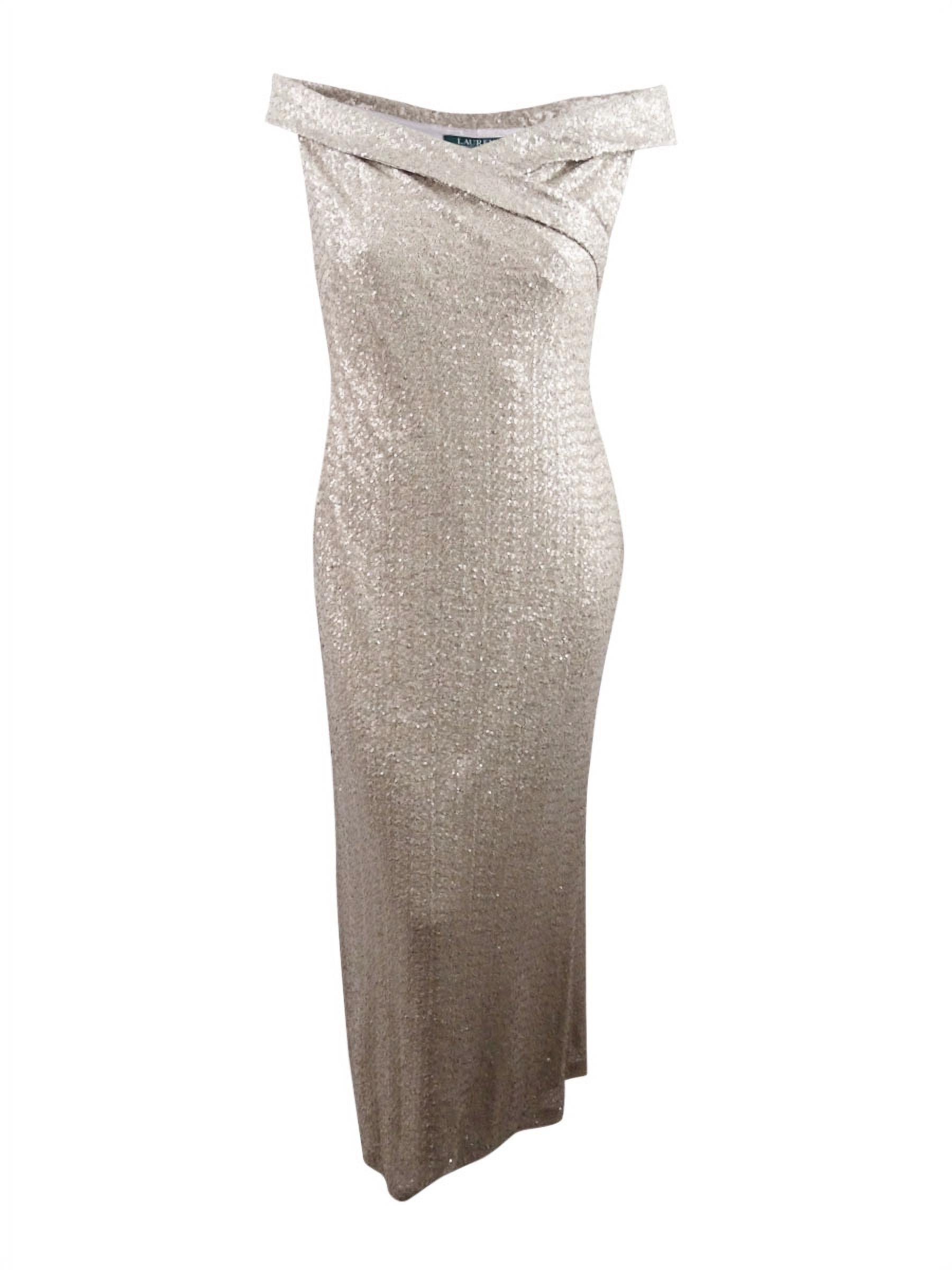 Lauren by Ralph Lauren Women's Off-The-Shoulder Sequin Gown (12, Natural)