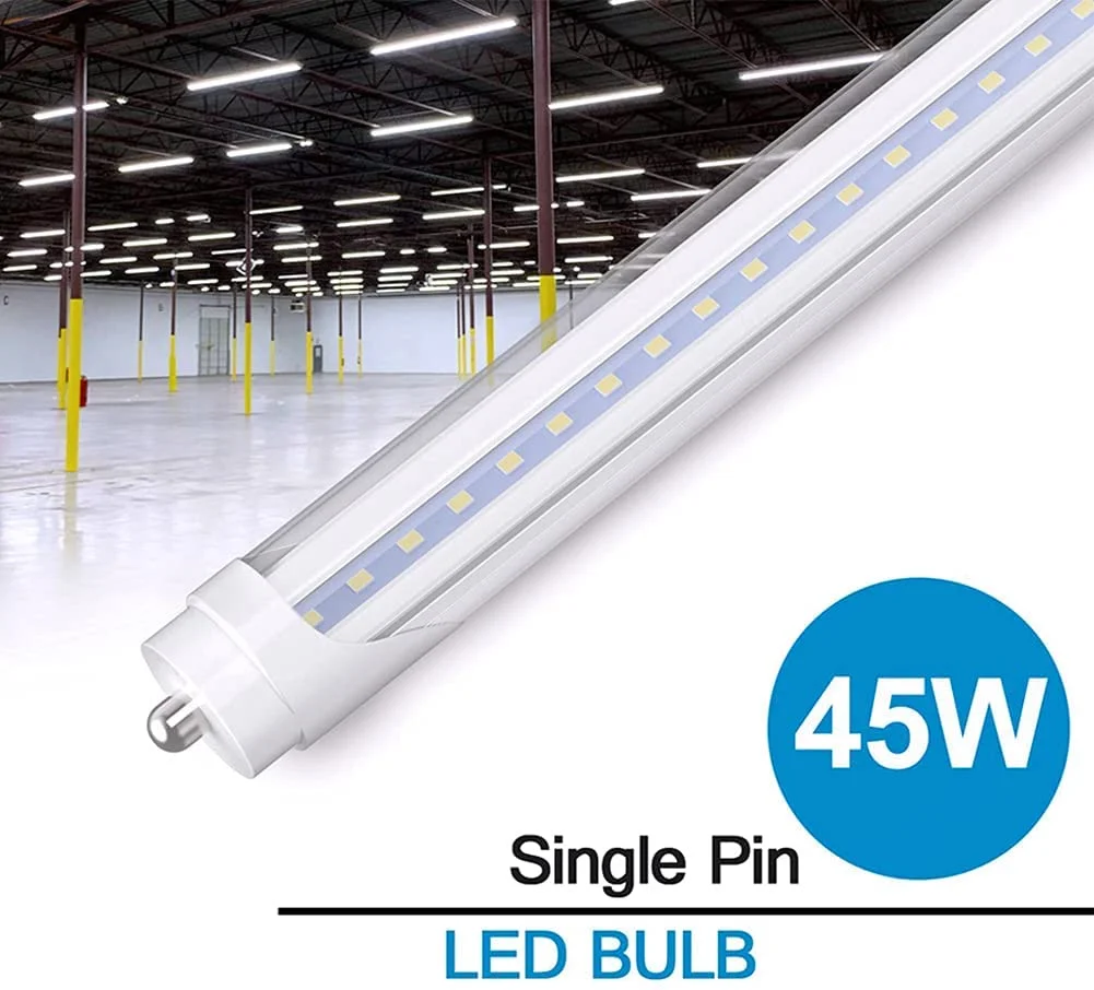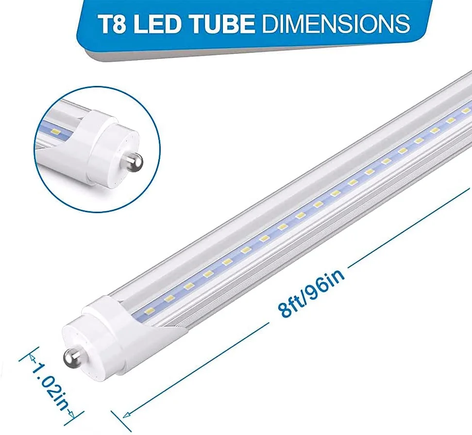 Single Pin T8 LED Tube Light 8ft Fa8 LED Bulbs, 45W 5000K Daylight, 8-Pack