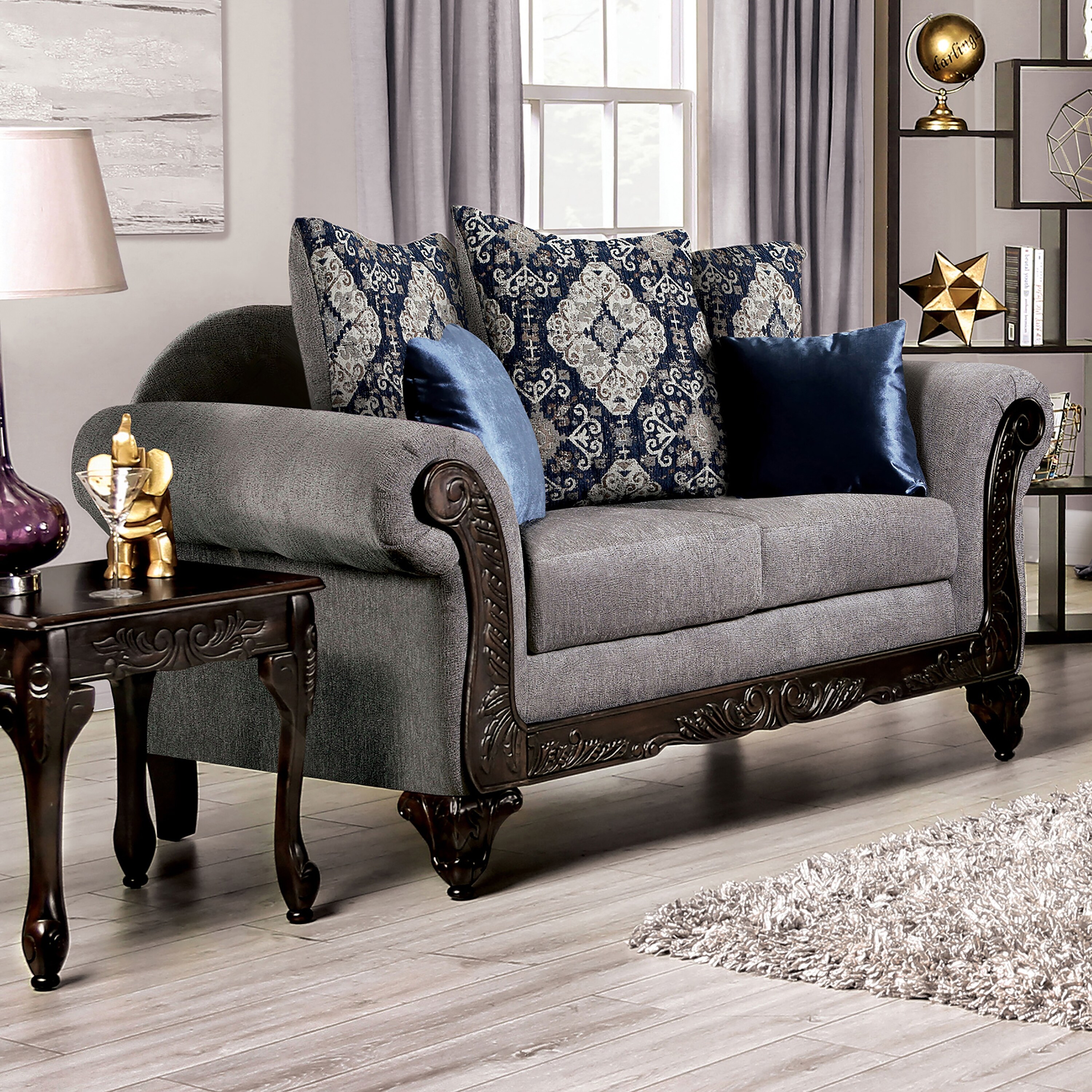 Furniture of America Hensly Traditional Grey Chenille Rolled Arms Loveseat by