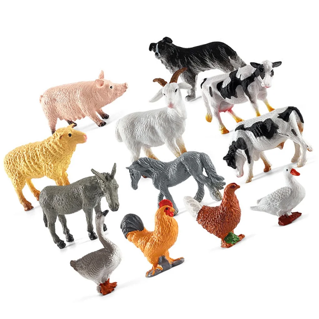 Tssuoun 12Pcs Animals Playset Mini Simulation Farm Realistic Figurines Simulated Poultry Party Cake Decoration Girls Boys Gifts