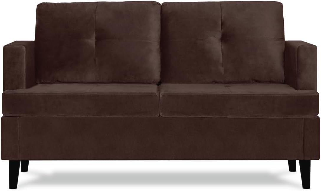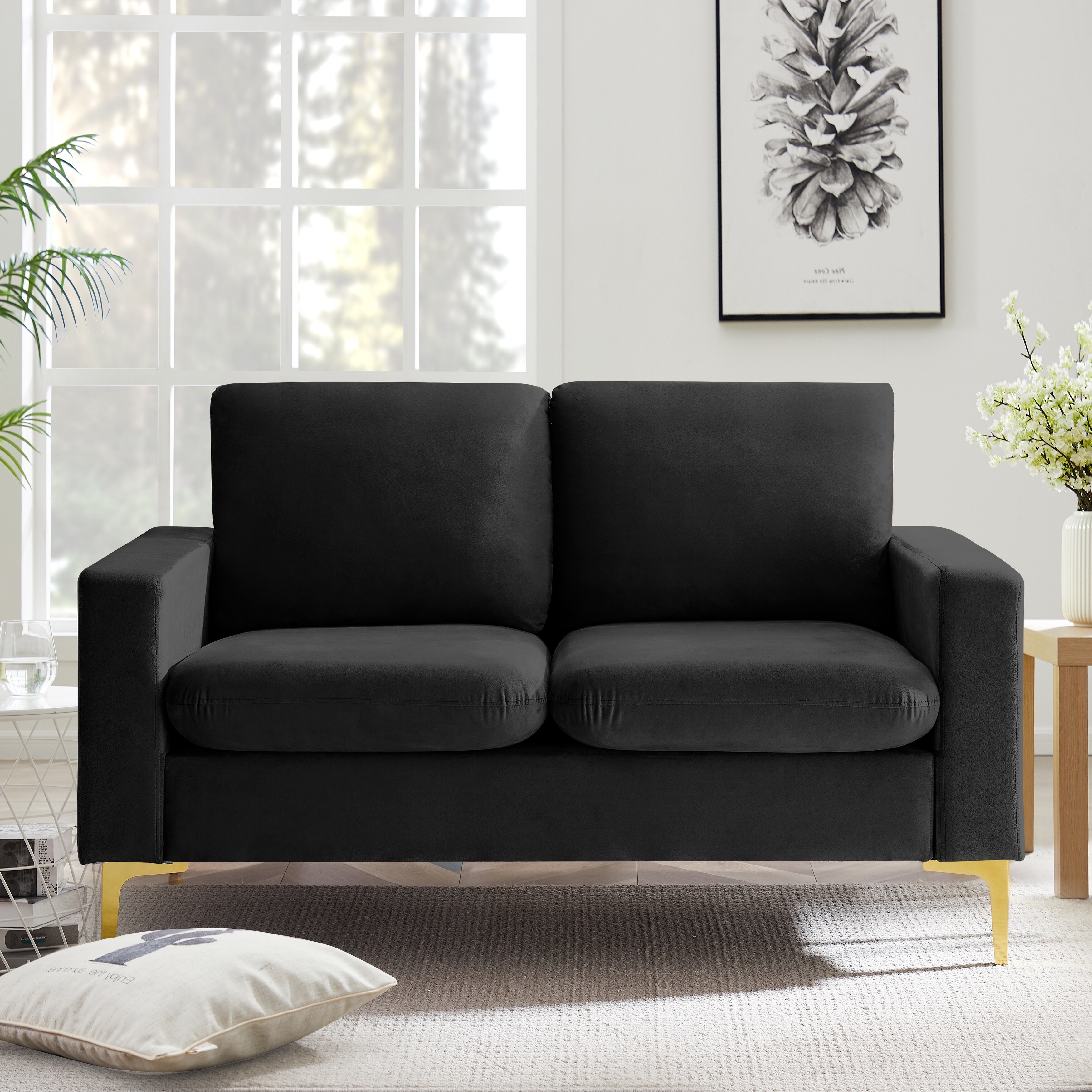 8005-Orange Velvet Loveseat With Gold Metal Legs Square Armrest Small Sofa Couch For Living Room Black